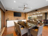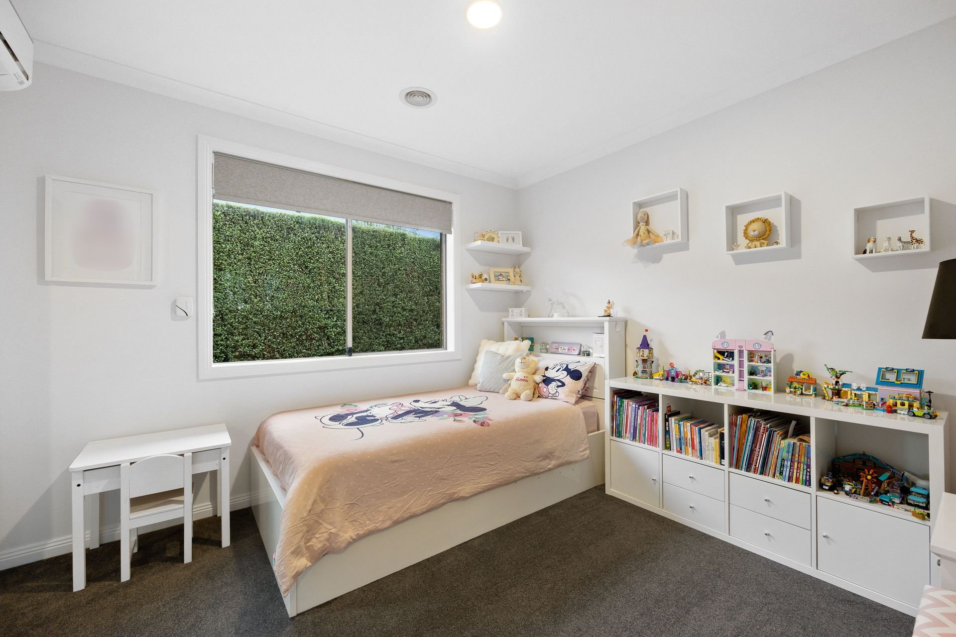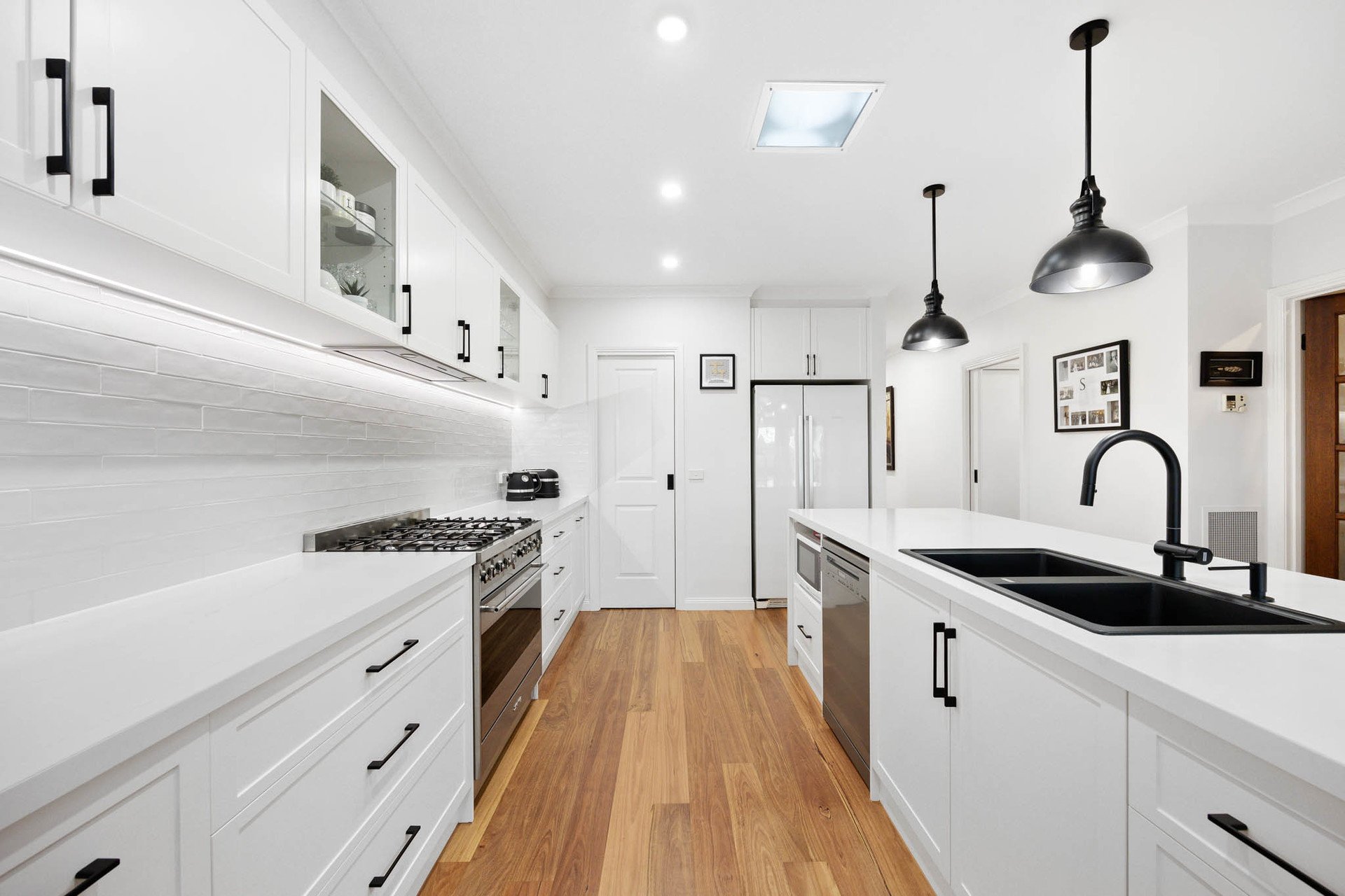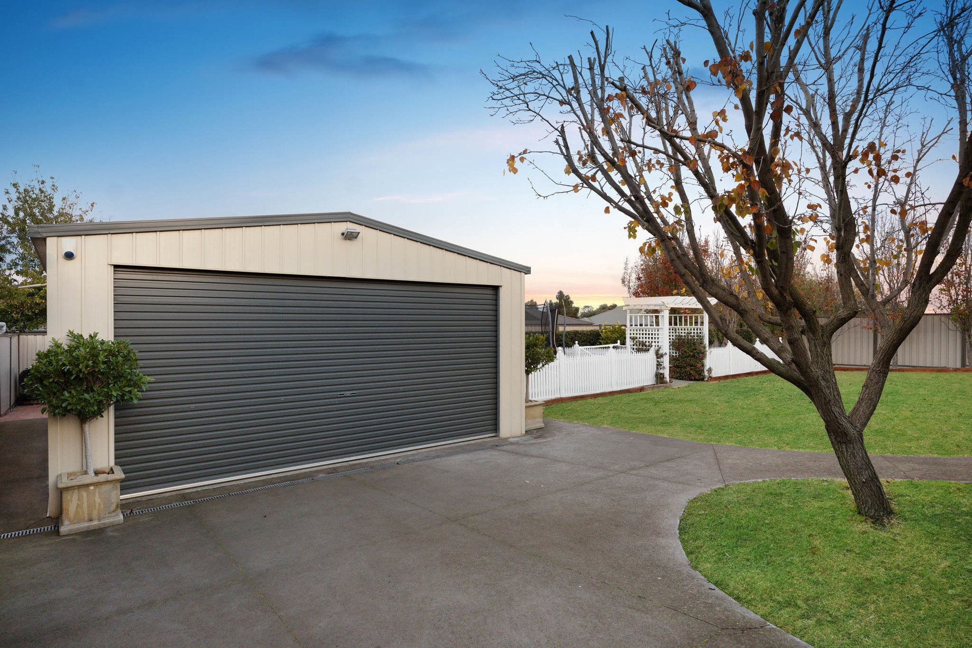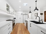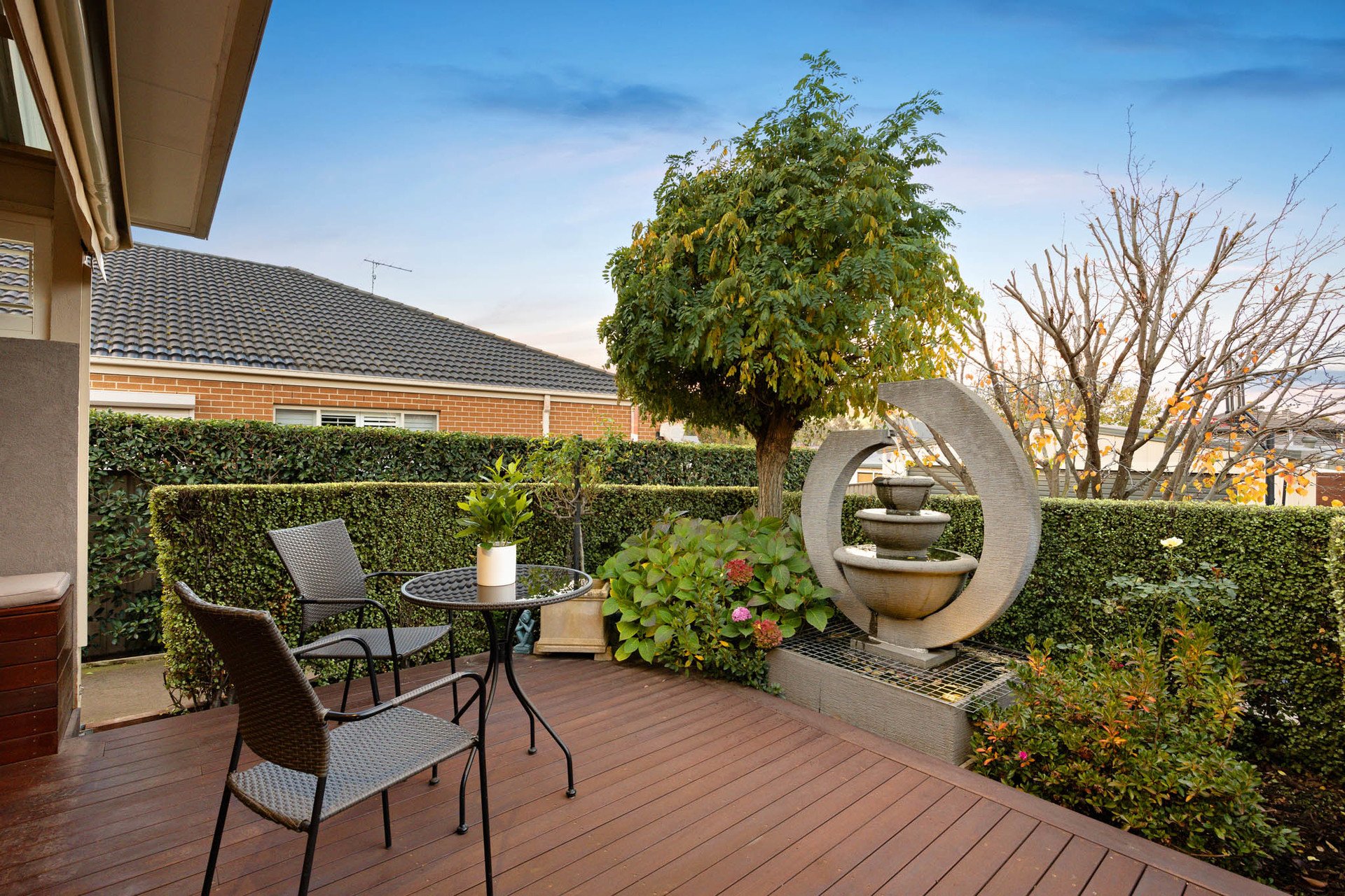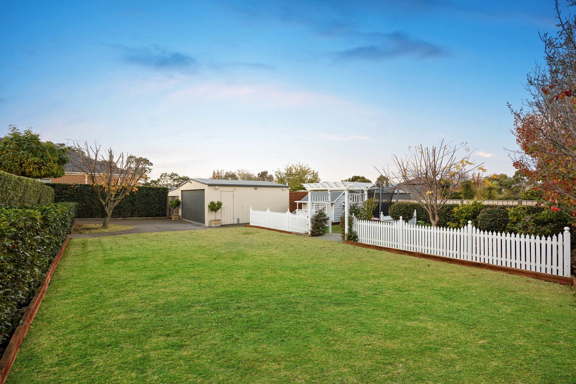 Beyond, a sculptural water feature provides a gorgeous focal point, with the precisely planted garden hosting Buxus, roses, hydrangea beds, and a lawned area, while a white picket-fence and arbour frame a veggie garden with citrus trees and inbuilt seating. The extremely private rear yard also hosts an insulated and powered kids' cubby house.