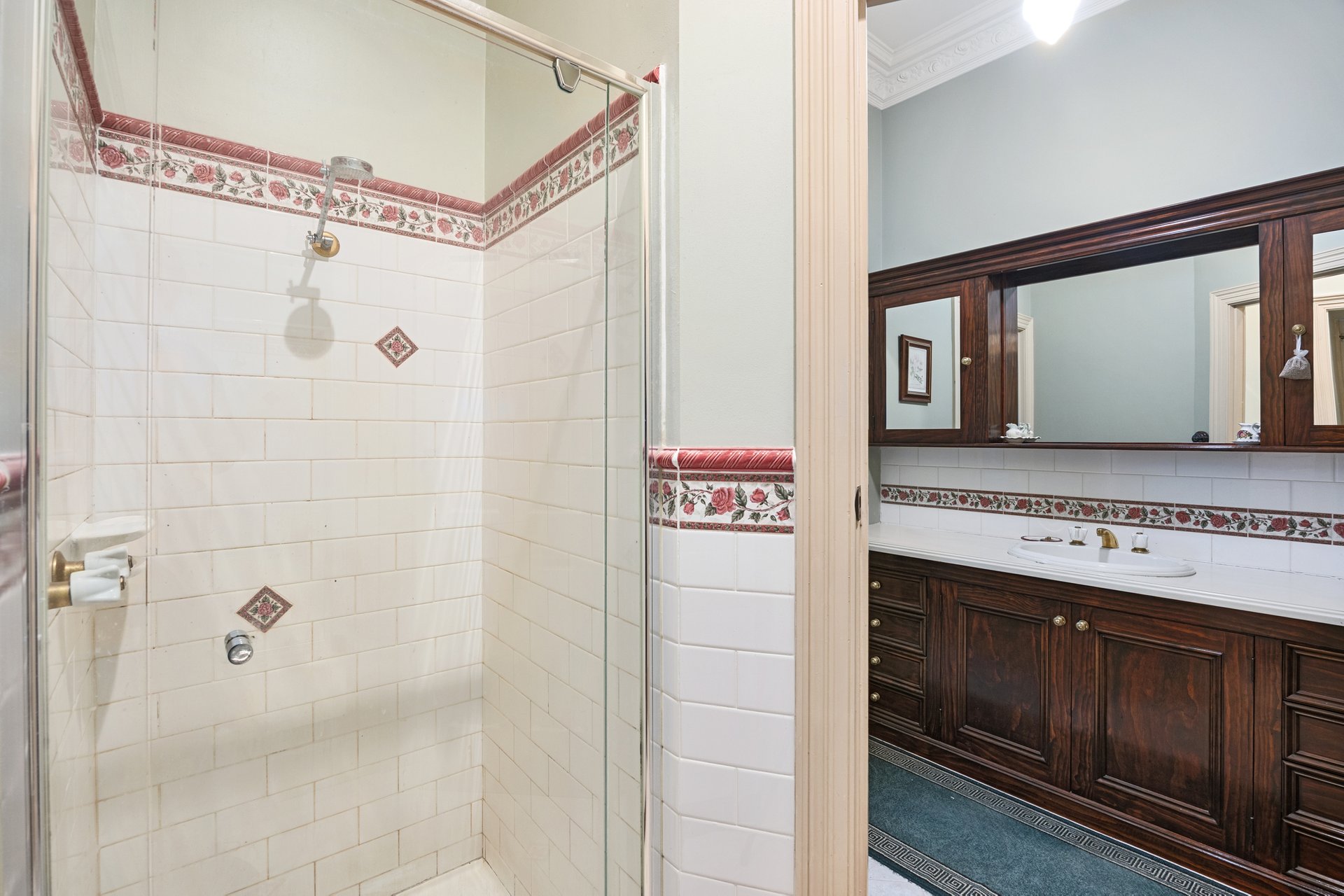 Exuding a graceful ambience, the home opens to reveal a stunning family and meals zone that stretches out before the glowing warmth of a coonara wood heater and harmoniously blends the timeless beauty of traditional character of high ceilings, picture walls, decorative cornice and double hung sash windows alongside the sophistication of chic modern appointments.