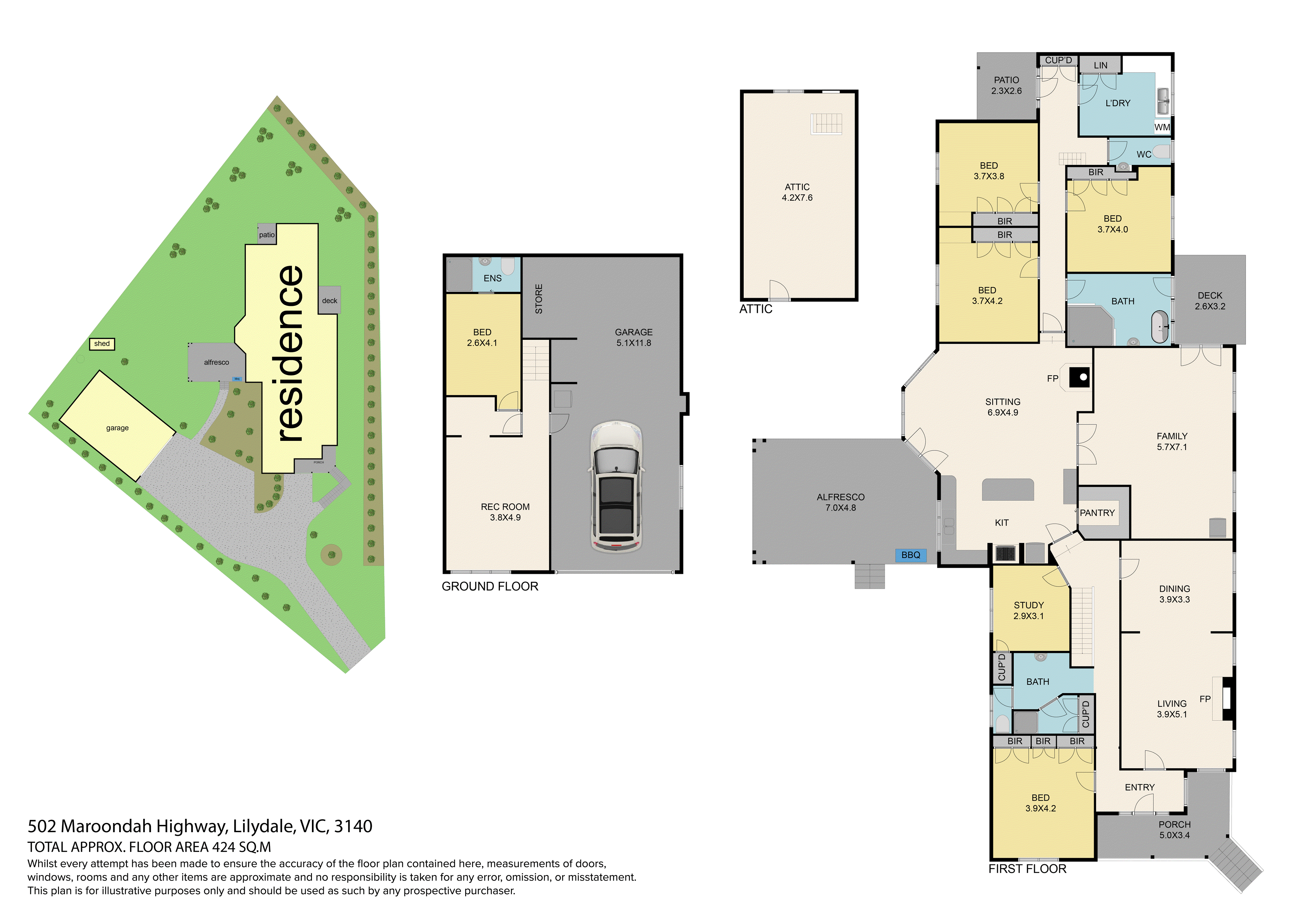 Accommodation needs are taken care of by one of the five bedrooms, the master offering generous proportions, a study as well as three bathrooms and an attic along with a huge rumpus room. Car accommodation is also fully taken care of with secure garaging for 6 vehicles plus extra space for a workshop.