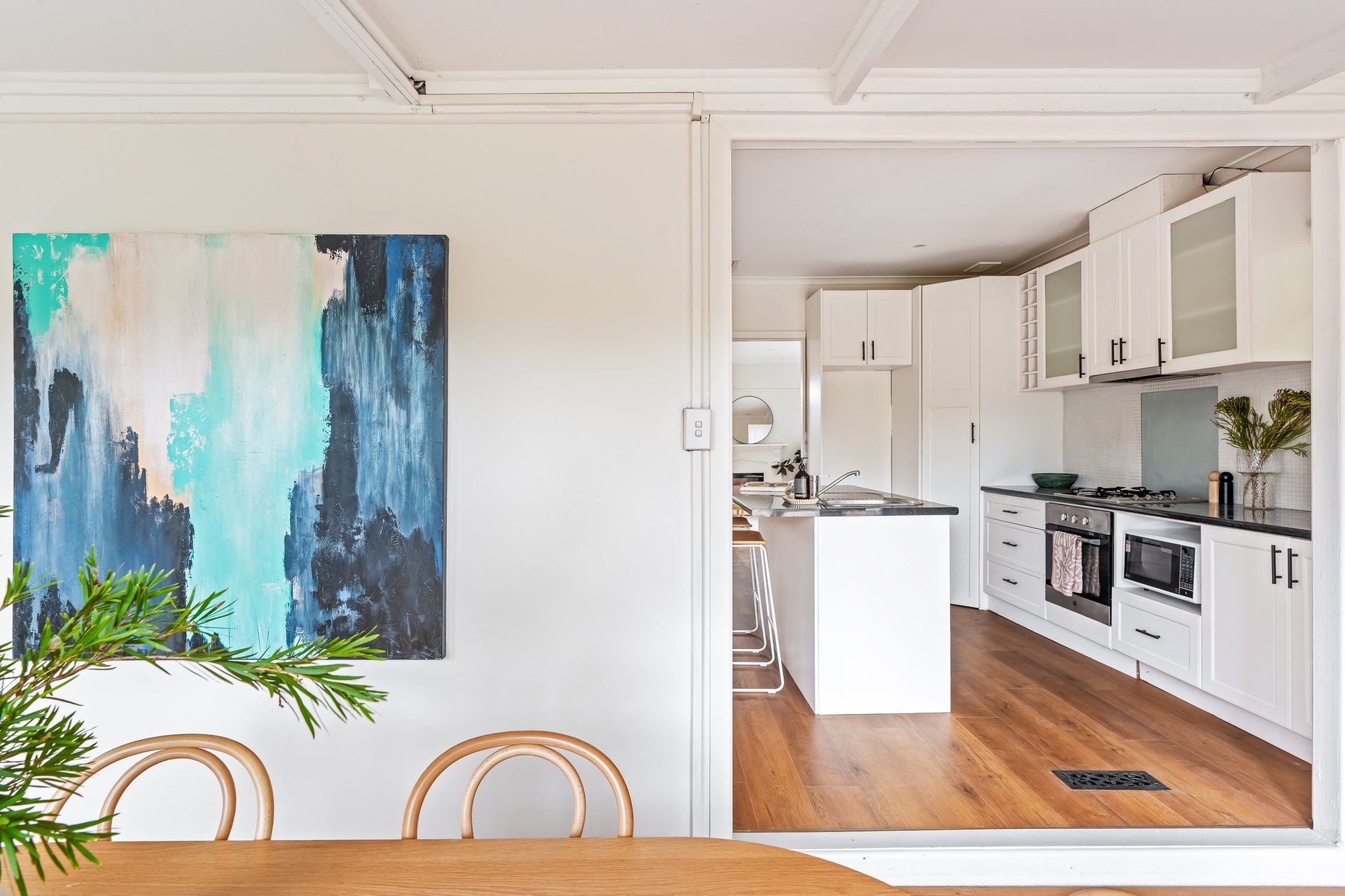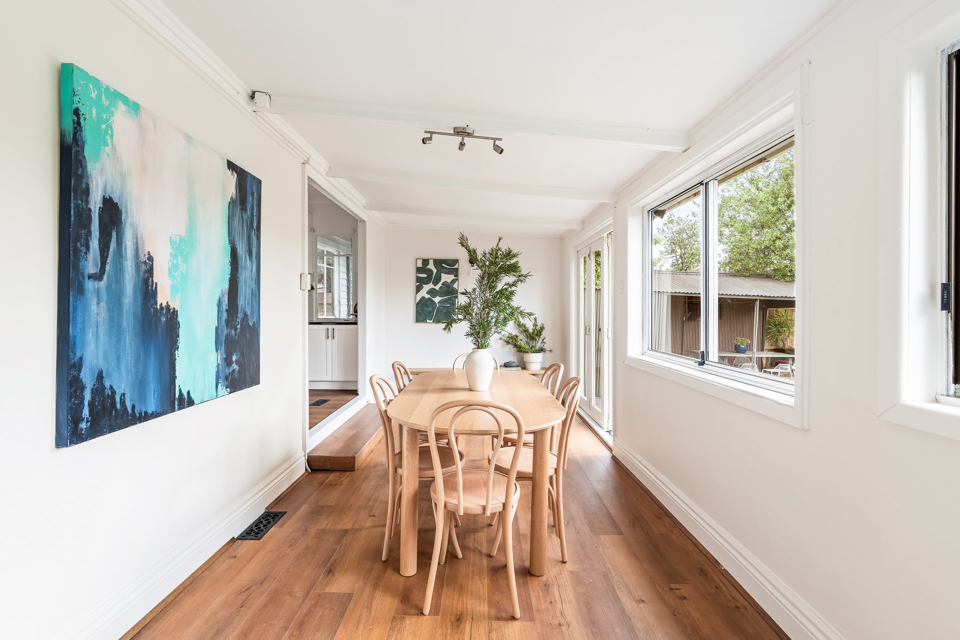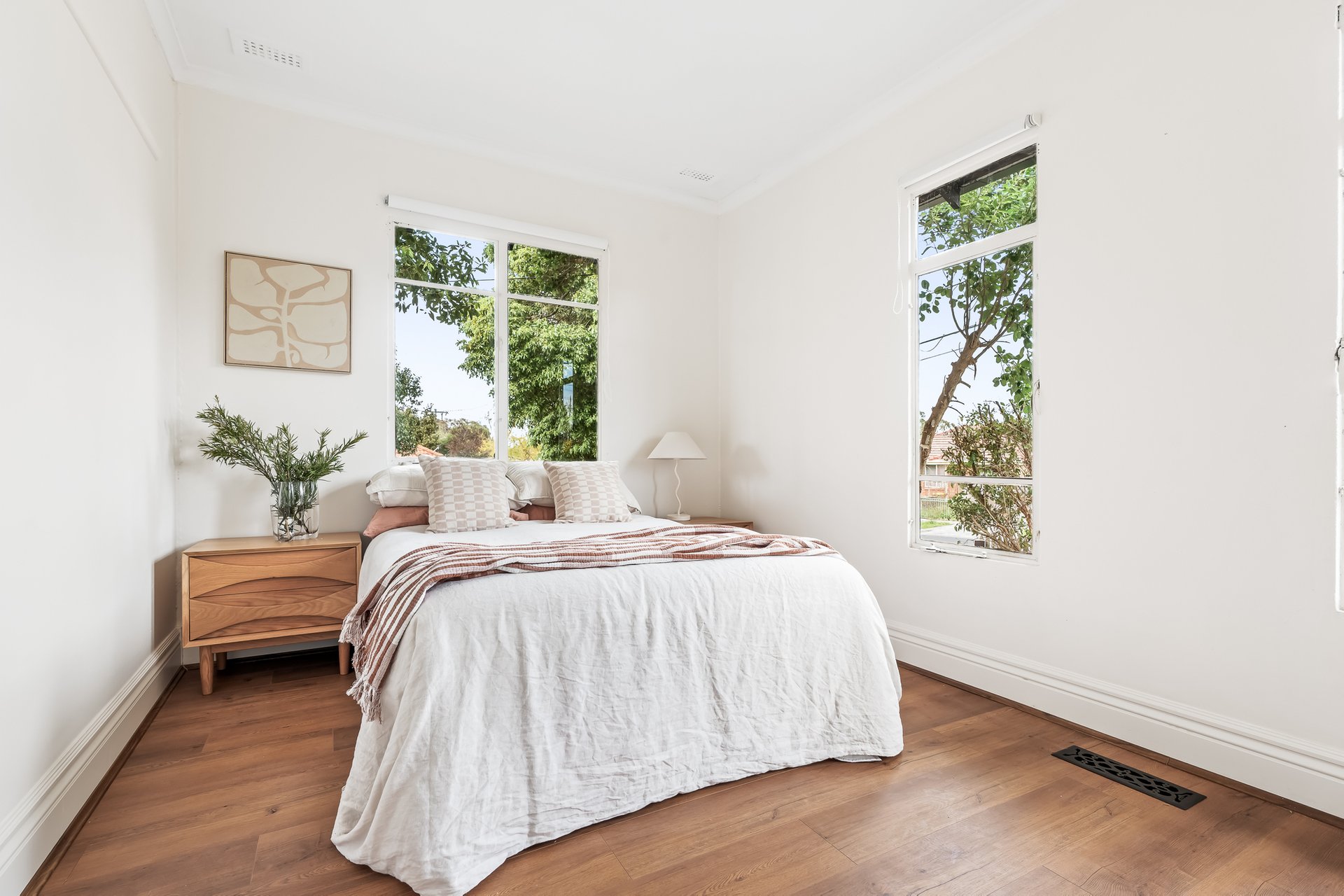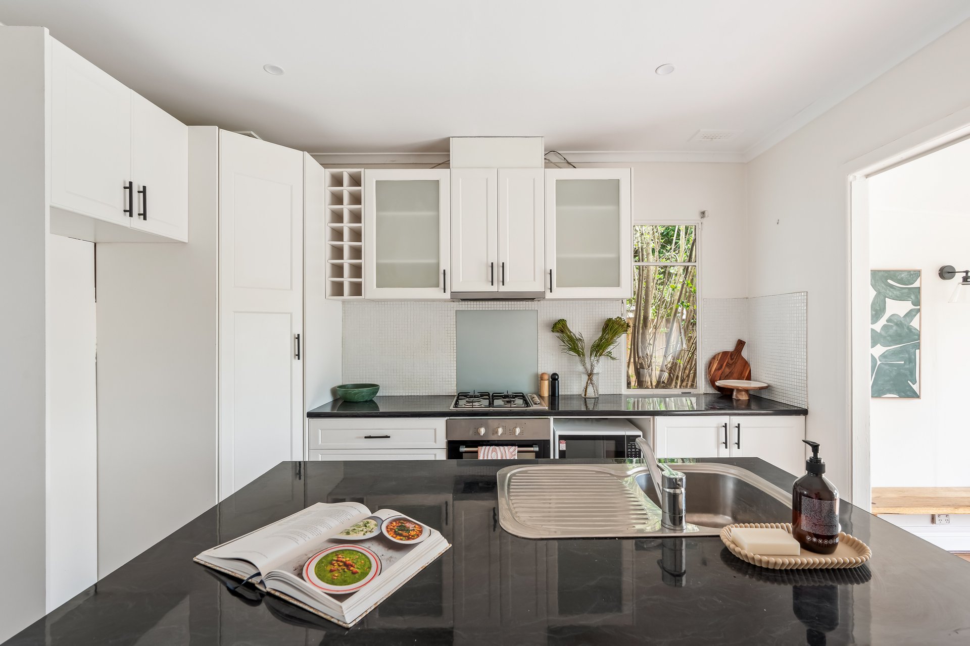The heart of the home is the contemporary kitchen, complete with sleek countertops and ample storage, seamlessly flowing into the expansive dining area. This layout is ideal for entertaining guests or enjoying family meals together. A beautifully landscaped north-facing backyard, complete with lush greenery and a charming cubby house, provides a serene escape for both adults and children. The separate studio space offers flexibility for a home office, additional bedroom or creative pursuits, ensuring that every family member’s needs are met.