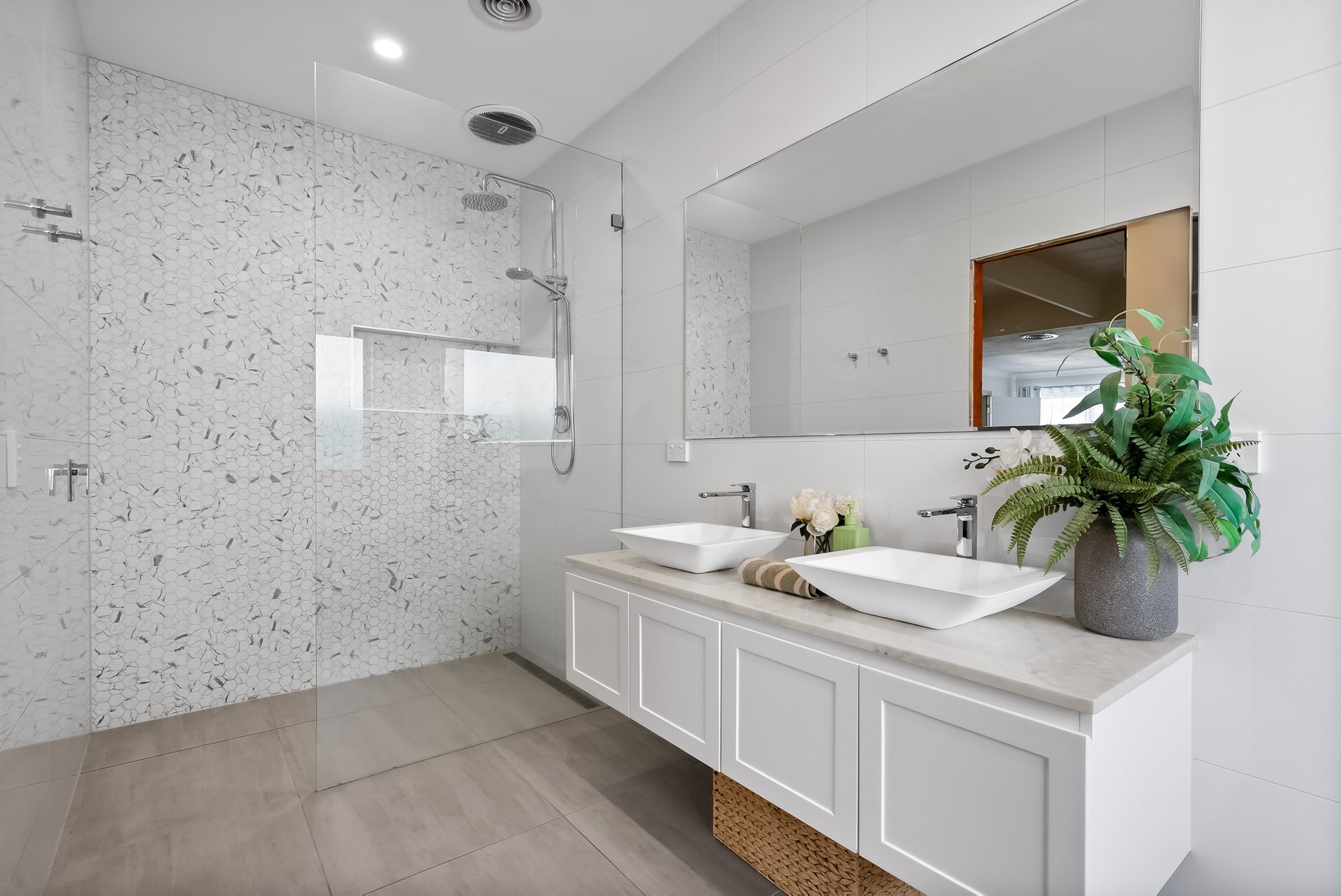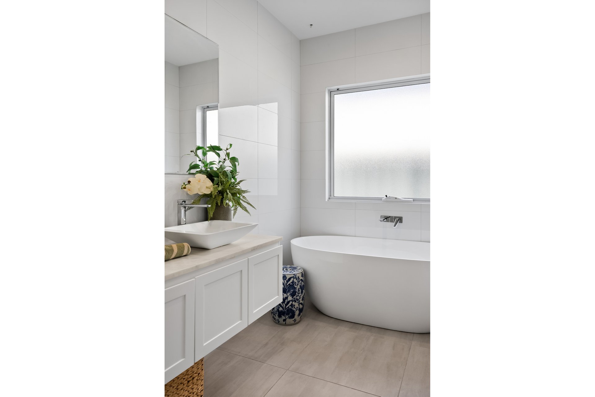 The home includes two bathrooms, both thoughtfully designed. One has been modernised to include a freestanding bathtub and frameless shower, while the ensuite stands out with its open, glass-free waterfall shower design.