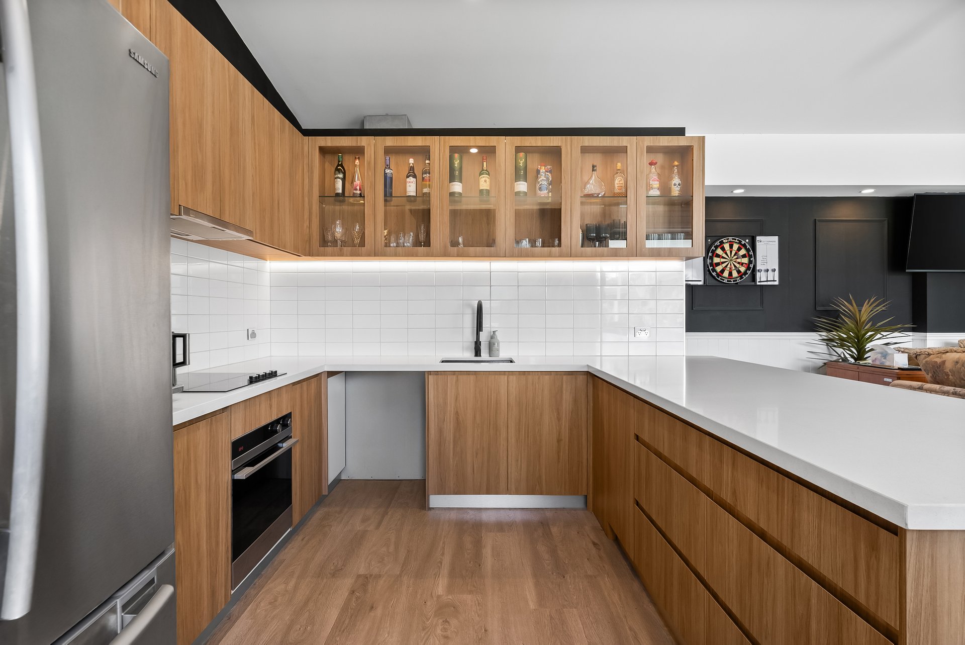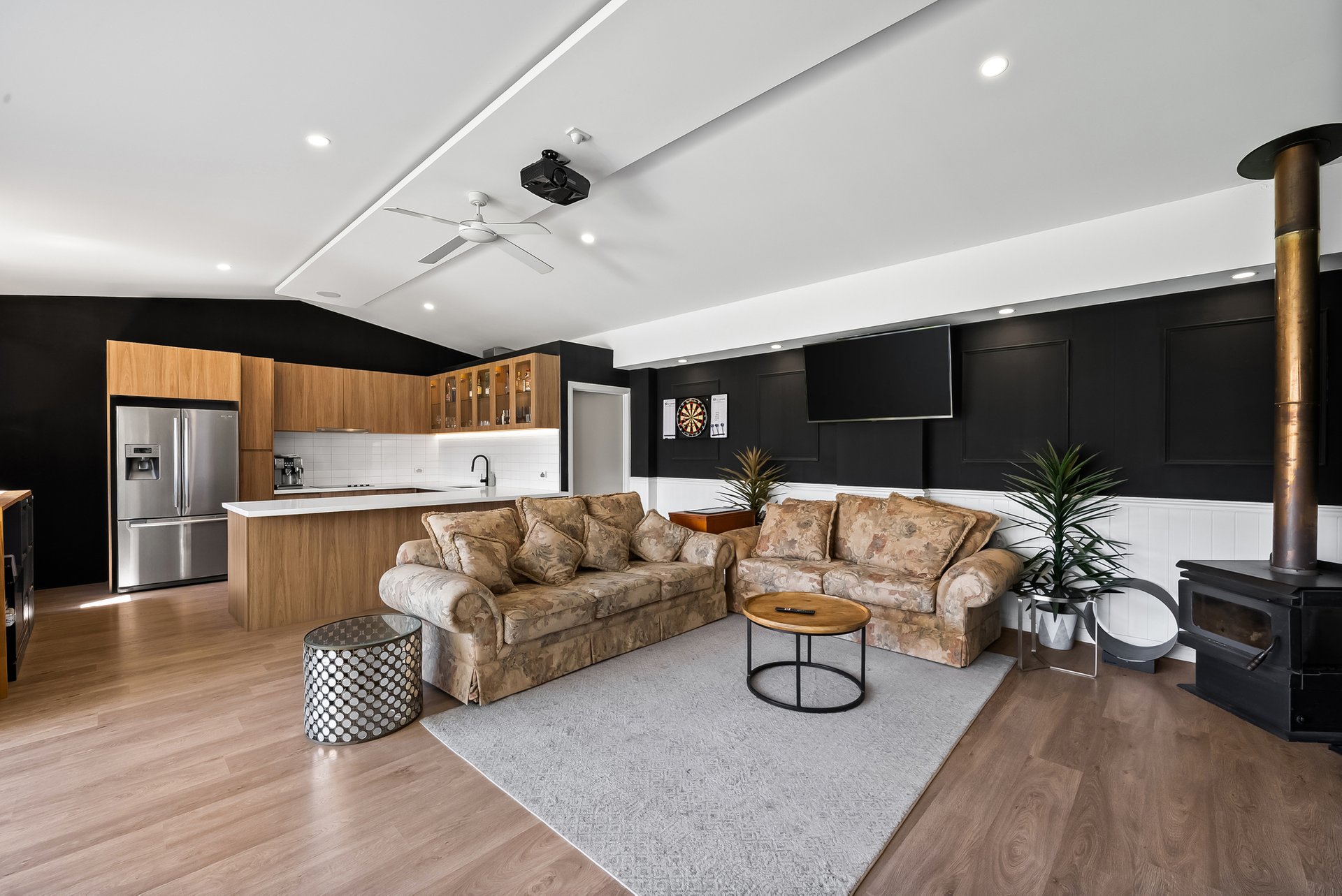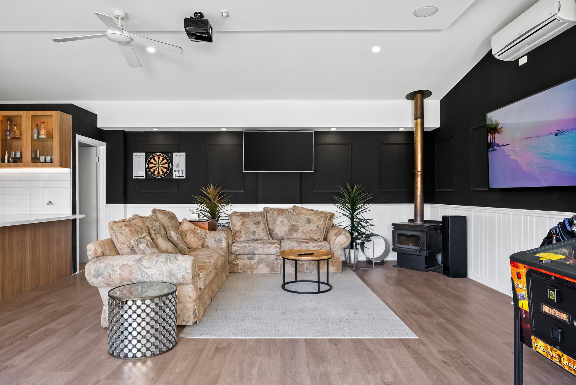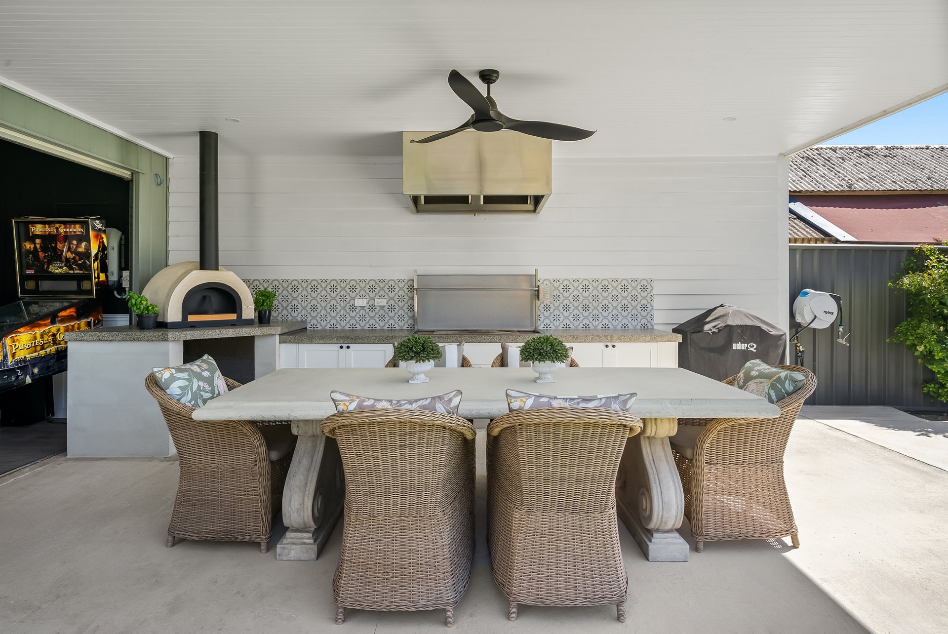 The outdoor family zone is a true highlight, featuring a fully covered alfresco and outdoor kitchen designed for year-round use. Complete with a built-in charcoal BBQ, rotisserie and wood-fire pizza oven, it’s an ideal space for entertaining, family gatherings or relaxed weekends at home, regardless of the season. The low-maintenance garden and large shed add further appeal, offering storage and room to move.