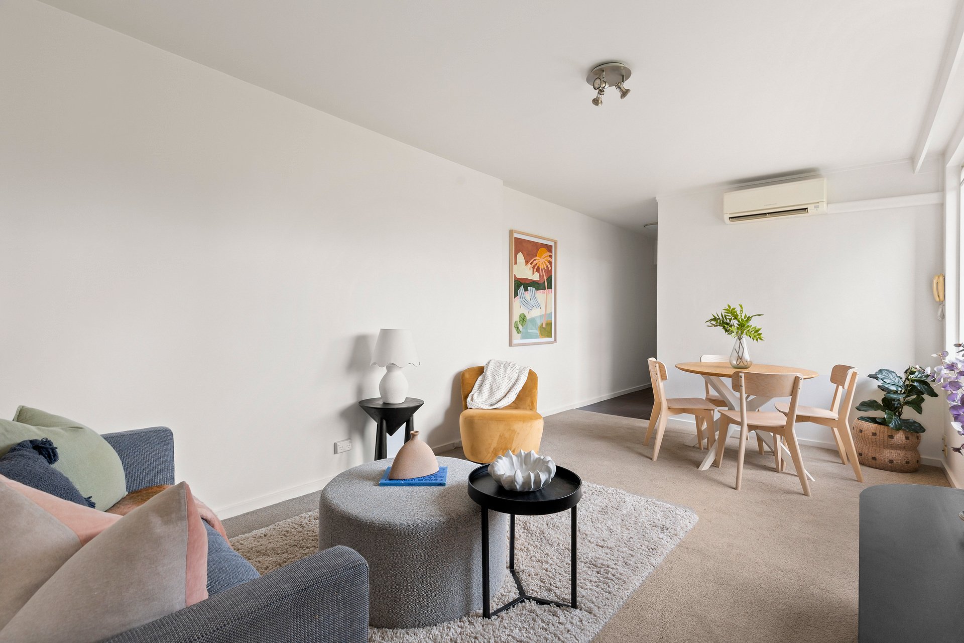 Positioned on the second floor of an immaculately maintained boutique block, this oversized one-bedroom apartment offers a rare combination of views, space, and serenity in the heart of South Yarra. Bathed in an abundance of natural light, the apartment is a celebration of bright, airy living. Sunlight streams through the well-positioned windows throughout the day.