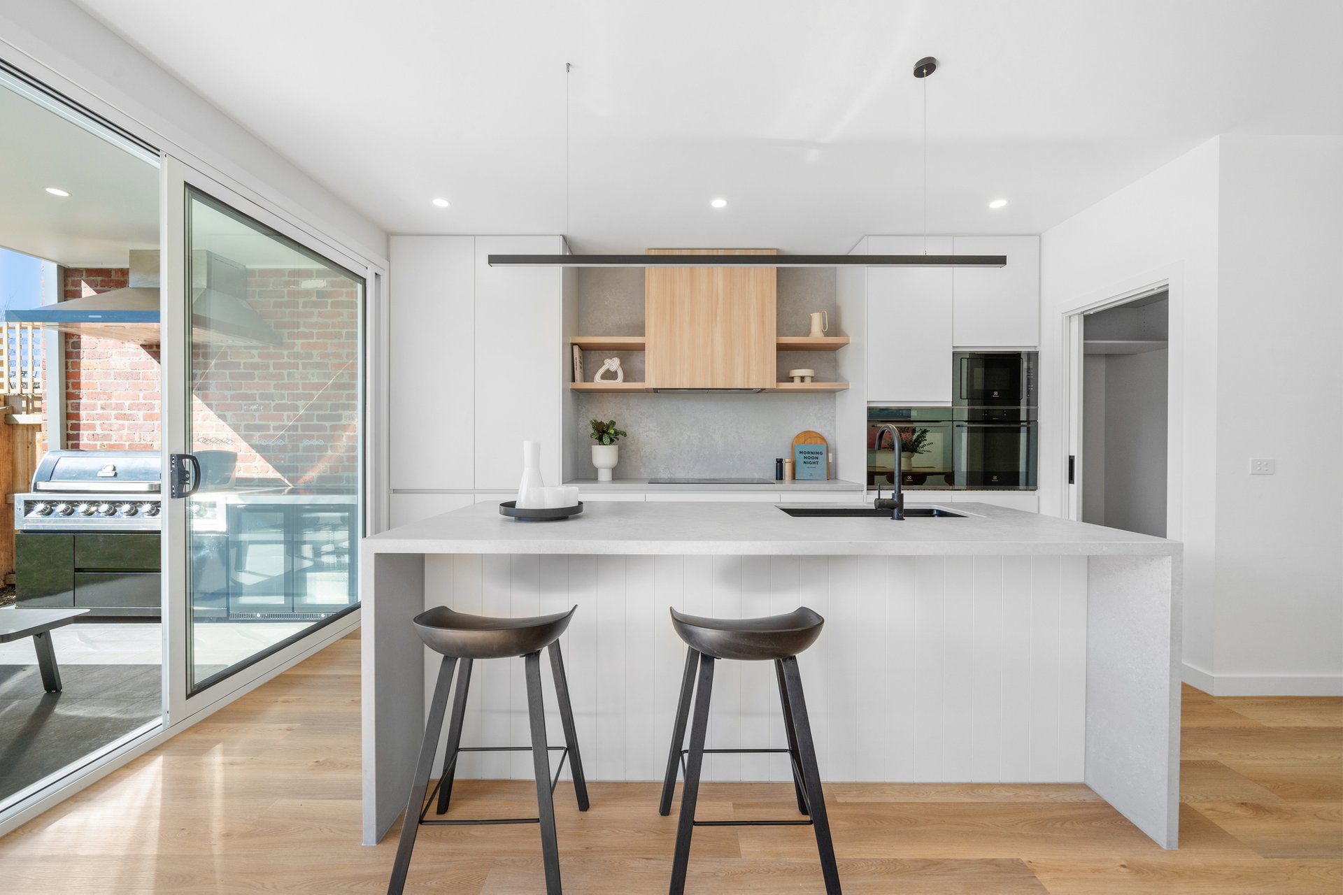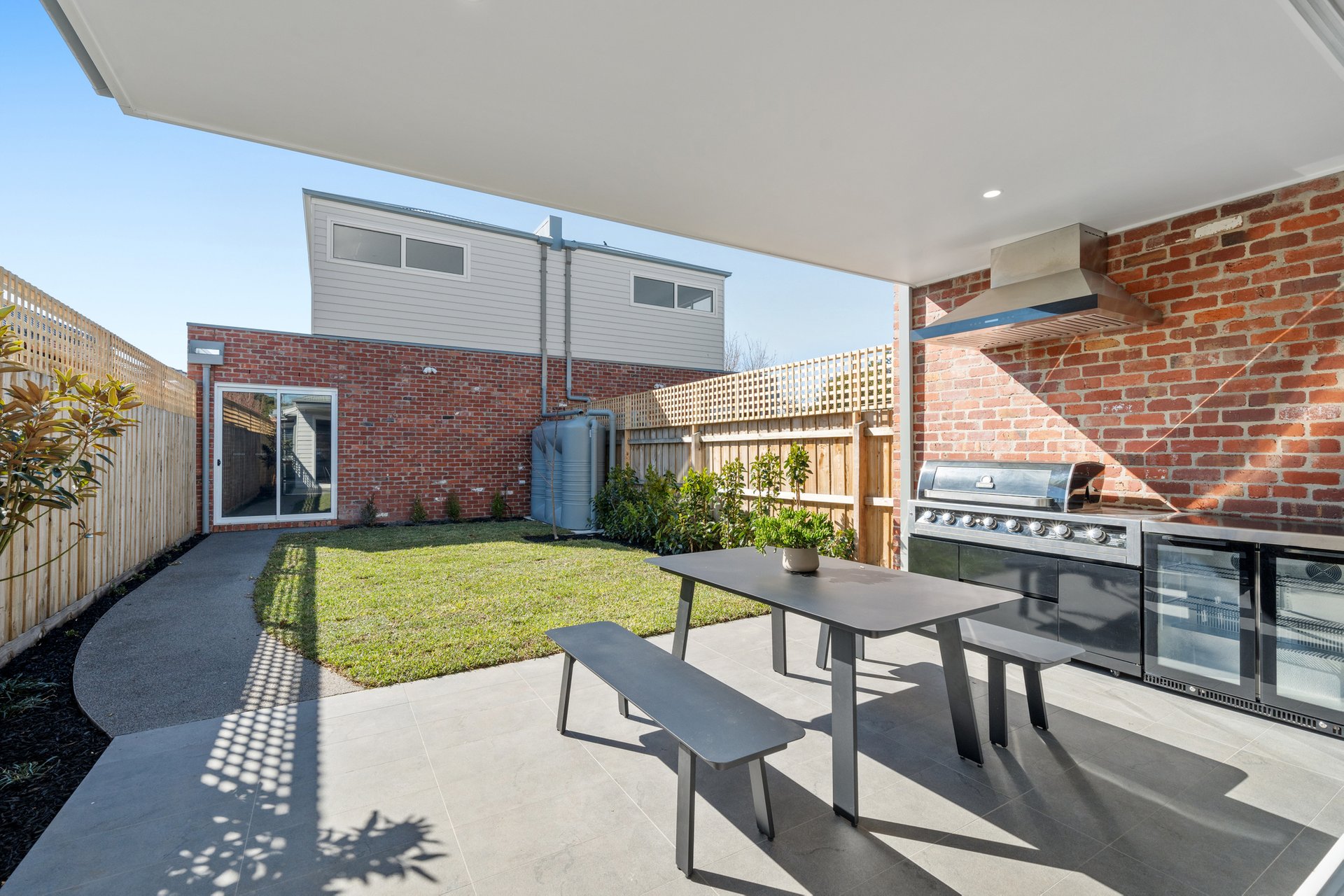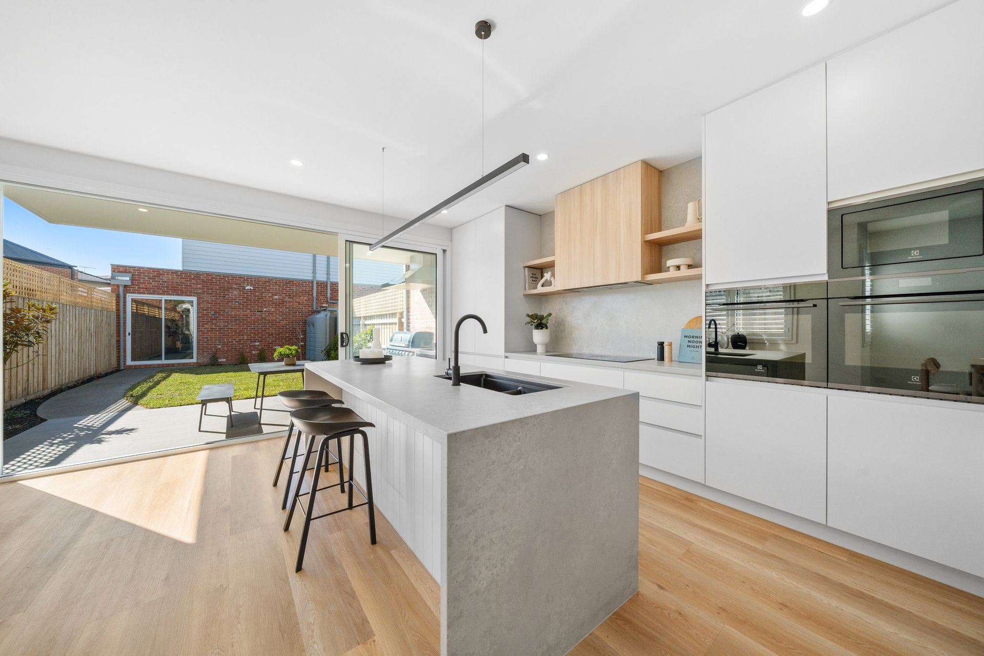 Perfect for entertaining, the home’s outdoor spaces include a covered alfresco with bar fridges, easy-maintenance grass, and a seamless indoor-outdoor connection.
