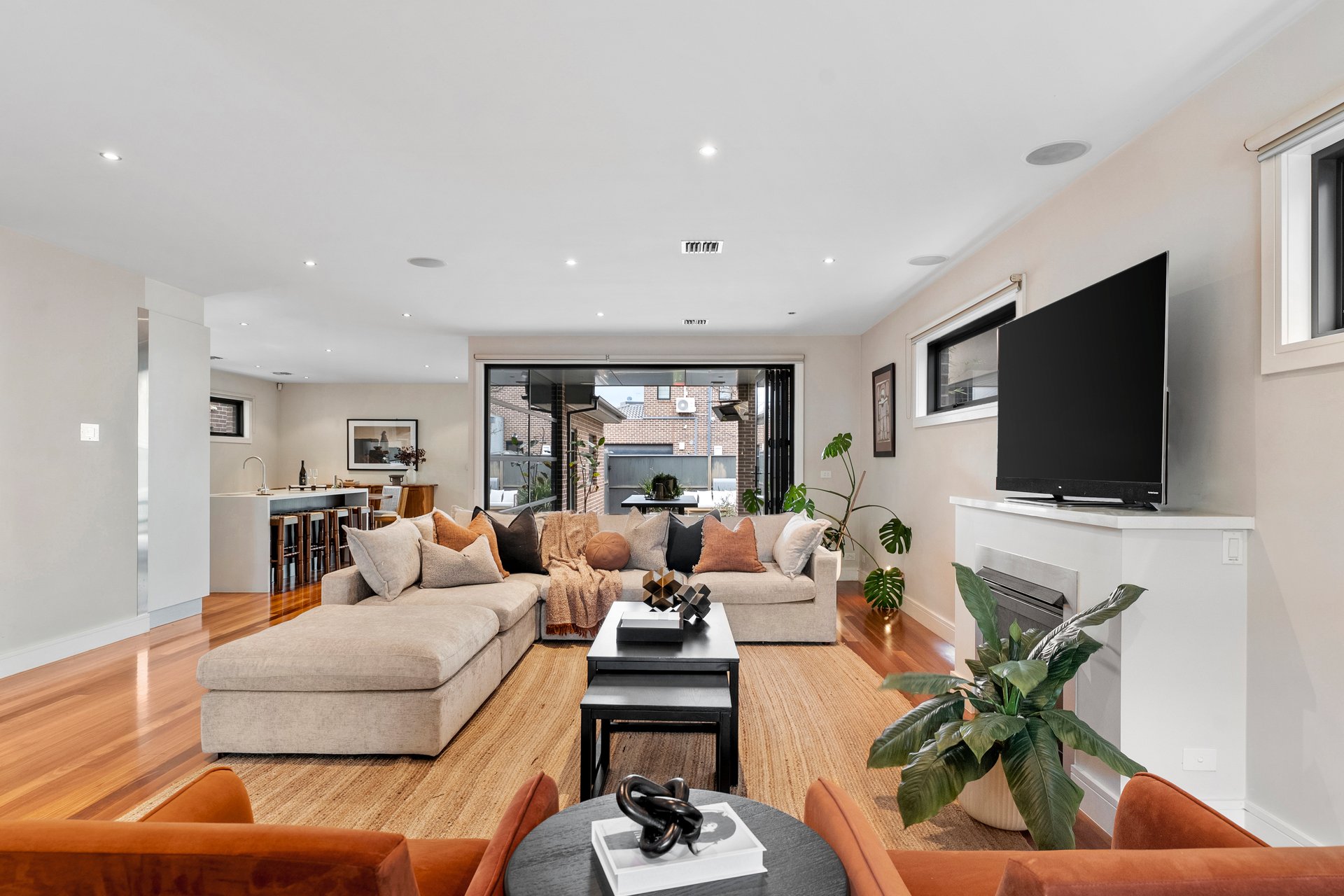 Indulge in a lifestyle of sophistication with this executive-style four-bedroom, two bathroom residence where contemporary design and refined finishes create an unrivalled sense of luxury, yet easy living, low maintenance. Serenely located in a sought after enclave, steps from the Maribyrnong River. Inside, family life revolves around the vast open plan living and dining spaces featuring gas fireplace, polished floorboards and expanses of glass. Bi-fold doors deliver unimpeded indoor-outdoor connection to the undercover alfresco entertaining area including a private, sun drenched rear garden. While a stone kitchen, with Smeg appliances, Miele dishwasher and endless storage, is a social hub for families and guests to enjoy. Upstairs reveals a large retreat, balcony, generous bedrooms with built-in-robes and stylish bathroom.