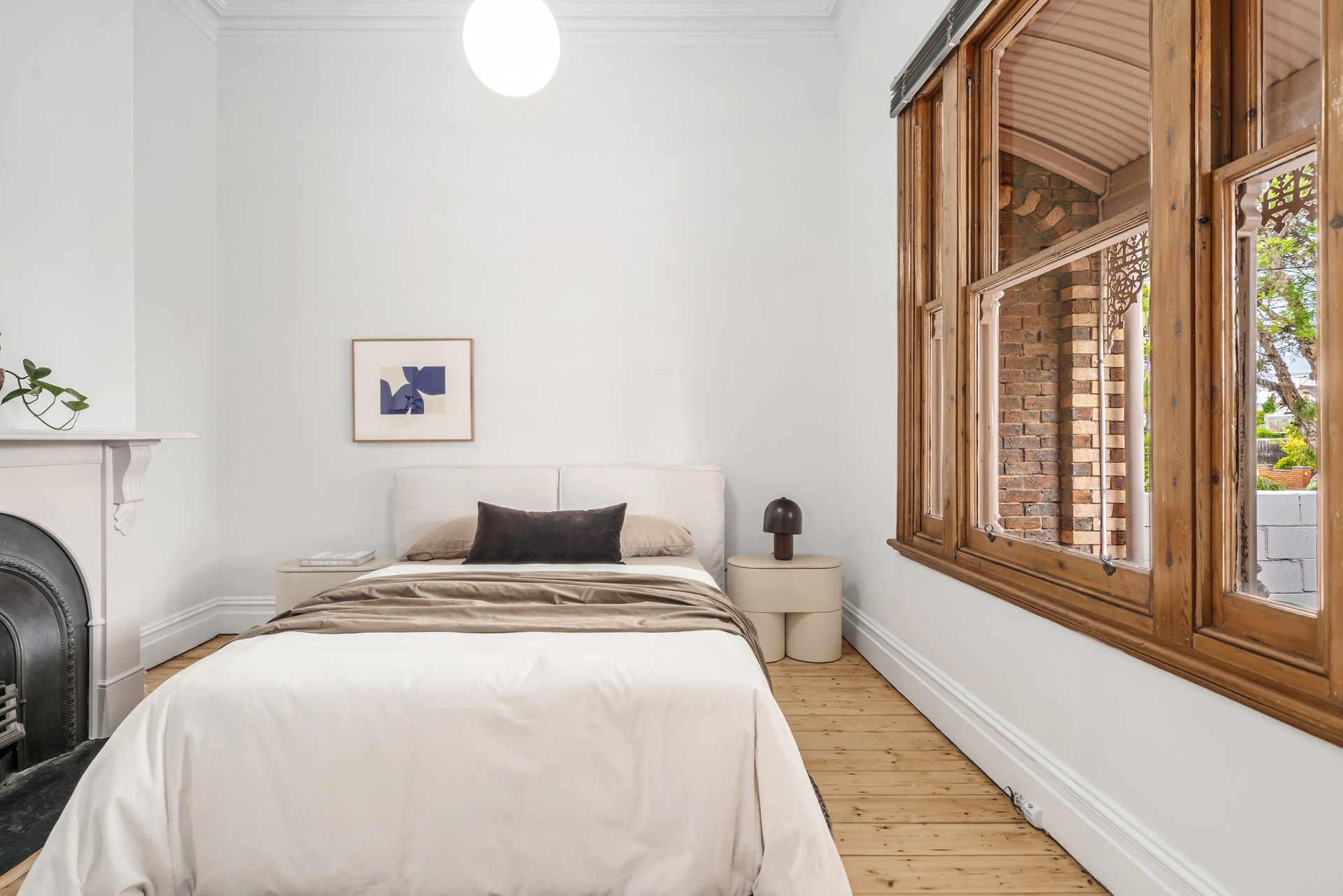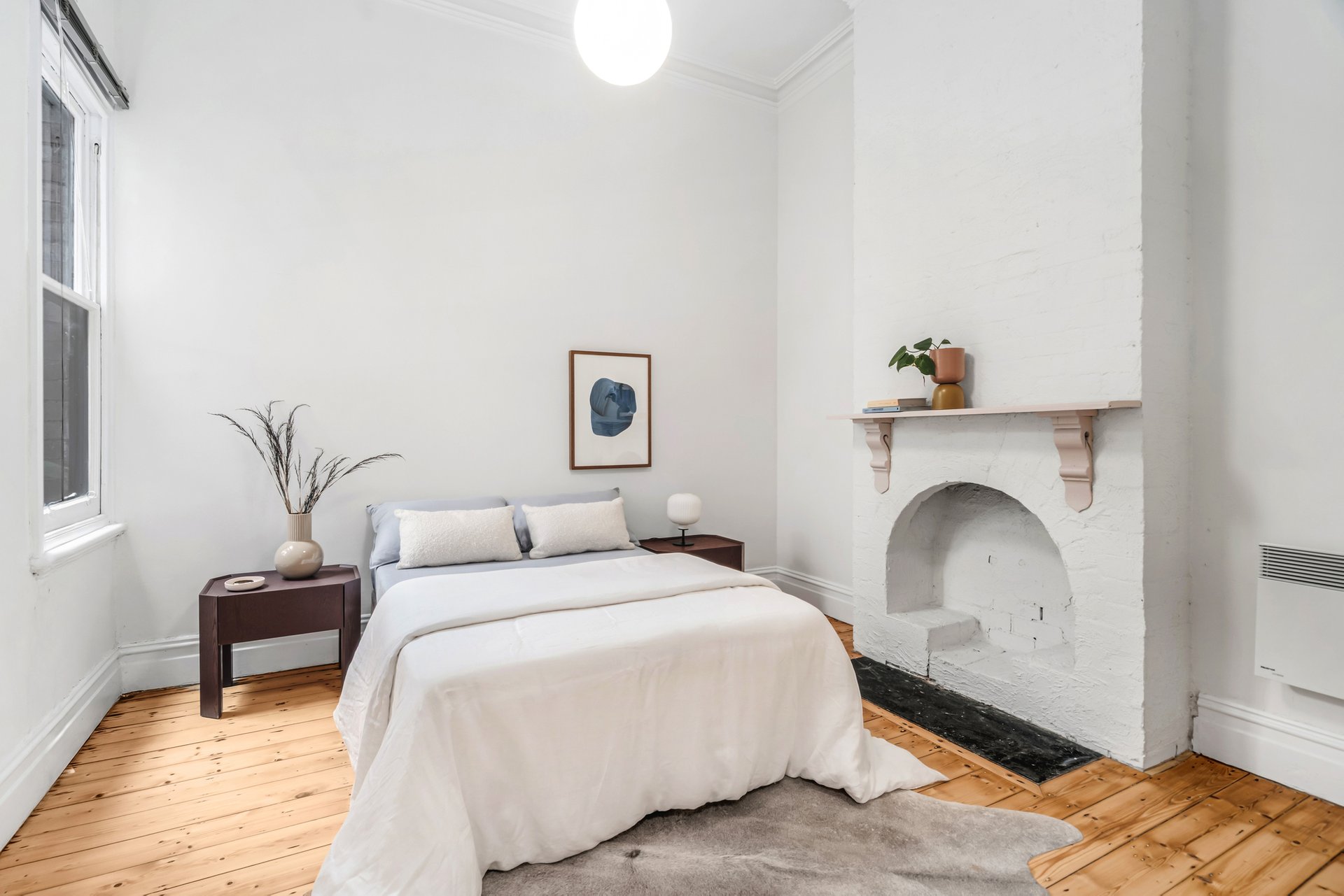Both bedrooms are generous in size and continue the period elegance with tall ceilings, timber floors, and original fireplaces. The bathroom complements the home’s character, while a separate laundry adds everyday practicality. Sunlit interiors throughout enhance the sense of space and calm.