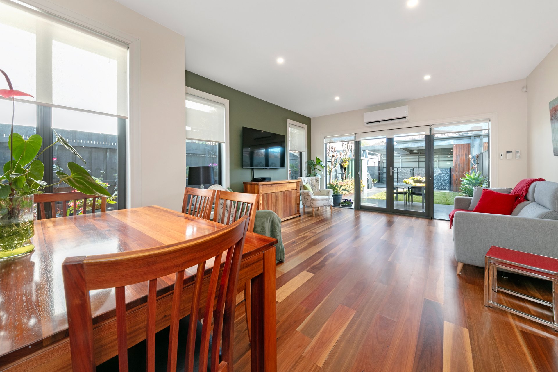 With multiple split systems, the home also features stunning spotted gum floors, an alarm, powder room, full laundry, water tank & sunny rear courtyard. There is also the convenience of a secure double carport with remote-controlled door, accessed via the rear of the property.
