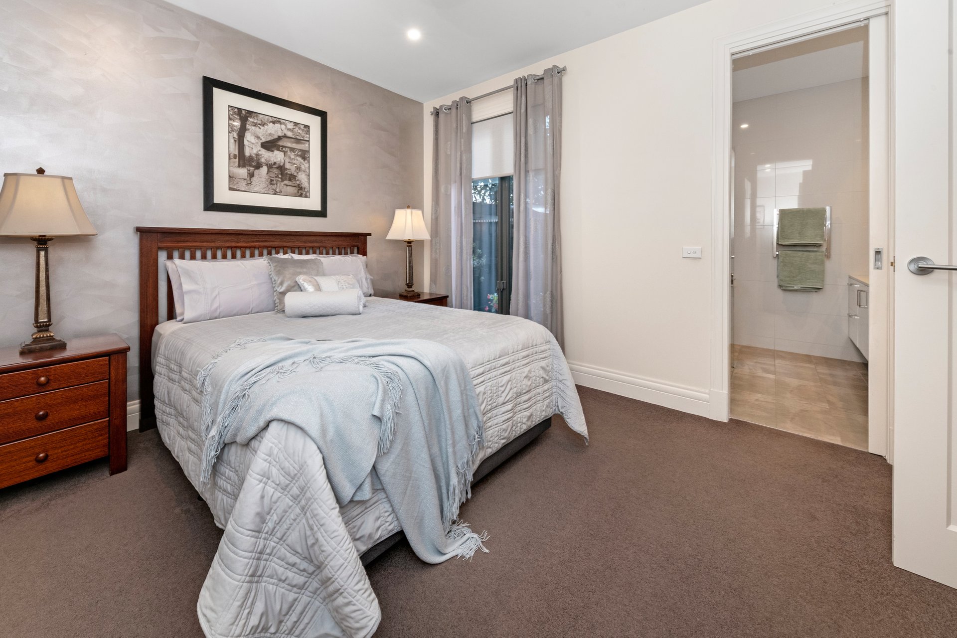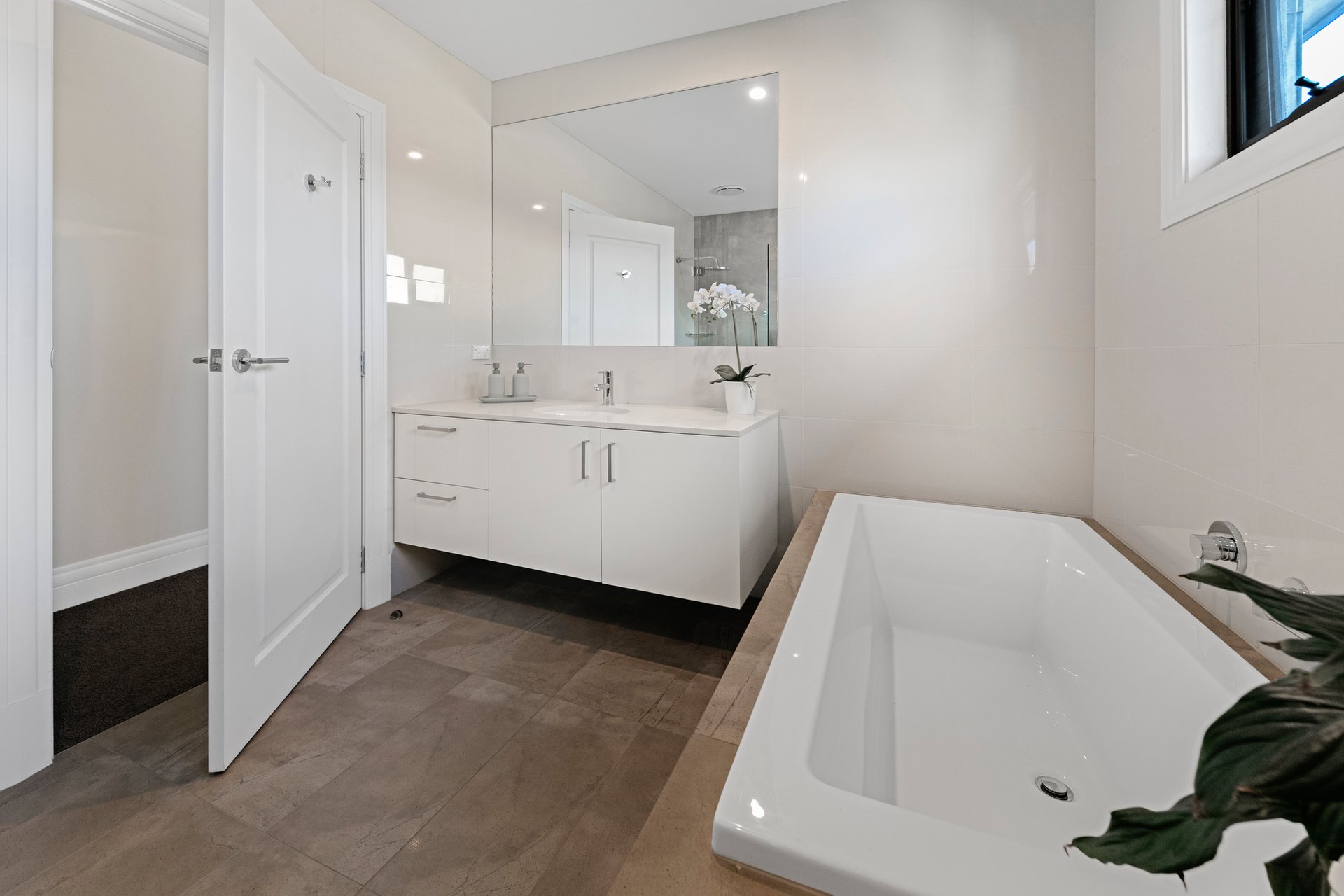 Two additional bedrooms are tucked away upstairs, and flank a first-floor study area/retreat. They share a fully-tiled bathroom with sumptuous bath and drenching rain shower.