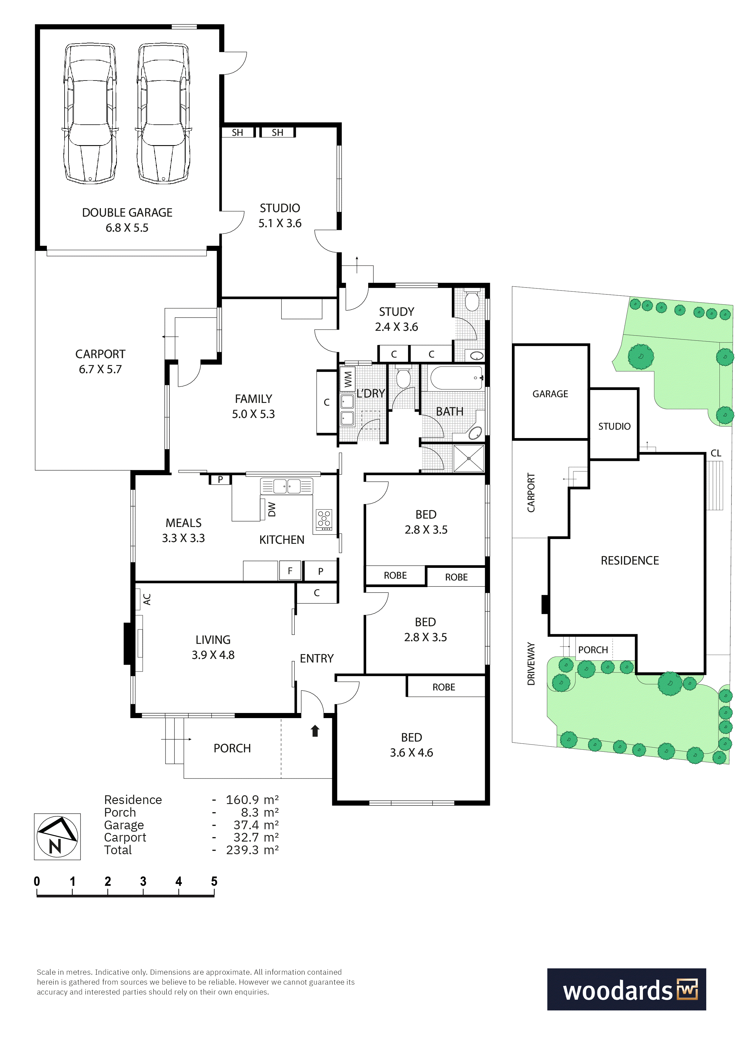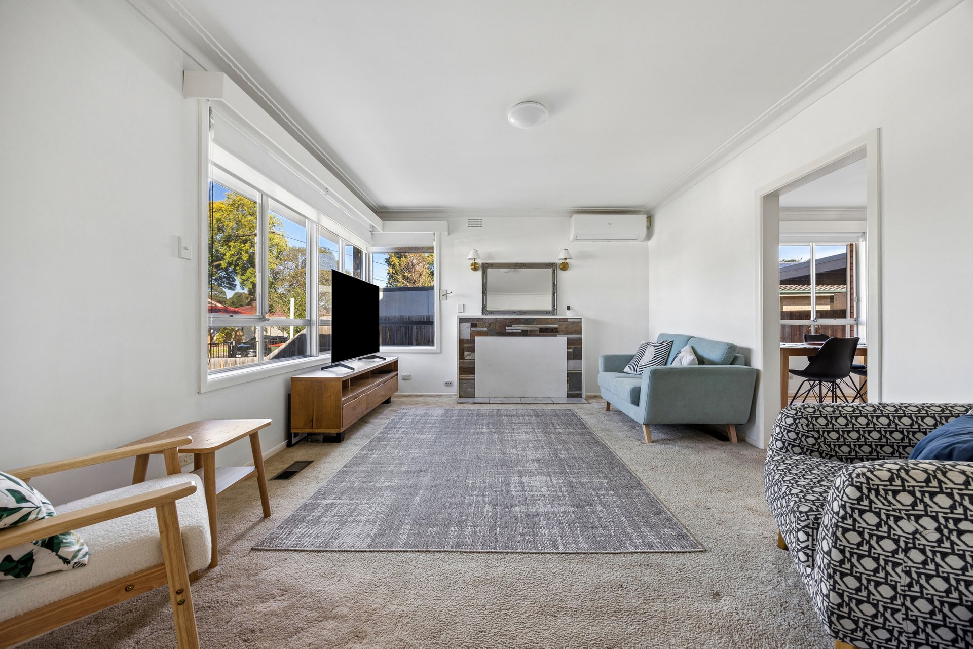 The existing layout is easy to work with. A front living room flows through to a dining area that connects openly with the kitchen, fitted with a dishwasher and a 900mm freestanding stainless-steel stove. Beyond, a separate family room adds a second living zone and opens directly to the carport, making day-to-day living simple. A separately accessed studio gives you valuable extra space. It works as a home office, hobby room, gym or a retreat for teenagers, depending on what life calls for.