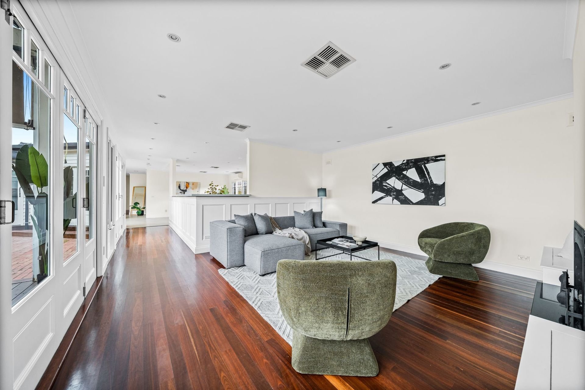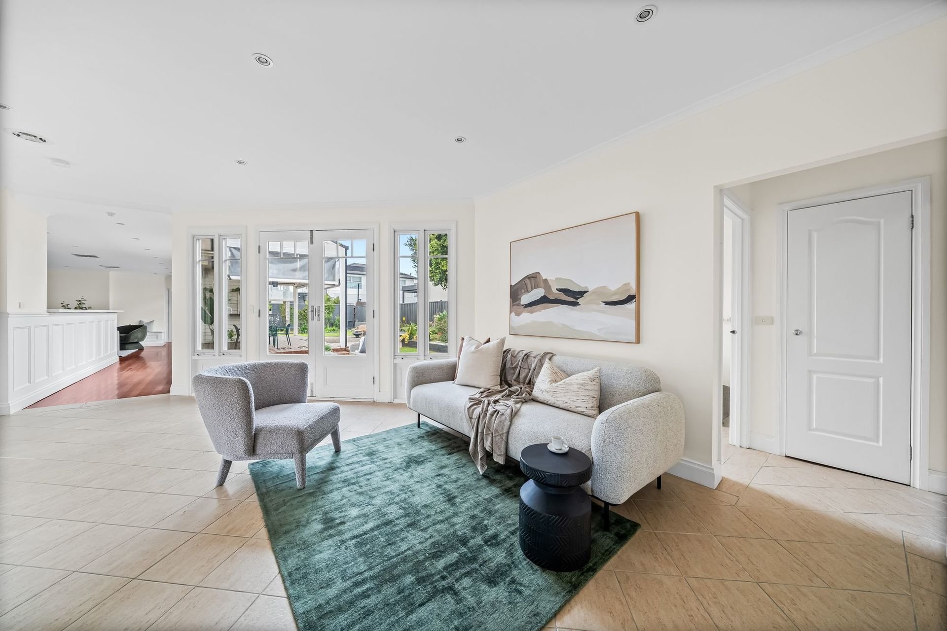 At the rear, a vast open-plan family domain connects seamlessly to a sheltered alfresco zone and sun-splashed patio, supported by a second kitchenette designed for entertaining-making it easy to host large gatherings both indoors and out.