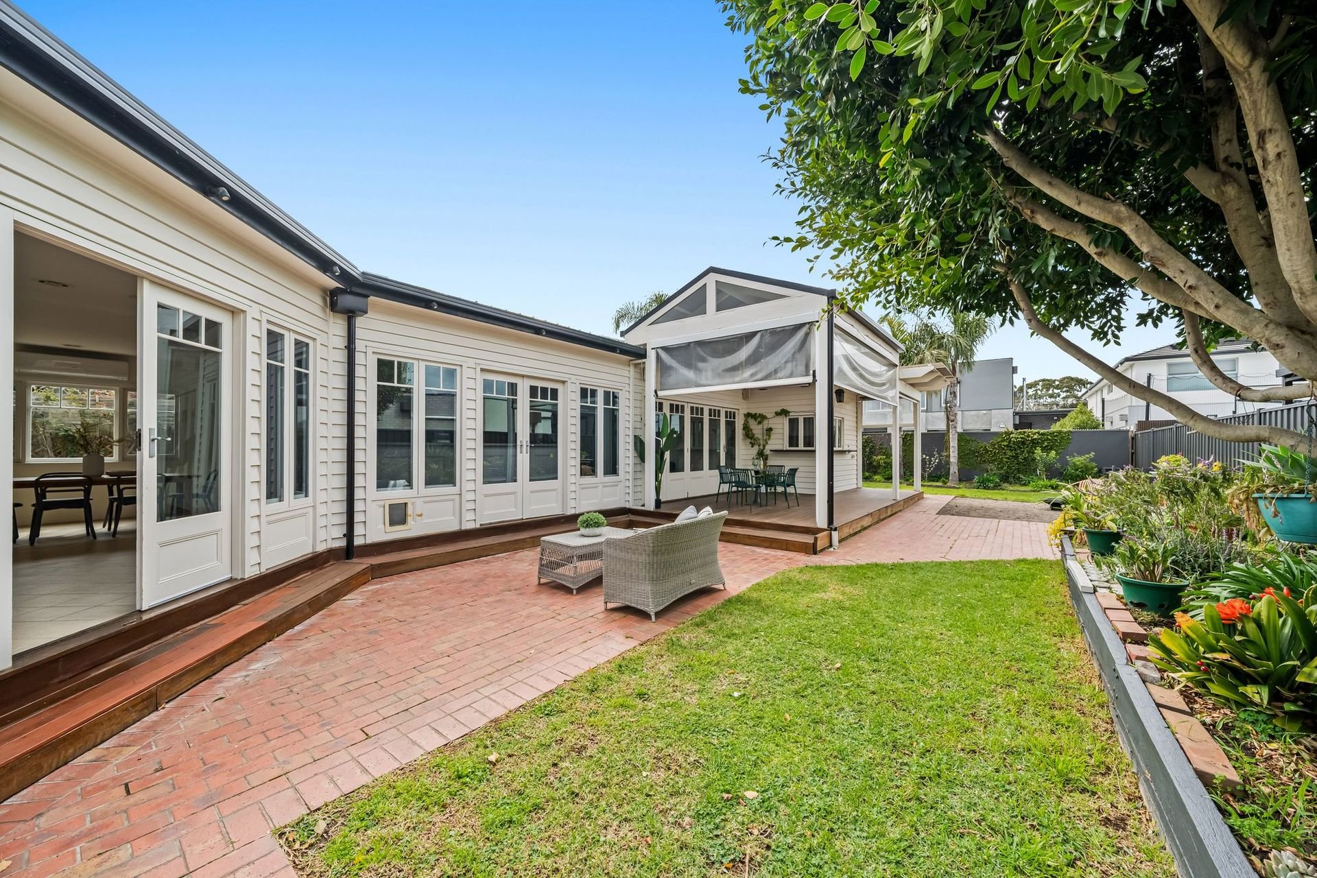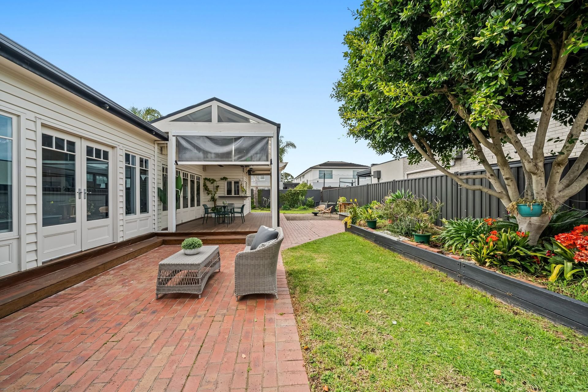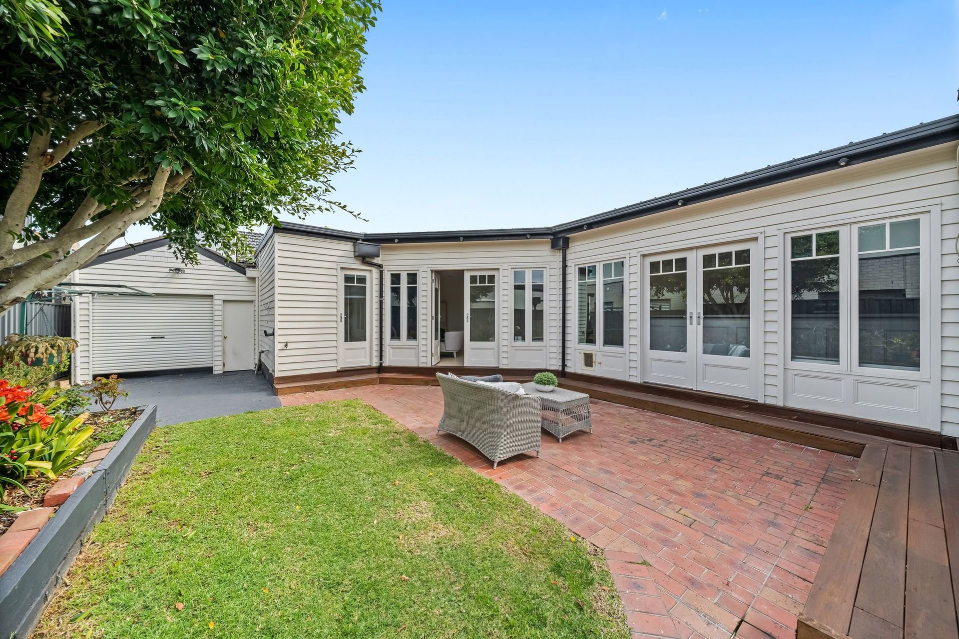 Outdoors, the deep backyard with established gardens and dual sheds enhances the lifestyle appeal, while a long driveway and oversized garage ensure secure off-street parking for multiple vehicles.