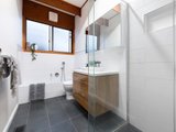 The stone kitchen offers a wealth of storage options along with a timber bar and stainless steel appliances, with a sizeable family room located right of this brilliant cooking space. A main bedroom at the home’s front boasts a gorgeous ensuite, while 3 other bedrooms are inviting and include a very secluded sunken back bedroom which will be perfect for the teenager who wants that little bit of extra privacy. The eye-catching bathroom which promises high timber beam ceilings and all the designer touches.