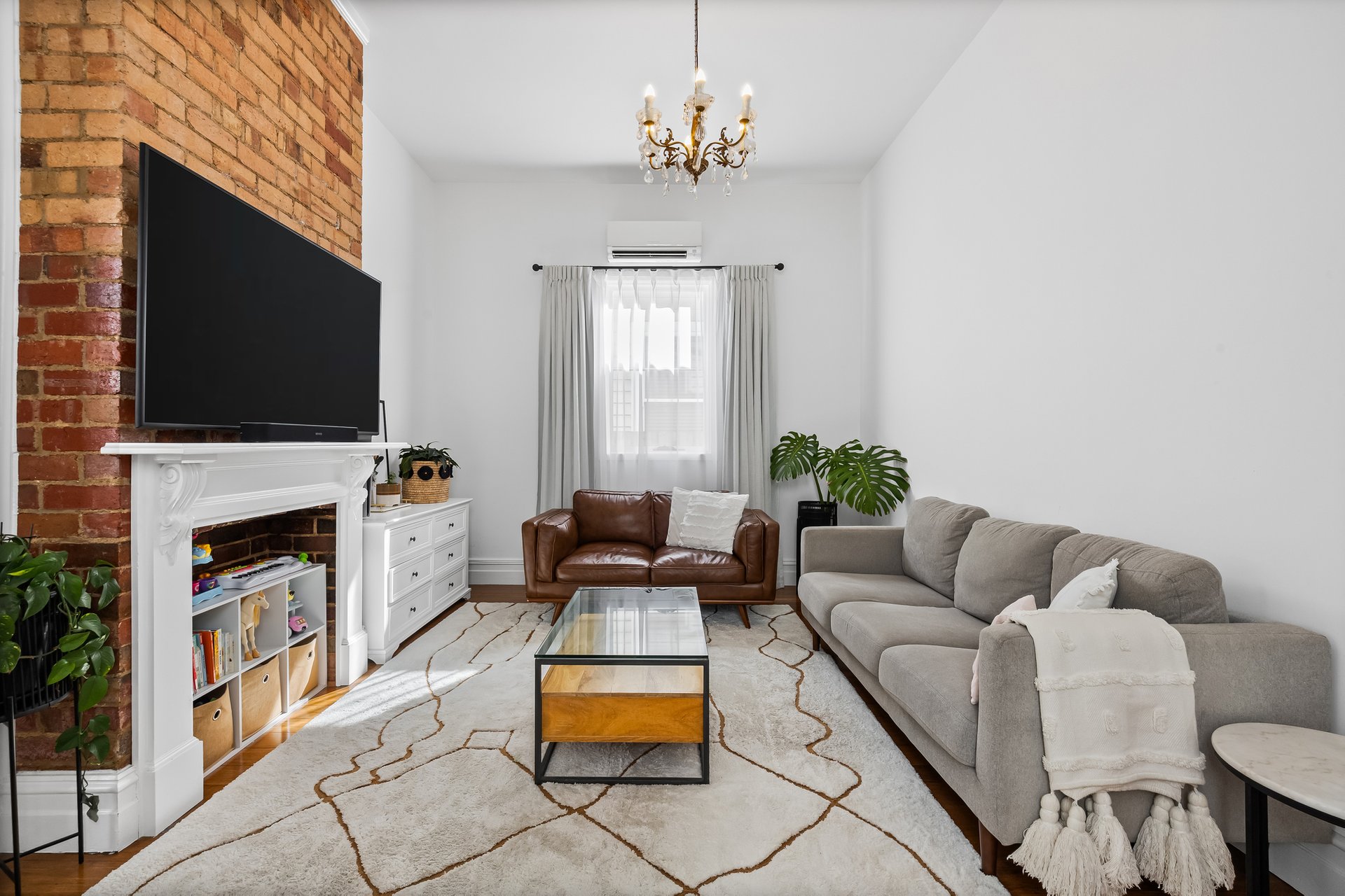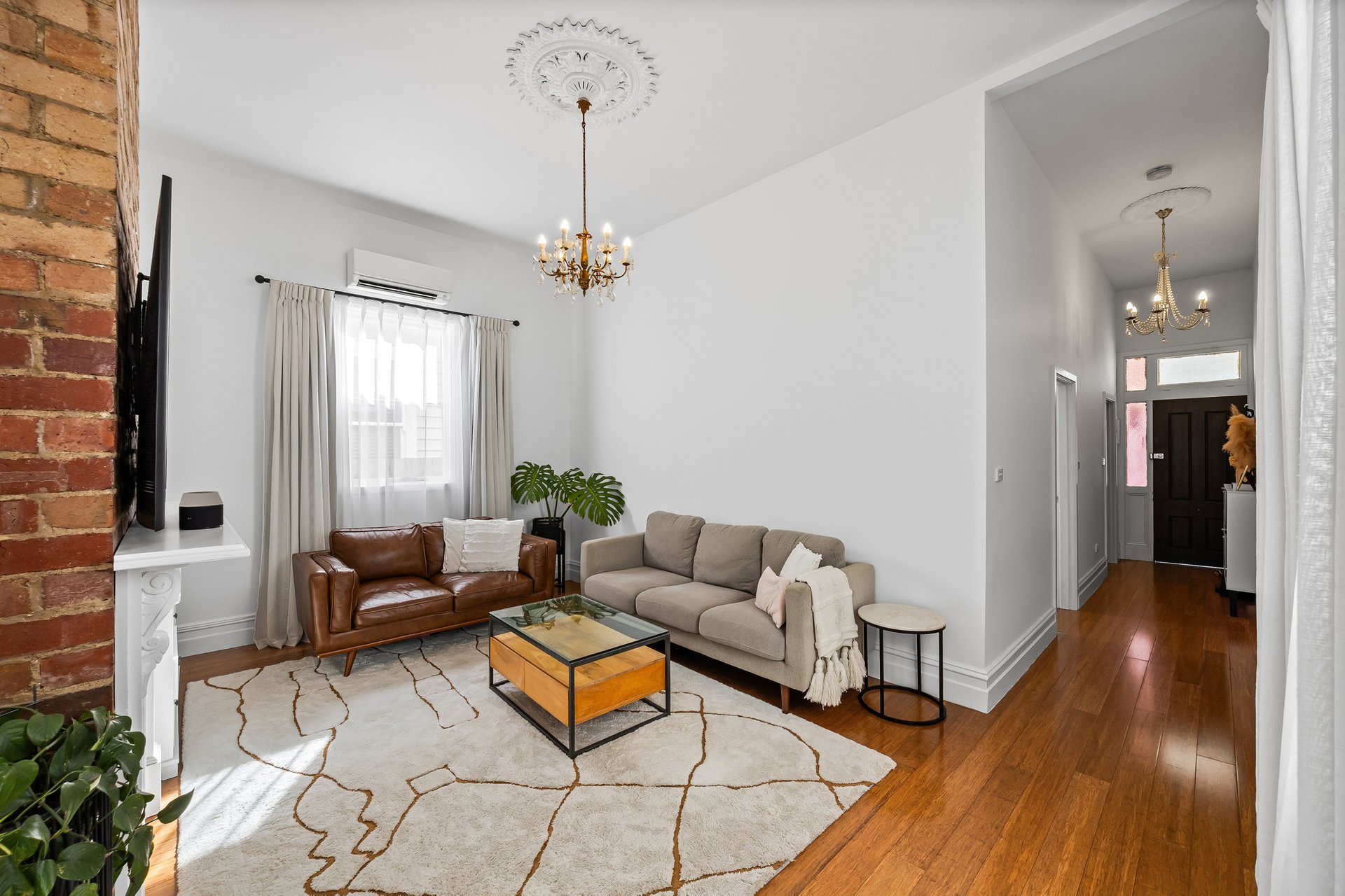 Behind its timeless façade, the home showcases beautifully preserved period features including high ceilings, decorative ceiling roses, original skirting boards and decorative fireplaces, complemented by timber floorboards through the hallway and both bedrooms. These features create warmth and charm while supporting comfortable everyday living.