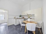 Inside, the home retains its classic appeal with original hardwood flooring, high ceilings and period detailing throughout. The centrally located living room is filled with natural light and features a gas fireplace, stained glass accents and split system heating and cooling, creating a warm and inviting space to relax. The kitchen and dining zone is thoughtfully combined for practicality, with laminate benchtops, tiled splashback, a freestanding gas stove and oven, built-in pantry and ample storage.