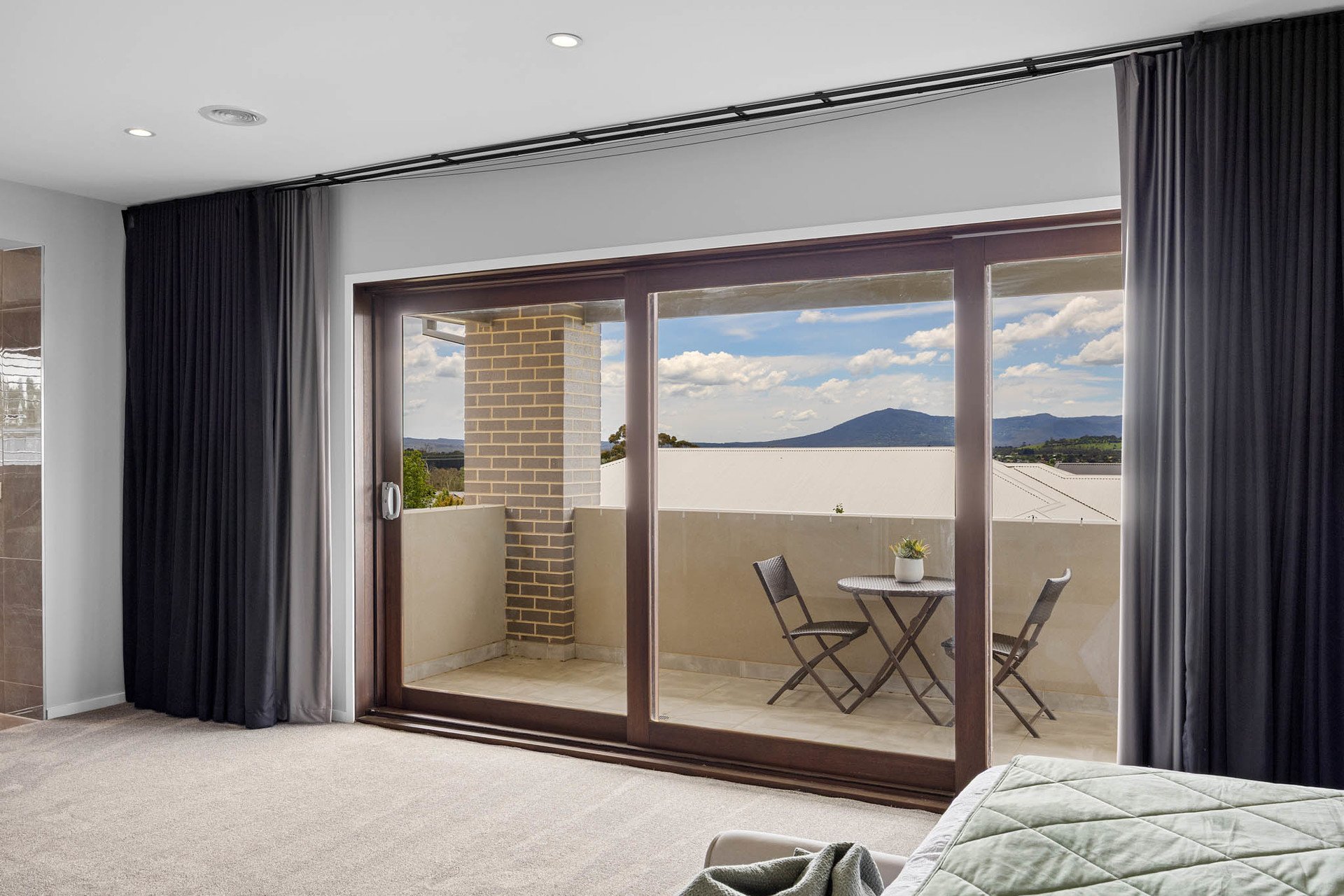 Upstairs, a leisure room with a large picture window captures leafy outlooks, while superb accommodation comprises four bedrooms accompanied by two lavish, fully tiled bathrooms and a powder room. The resort-worthy main suite delivers palatial proportions, with glass stacker doors opening to a private balcony that captures the magnificent Macedon Ranges views, accompanied by a fitted dressing room and a luxury ensuite with twin stone vanity, shower, bath and plantation shutters.