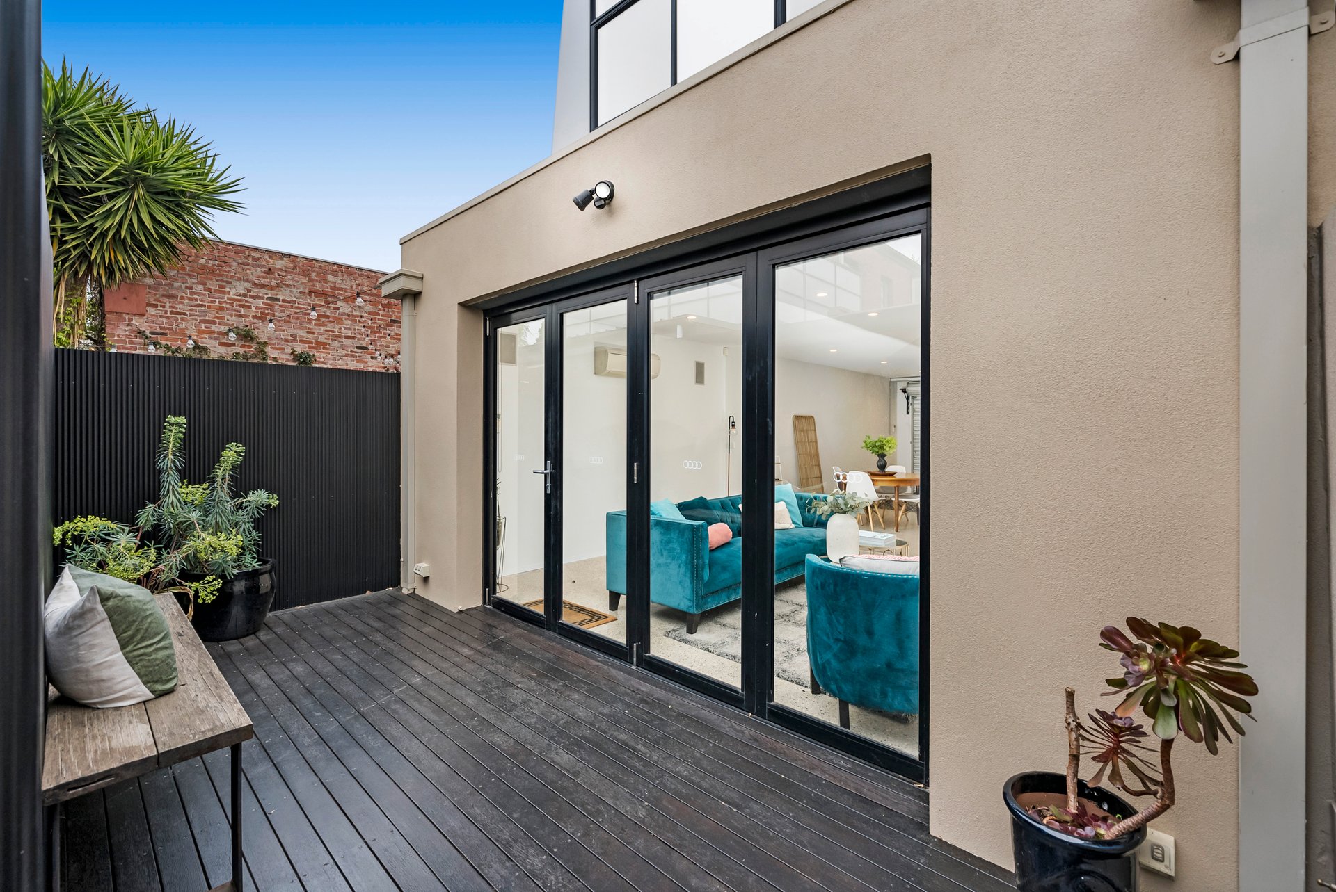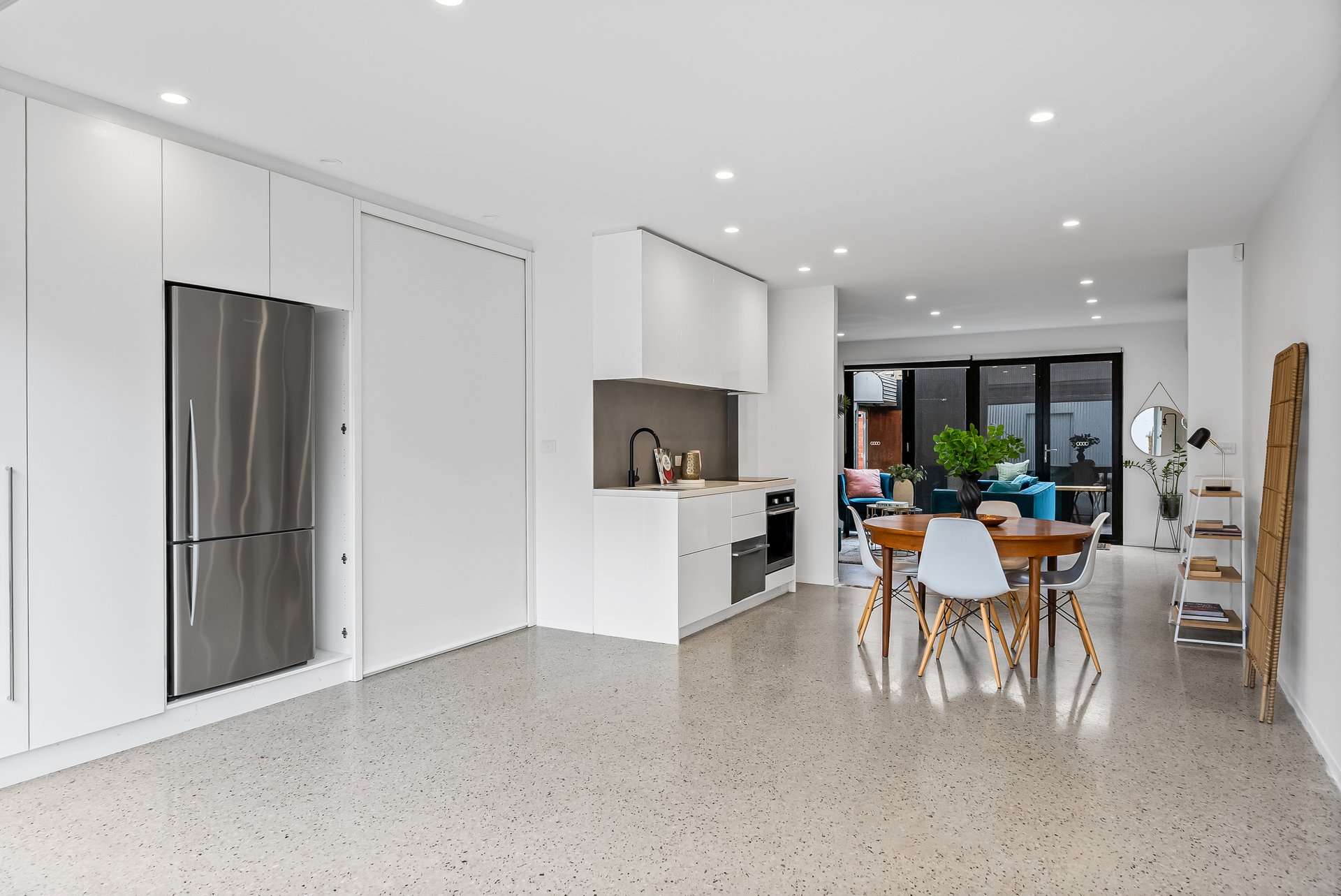 Privately positioned at the rear with its own separate title and entrance via the lane off Lee Street, this architect-designed two-bedroom townhouse offers contemporary style, flexibility, and low-maintenance living in a premier Carlton North location.