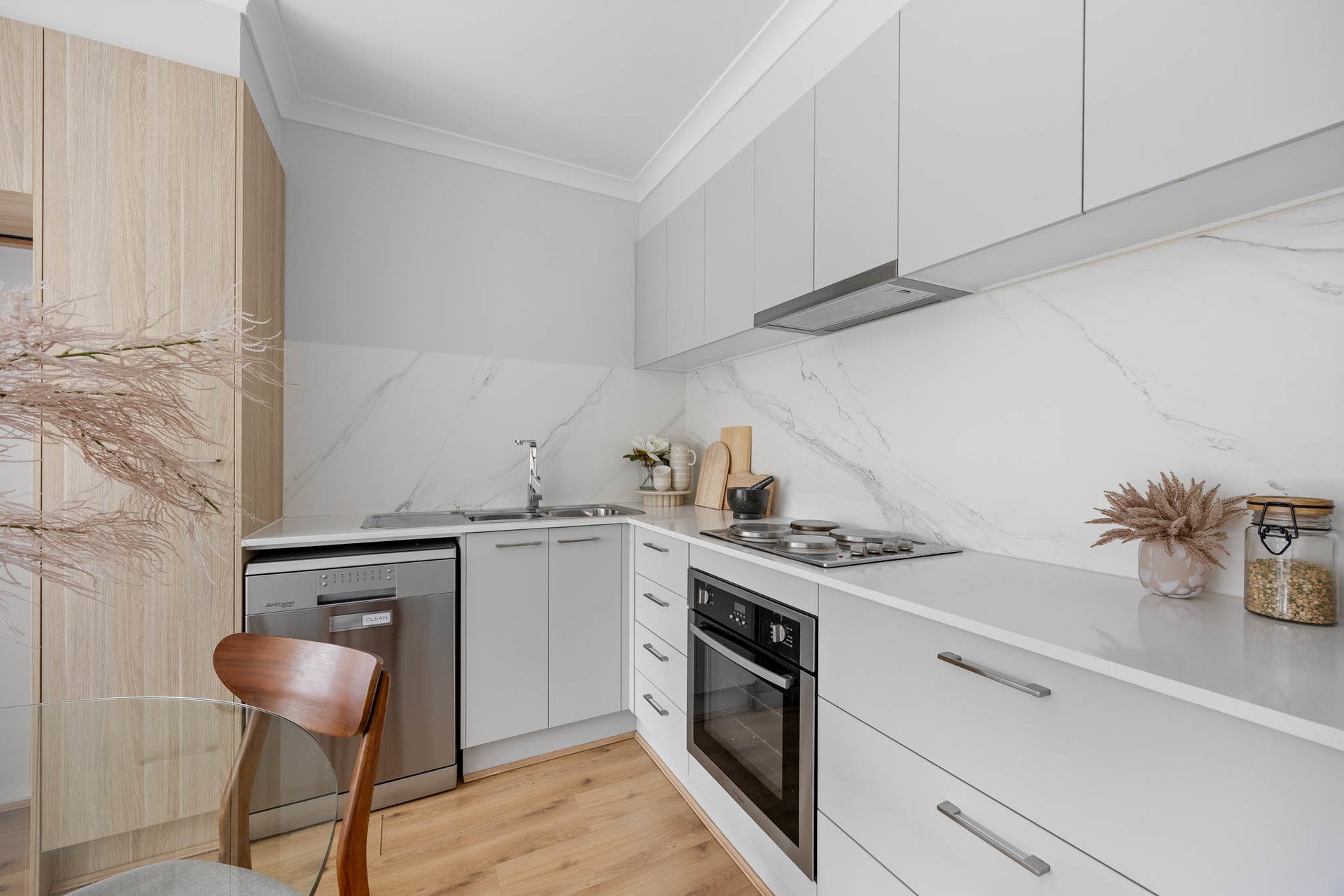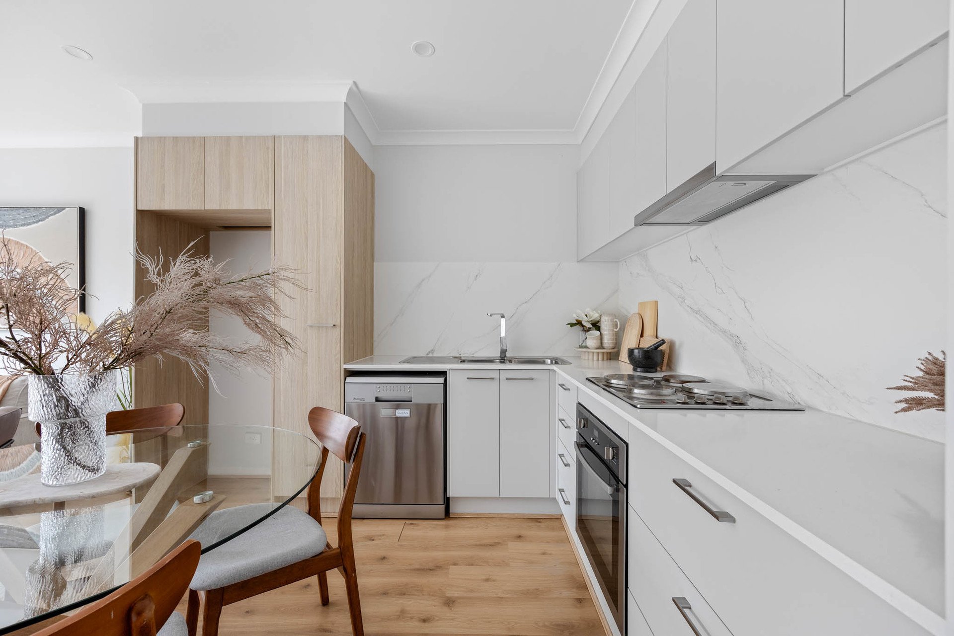 Perfect for first-home buyers, downsizers, or investors, this stylish two-bedroom unit offers comfort, convenience, and a low-maintenance lifestyle. Step inside to a light-filled open-plan kitchen, living, and meals area featuring wood-look flooring, a stone benchtop, porcelain splashback, and quality Bellissimo appliances including an electric cooktop, oven, and dishwasher. Both carpeted bedrooms include built-in robes, while the sleek bathroom offers a stone vanity and large-format tiled floor. A discreet European laundry with sink is tucked neatly behind double doors.