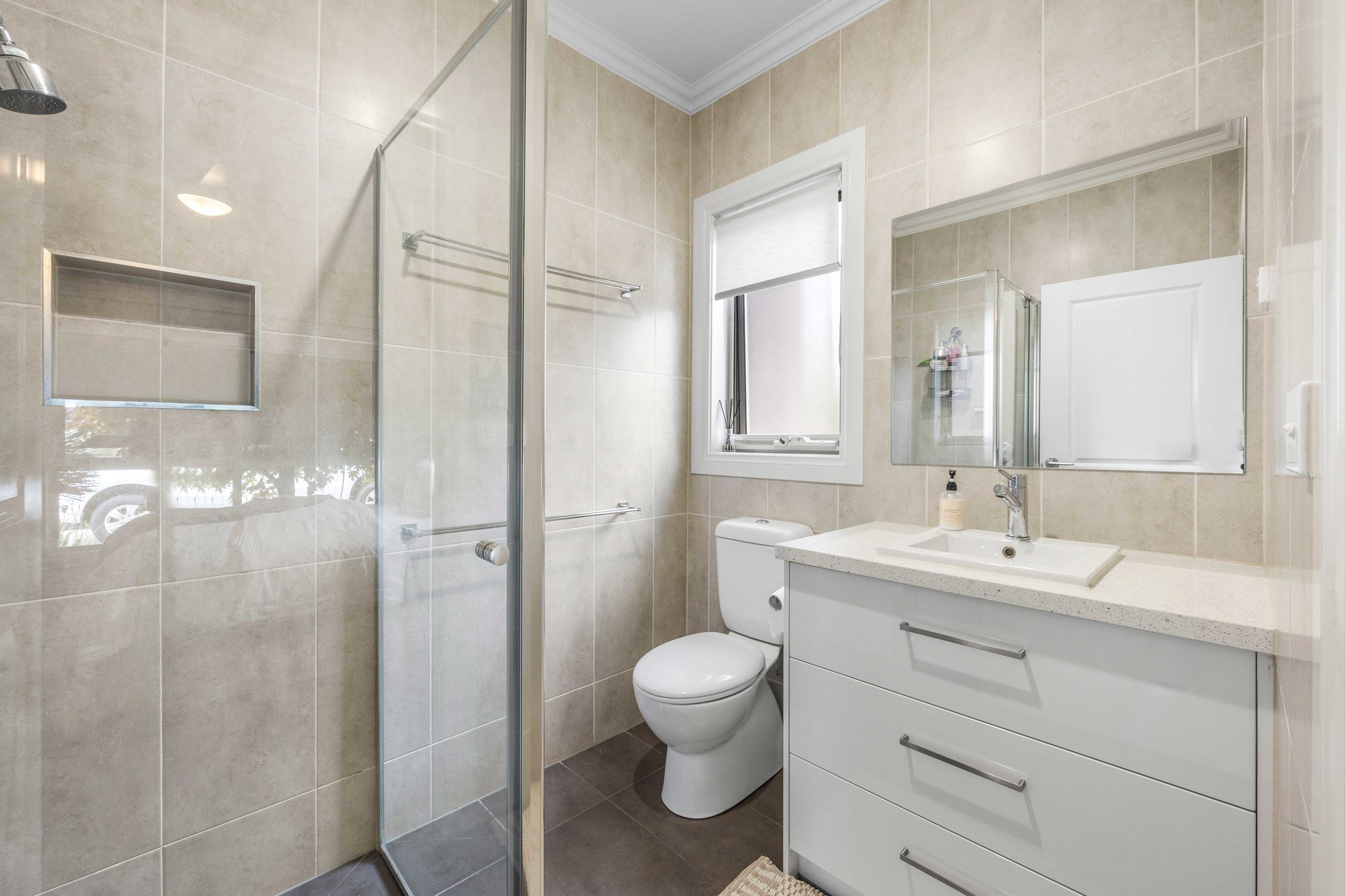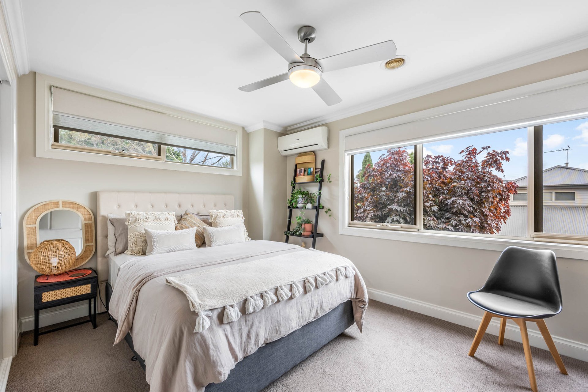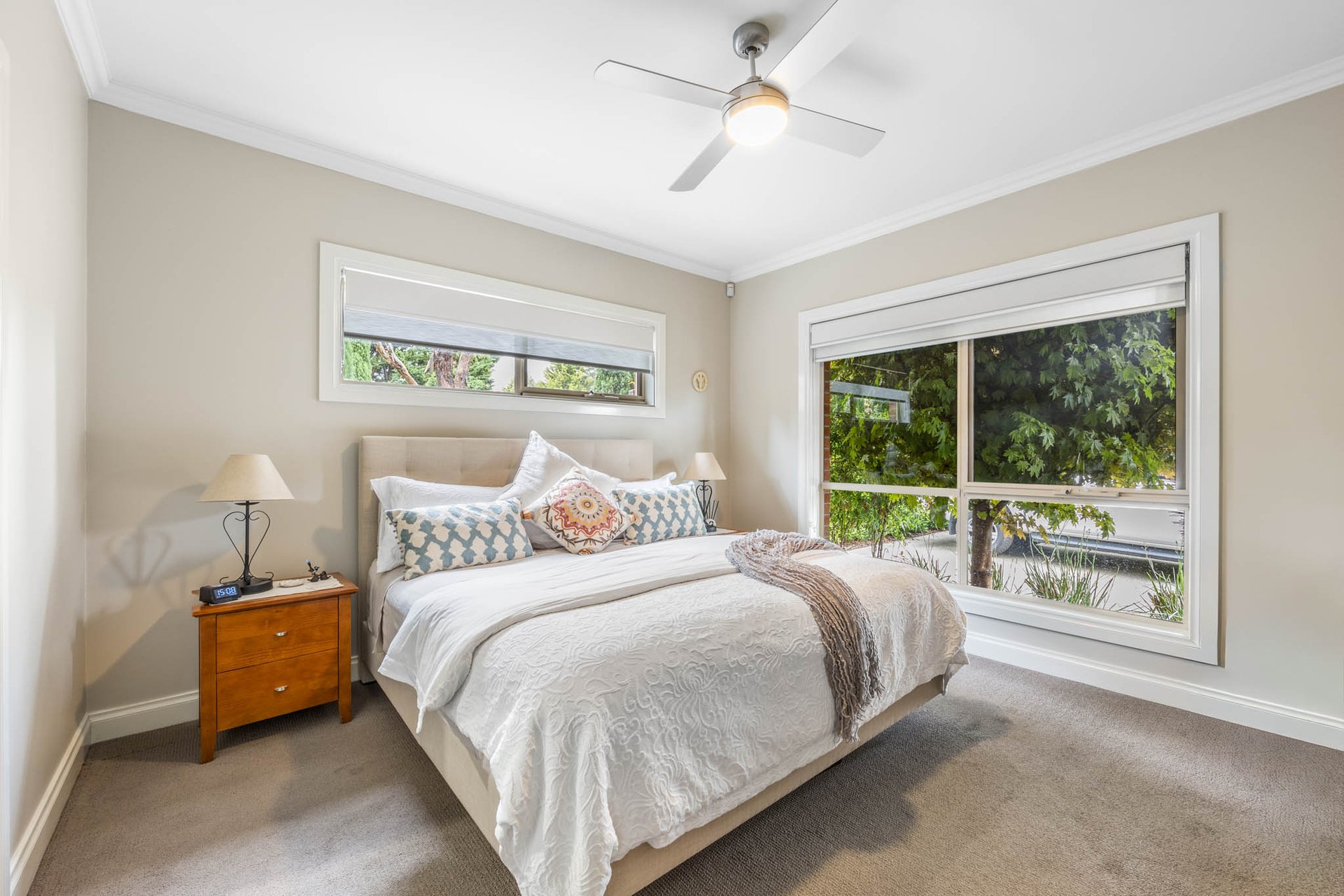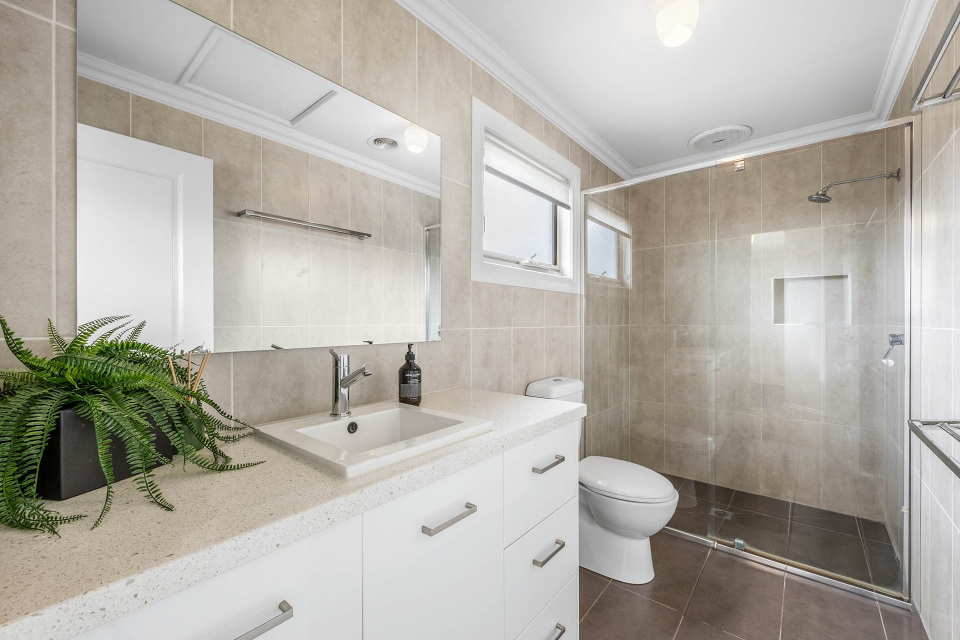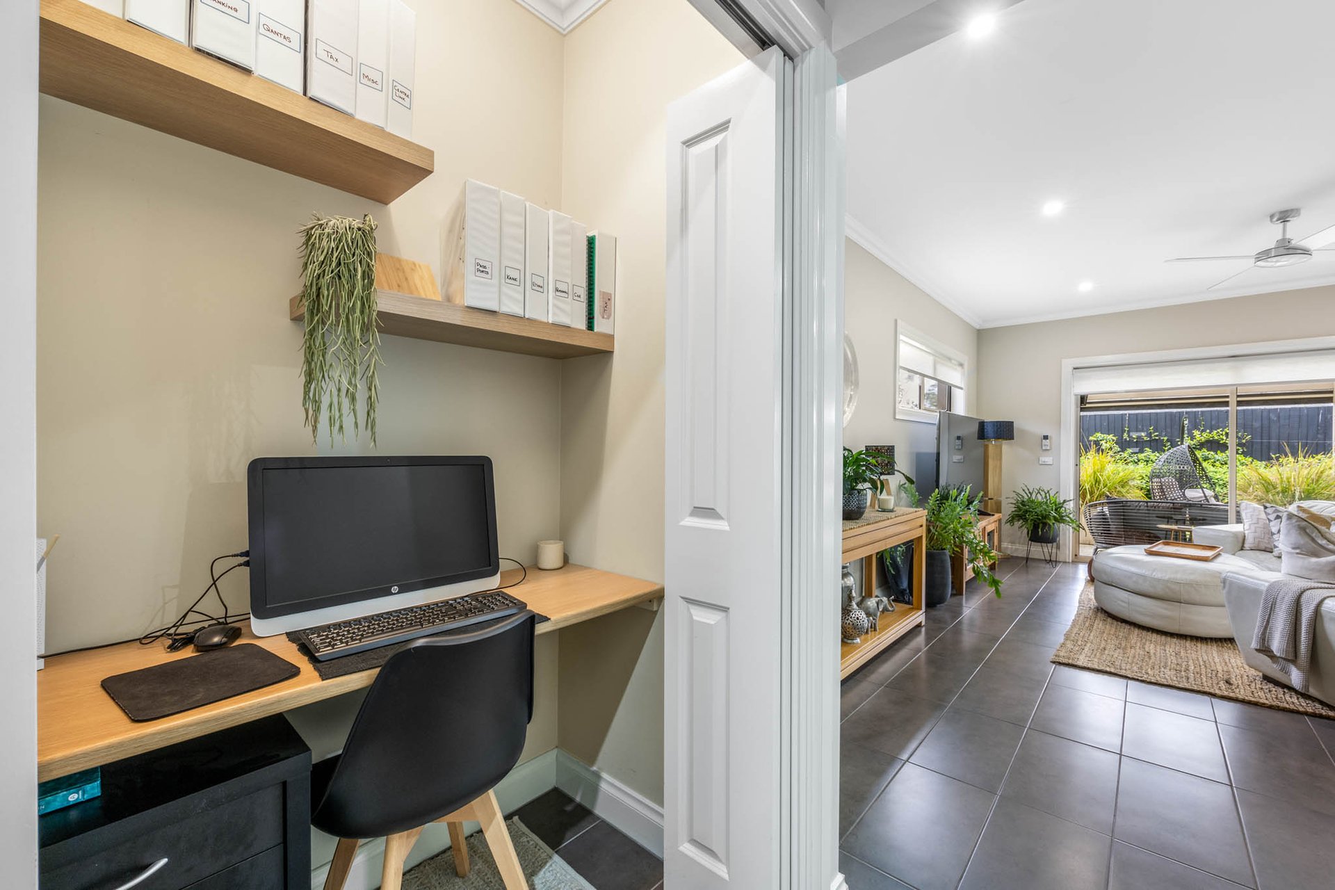 Accommodation is equally impressive with 3 carpeted bedrooms, headlined by a main bedroom boasting a walk-in robe, block-out blinds, and a shower ensuite. Remaining 2 bedrooms are served by a central bathroom featuring a large shower and a stone vanity, while a powder room and study alcove further elevate practicality.