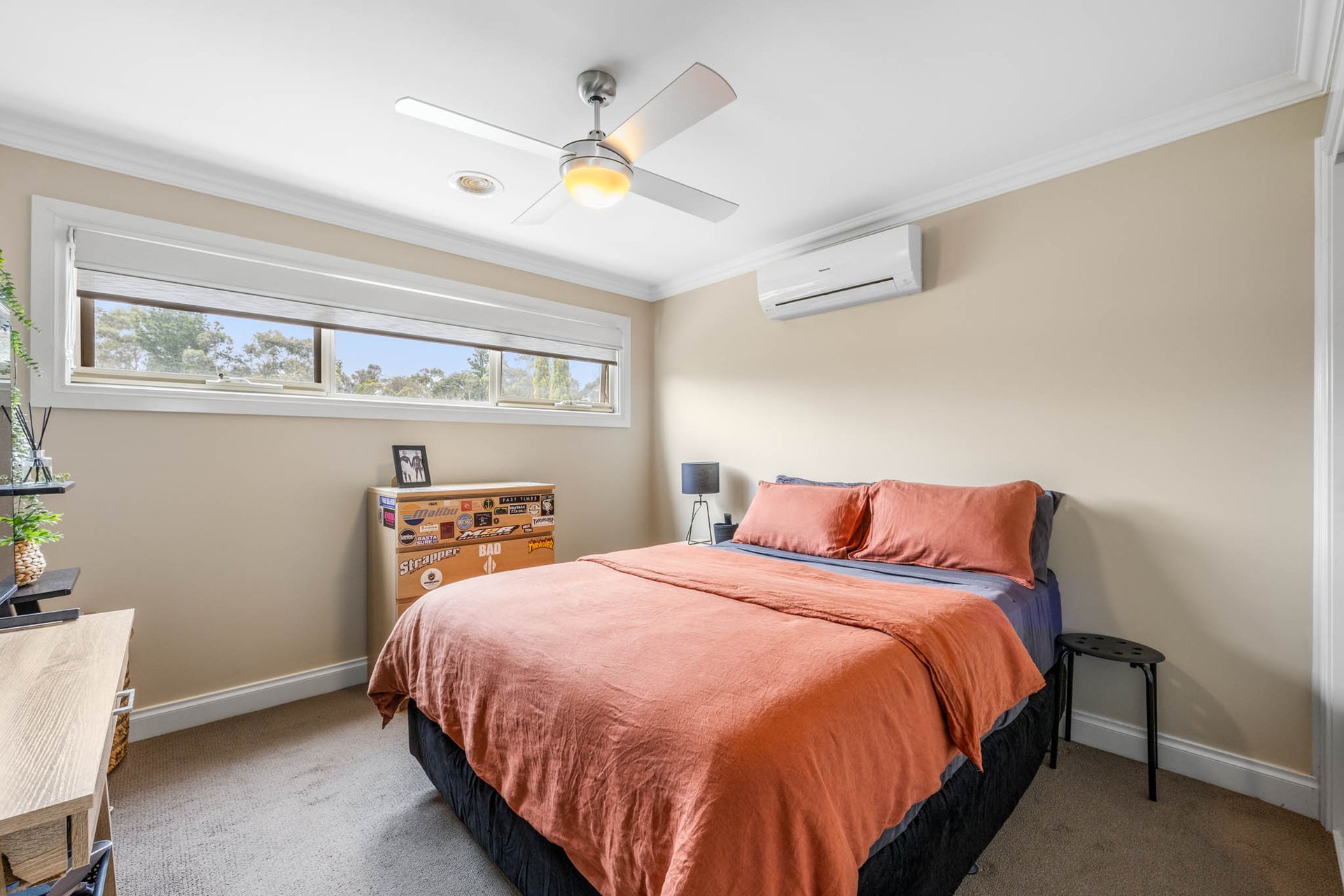 This move-in ready offering also includes an integrated double garage with storage cupboards and shelving, ducted heating, split systems throughout, an alarm system, and under-stair storage.