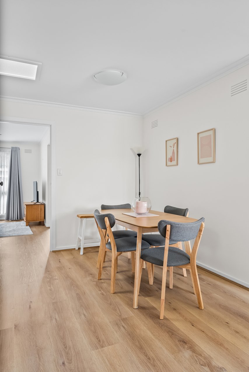 Cleverly enhanced for today with sparkling interiors and a versatile footprint, this delightful two bedroom villa sits in a coveted locale where culture and convenience unite to shape a thriving lifestyle. Move right in and enjoy exclusive Grice Crescent frontage with private driveway parking, while a timeless monochrome palette and stylish floorboards elevate the contemporary aesthetic inside. The spacious lounge flows to a dedicated dining zone, as the immaculate kitchen showcases stainlesssteel cooking appliances, ample cabinetry and a tiled splashback. What’s more, the carefree backyard can be easily styled for laid-back entertaining. The comfortable bedrooms, complete with built-in robes, accompany an ultra-modern bathroom. Further highlights comprise ducted heating, an internal laundry, a handy storage shed and lock-up garage. A perfect opportunity for enthusiastic starters, young couples, downsizers or investors looking to capitalise on a blue-chip address just 8km approx. to the iconic CBD, with nearby Mt Alexander Road trams, Essendon Station and quick freeway access ensuring an effortless commute. It’s moments to Keilor Road’s culinary/retail hotspots, North Essendon Village, Lincoln/Allison Parks, Windy Hill and childcare.