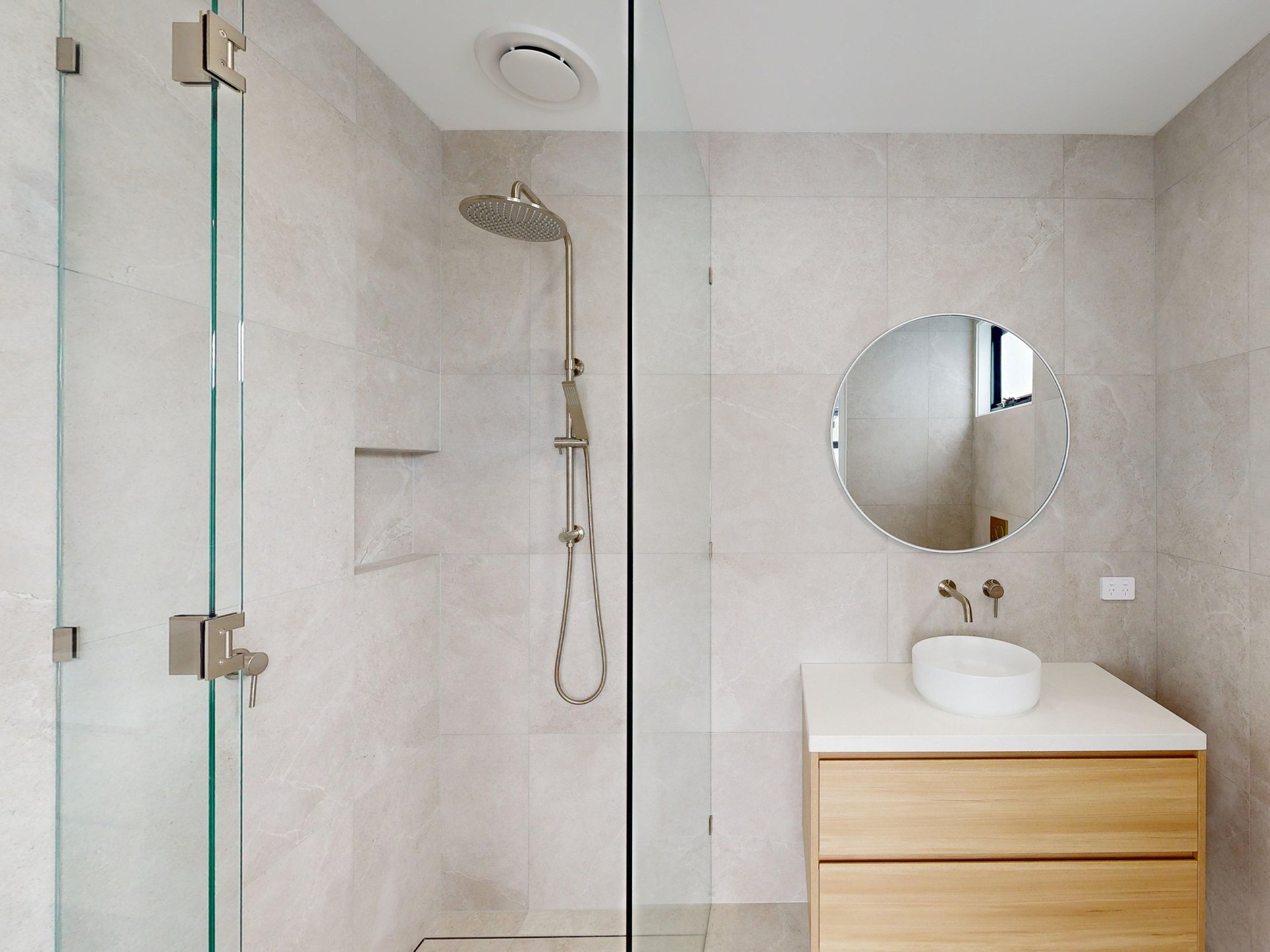 Downstairs, a light-filled open plan living and dining area is complemented by a gourmet kitchen with walk-in pantry and quality appliances (Electric Stove Top). A guest bedroom with walk-in robe and private ensuite, along with access to a private courtyard, adds flexibility and appeal. Upstairs includes a family retreat or study area, a well-appointed master suite with walk-in robe and ensuite, two additional bedrooms (one with its own ensuite), and a central bathroom.