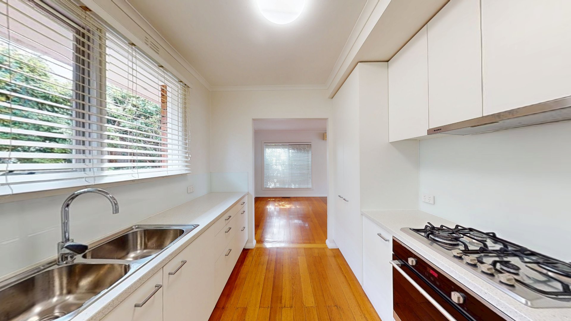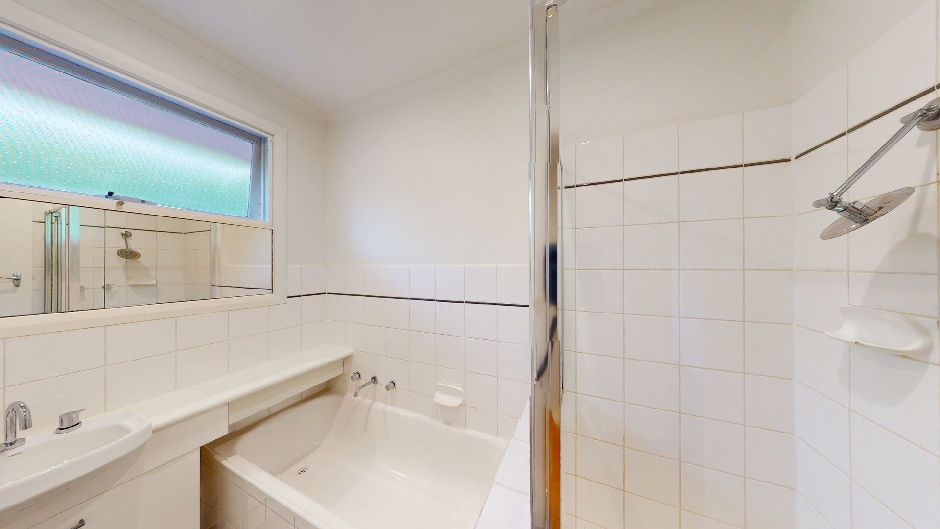 Accommodation includes a generously sized master bedroom and a spacious second bedroom, both fitted with built in robes, along with a versatile third bedroom or study. The updated central bathroom offers a separate shower, bath, and toilet, while a separate laundry provides additional storage.