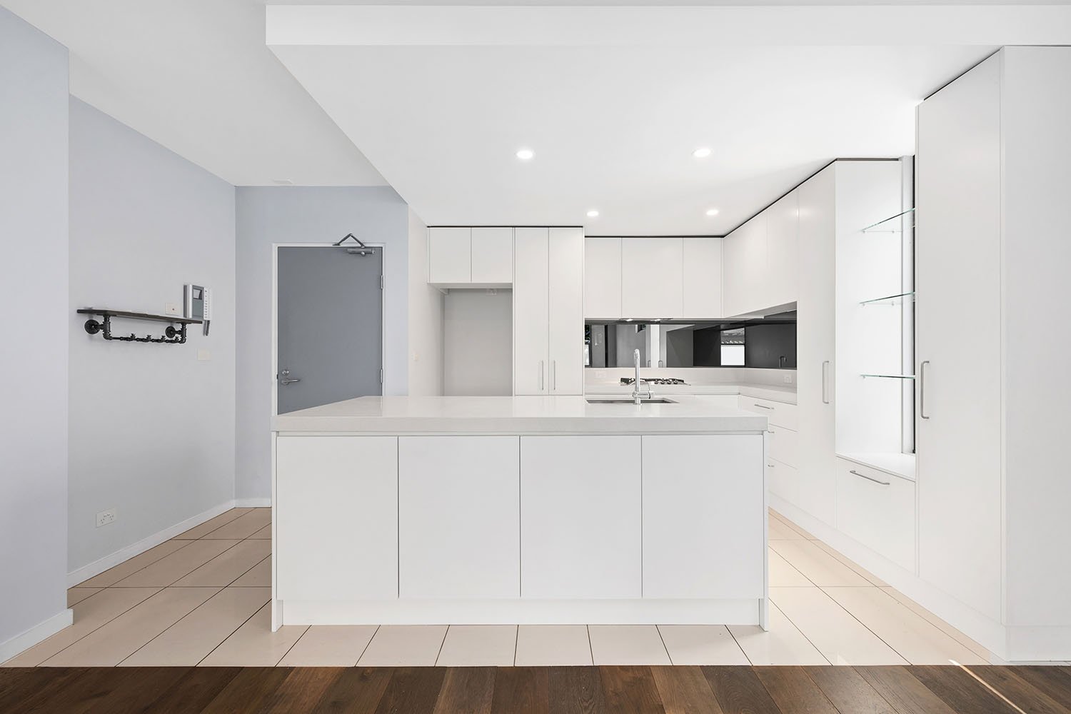 Located quietly at the rear of the first floor, it offers a lift, and stairwell access. The gourmet kitchen is beautifully designed and equipped with Miele appliances including a dishwasher, gas and electric cooking. There is ample space on the stone island bench and extensive floor to ceiling cabinetry.