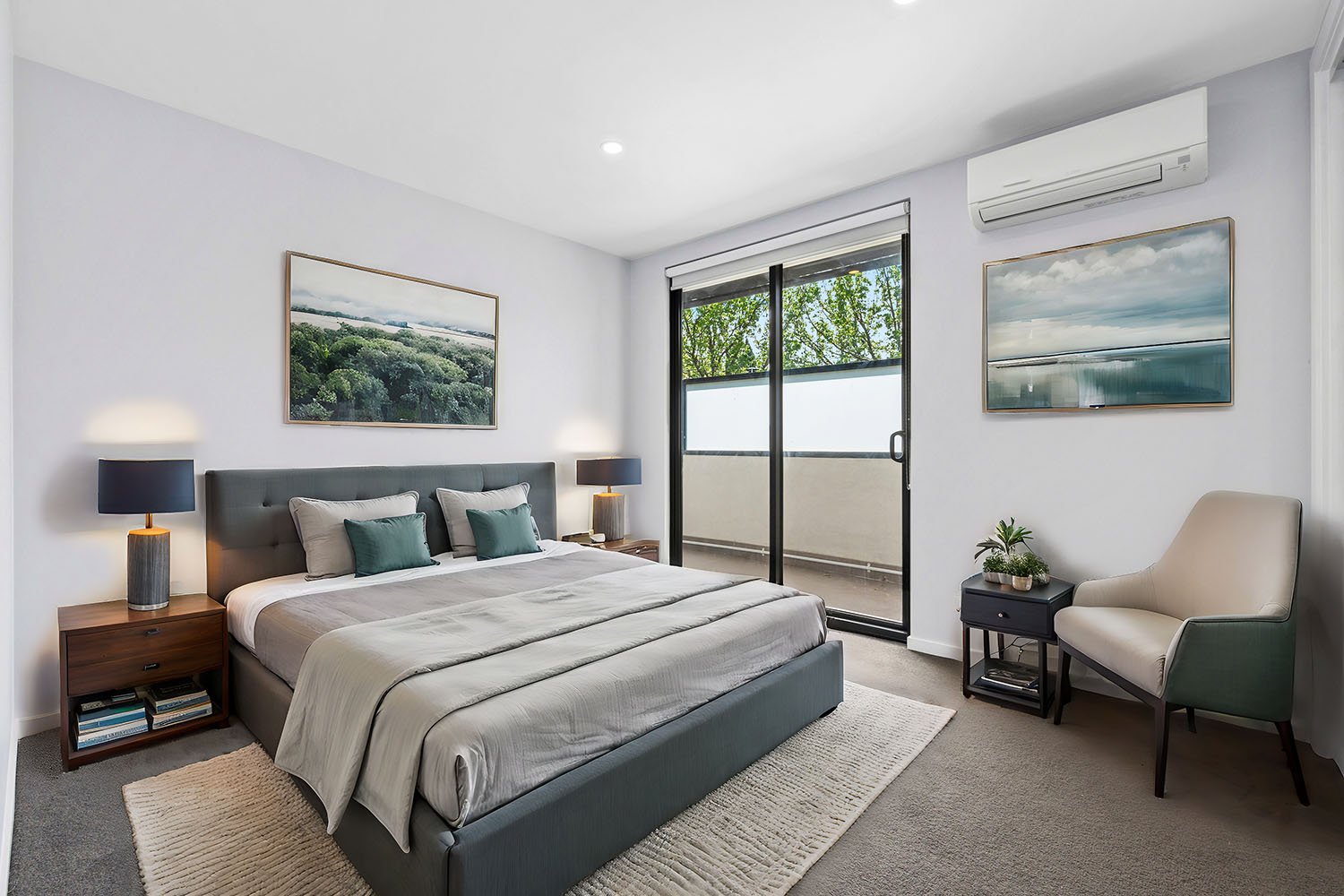 Two carpeted bedrooms each with built-in wardrobes and split system heating and cooling assure comfort all year round. Primary bedroom also enjoys direct access to balcony and large shower ensuite.