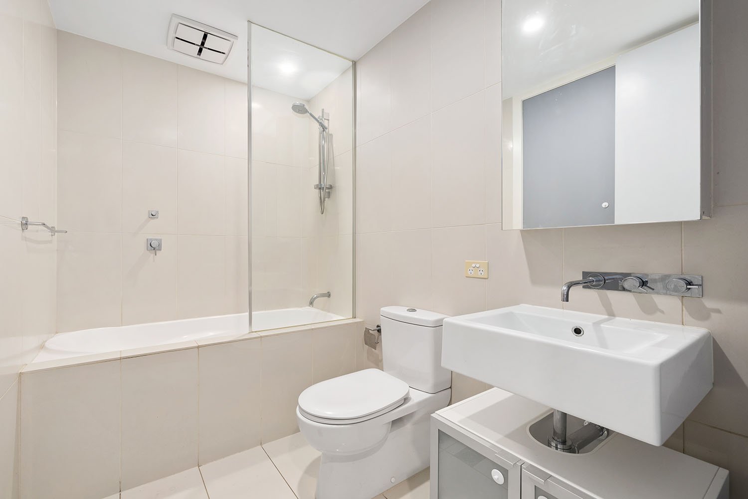 The main bathroom enjoys a rainhead shower over a deep full bath for soaking hours and laundry tucked behind concertina doors.