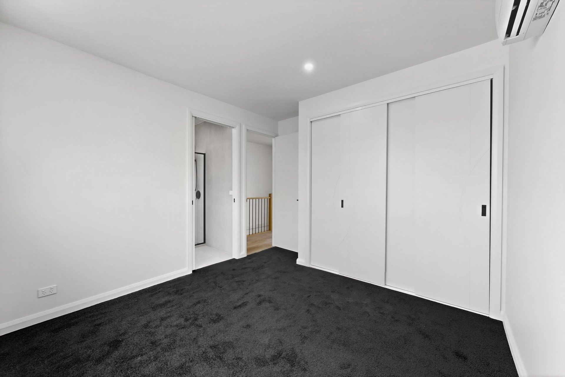 The second bedroom is also located on the upper level and features built-in robes and its own ensuite, offering flexibility for shared living, guests or working from home, with both bedrooms enjoying excellent separation across the two floors. Additional features include split system heating and cooling, modern bathrooms with quality fixtures, timber flooring to living areas, carpeted bedrooms, excellent natural light and a low-maintenance design throughout.