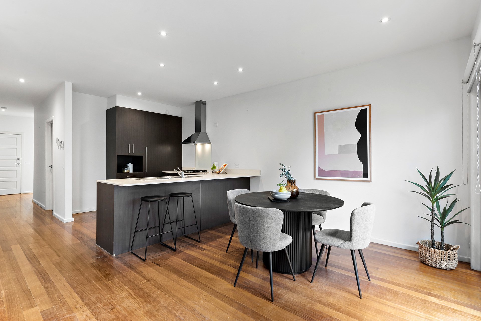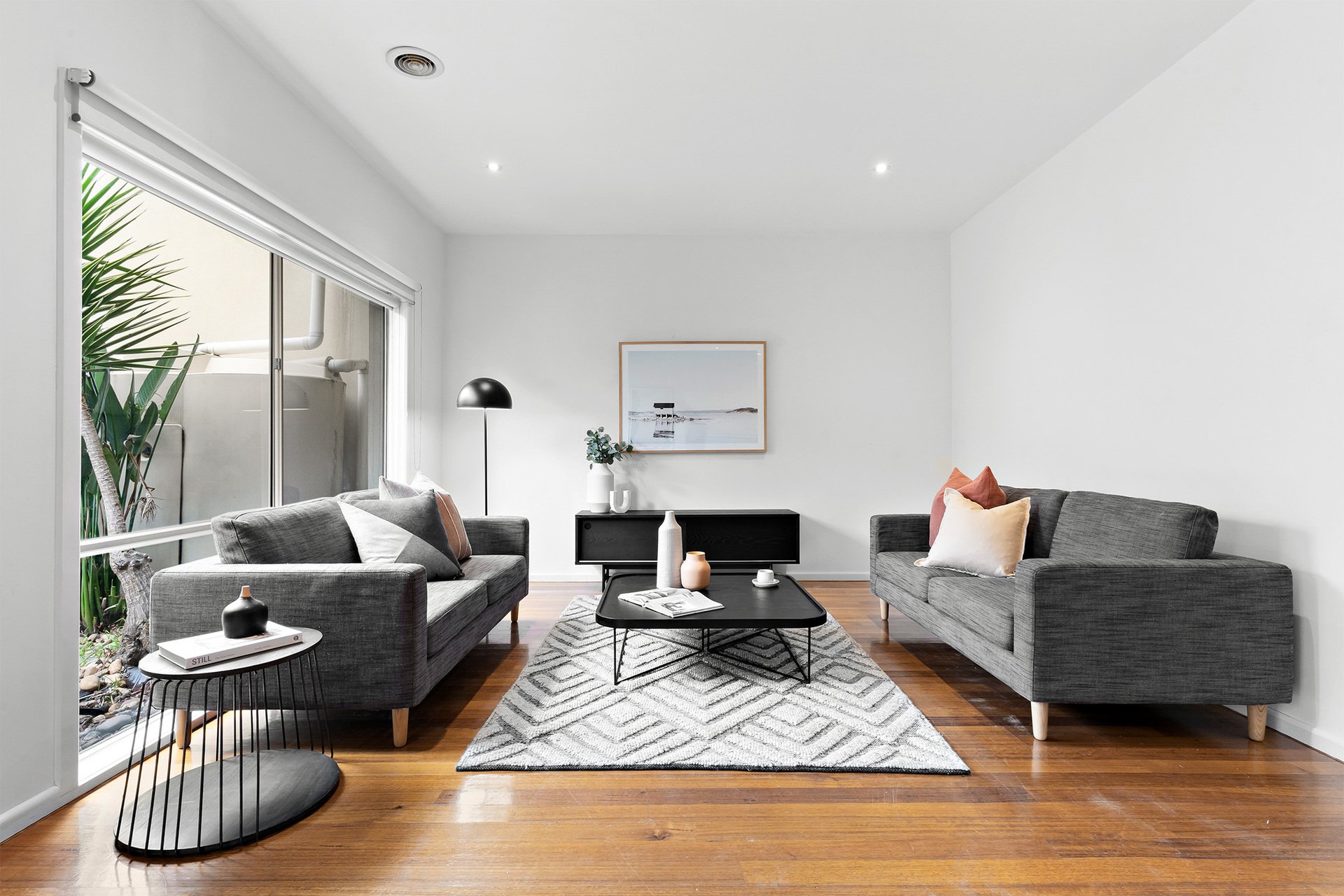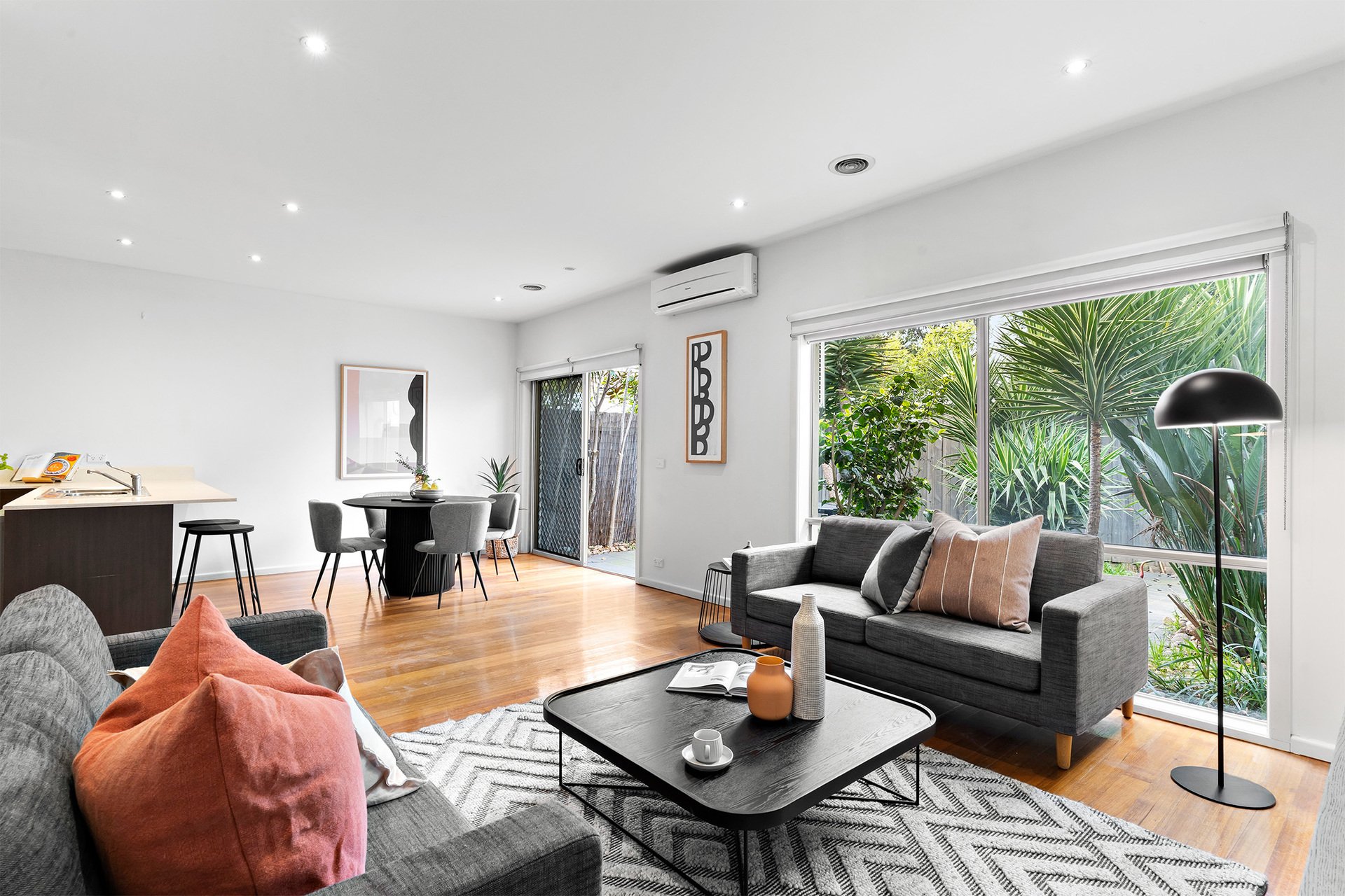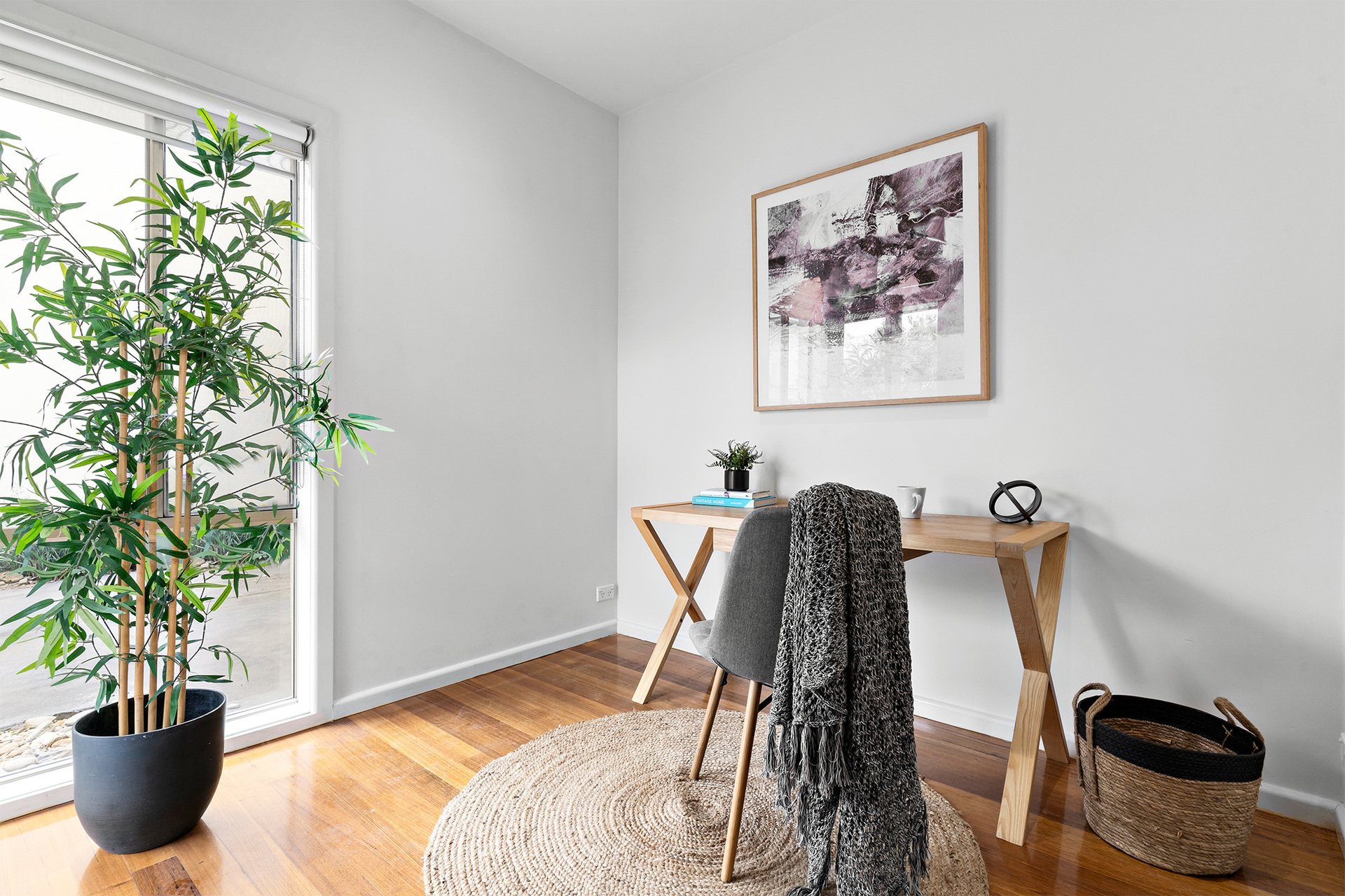 The dual level dimensions of this inviting townhouse offer modern comfort, character and convenience – all elements that ensure its appeal as an address and as an investment. The story starts downstairs where timber floorboards define a format featuring a dedicated study or work from home zone. To the rear, a separate, spacious living/dining area is defined by its own timber floorboards and an open-plan kitchen with stone benches, stainless steel appliances and designer storage while outlooks over a landscaped courtyard create a great visual accompaniment. 2 double bedrooms share the upstairs level with a central bathroom that's desirable in both size and style. Ducted heating, split system cooling units, a secure garage and 2100L water tank further enhance a home that offers quick, convenient access to the Federation Trail, Brooklyn Reserve, Annunciation Primary School and Altona Gate Shopping Centre.
