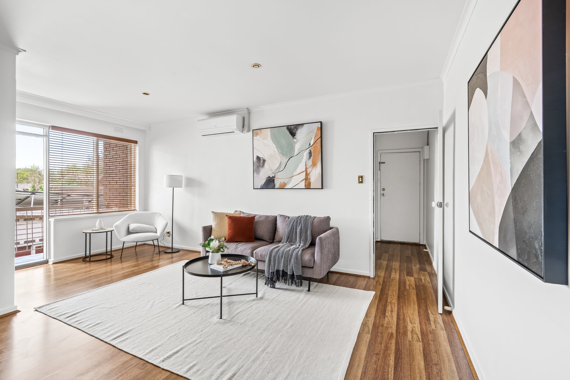 Offering a perfect blend of space, style and functionality, this two bedroom apartment boasting a 73m2 (approx.) footprint showcases light-filled interiors in a premier lifestyle location. One in a well-maintained block of only eight, and featuring crisp white walls and warm engineered timber floors throughout, it is move-in ready and surrounded by a fabulous range of amenities that make this location so coveted.