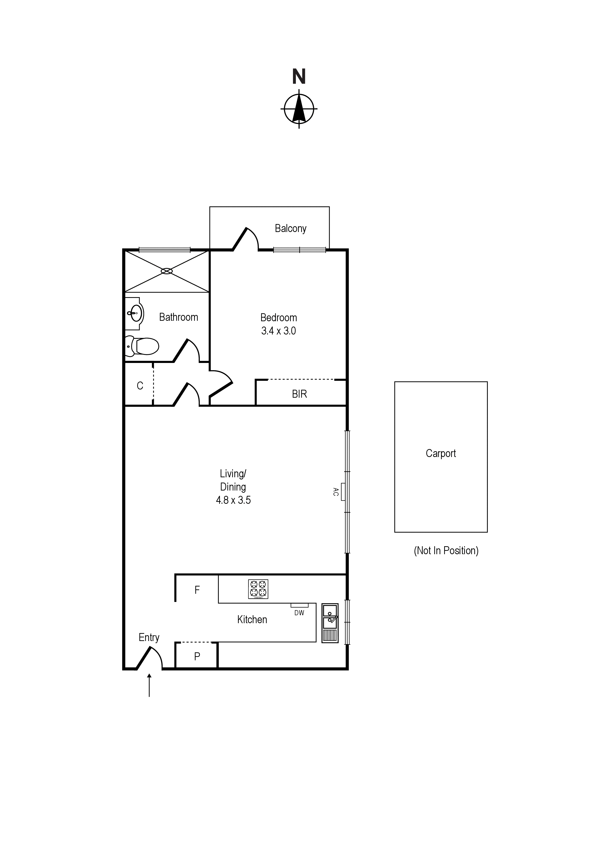 Fresh and contemporary, the accommodation features crisp white walls and plush carpet through the open plan living and dining room which boasts an oversized window framing a leafy view. Further on, the kitchen is a bright & practical space, while it is the generous double bedroom (BIRs) that enjoys warm breezes thanks to balcony access.