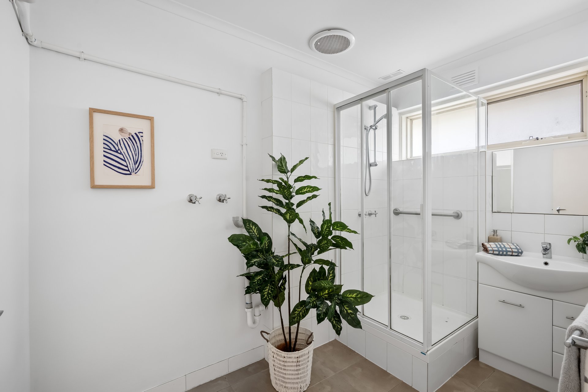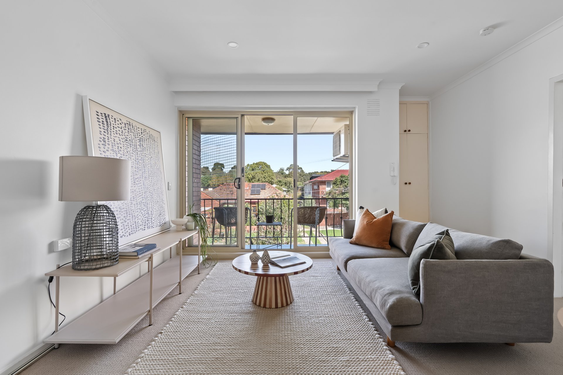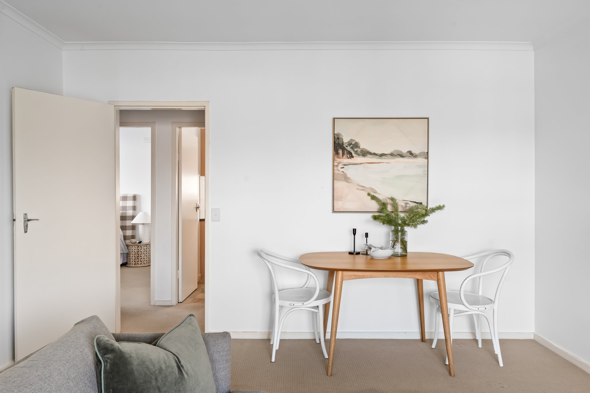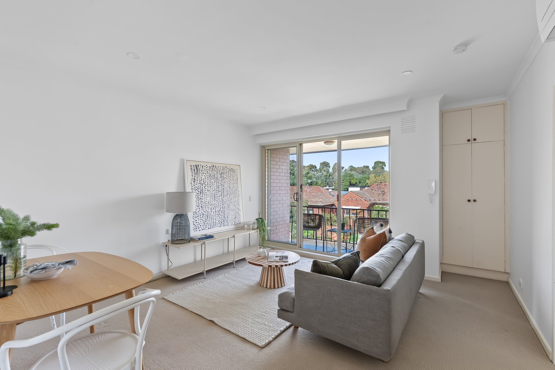 Impressive 60s proportions and manicured surroundings underpin the clean-lined styling of this neat opening that features leafy views from every aspect, with a large living room flowing to a view from the balcony, Fisher&Paykel appointed kitchen, bedrooms with robes, and bright bathroom that includes laundry facilities.