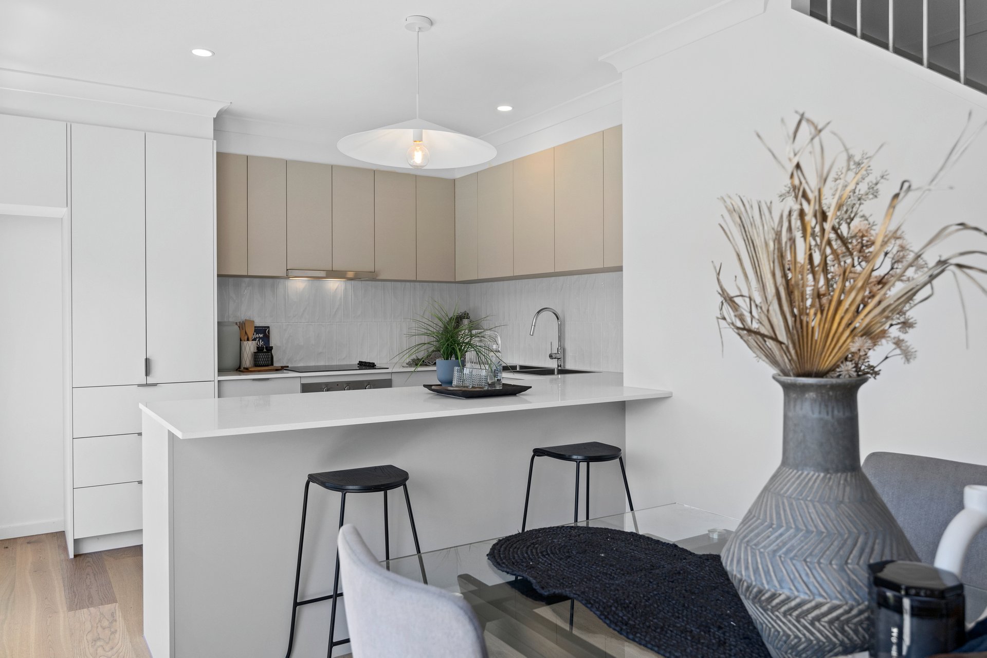 Radiating with style from top to toe, the home welcomes you into its bright interiors via the lounge and dining area drawing your attention to the kitchen that forms the backdrop. Presenting a neutral colour scheme and sleek lines with tiled splash back, stone benches, breakfast bar and stainless-steel appliances. A great area to congregate daily or for entertaining with easy connectivity to the dining area and outside to the paved alfresco area via sliding doors. Continuing on the lower level, is the dedicated laundry, powder room and internal access from the extra-large double garage with extra storage space.