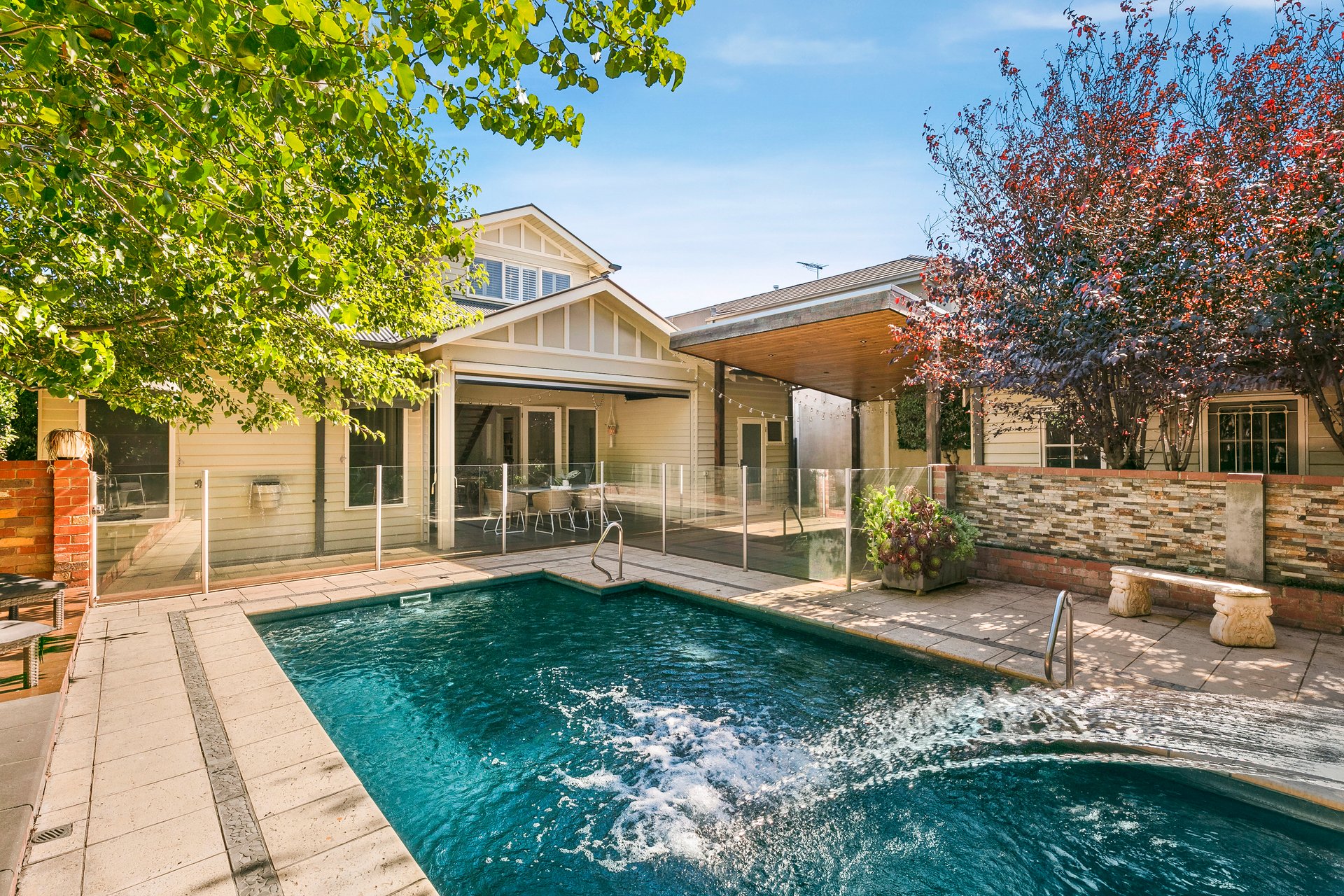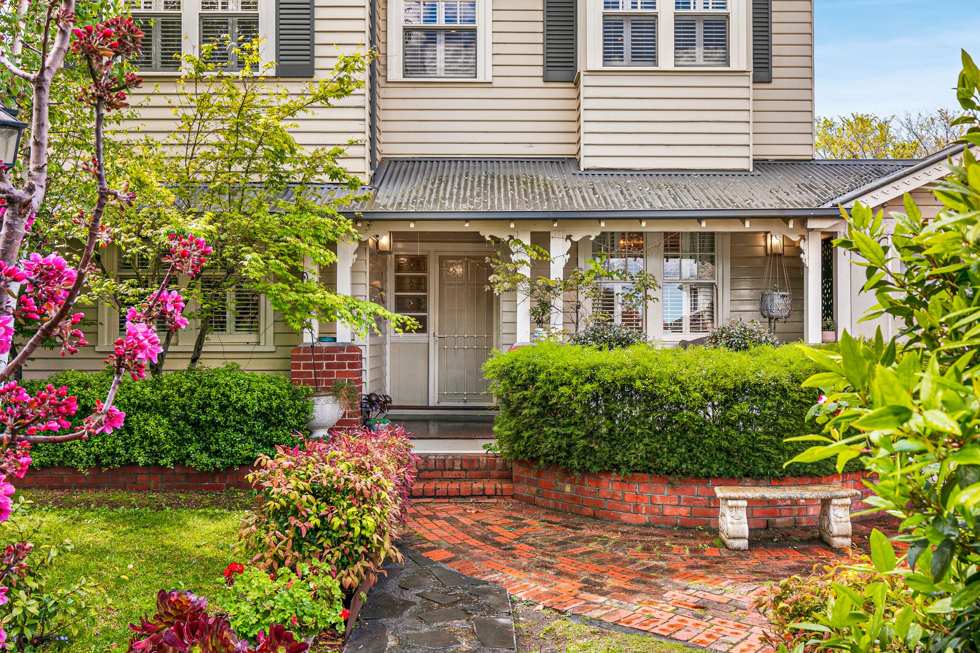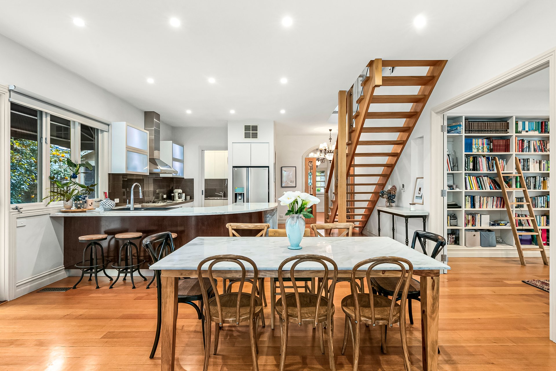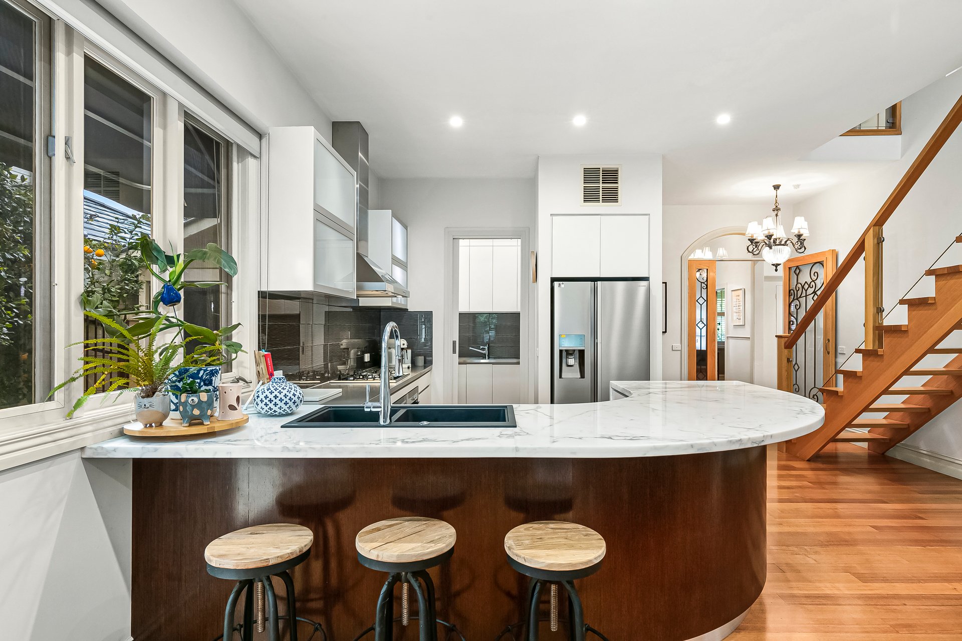 Elevating family living far beyond the everyday, this superbly situated Hamptons style home is geared towards effortless entertaining and embodies exceptional accommodation with five bedrooms, a studio and study/home office. Compelling from first glance, the home begins with a formal living room before progressing to a spectacular kitchen/dining showcasing waterfall marble, quality appliances and a butler’s pantry. A family room beckons with an atmospheric gas log fire, while an optimal northerly rear aspect, exceptional deck and solar heated pool will make entertaining a delight. A tempting array of open and covered outdoor spaces includes an alfresco and paved side courtyard, with much of the generous deck forming a haven. Three bathrooms include a dual entry ensuite, while a long list of further highlights incorporates city glimpses, elegant fixtures including parquetry and chandeliers, heating, cooling an automatic carport and electric gate. Set in an esteemed locale zoned to Strathmore College, nestled among a wide selection of amenities, it’s destined for a discerning family.