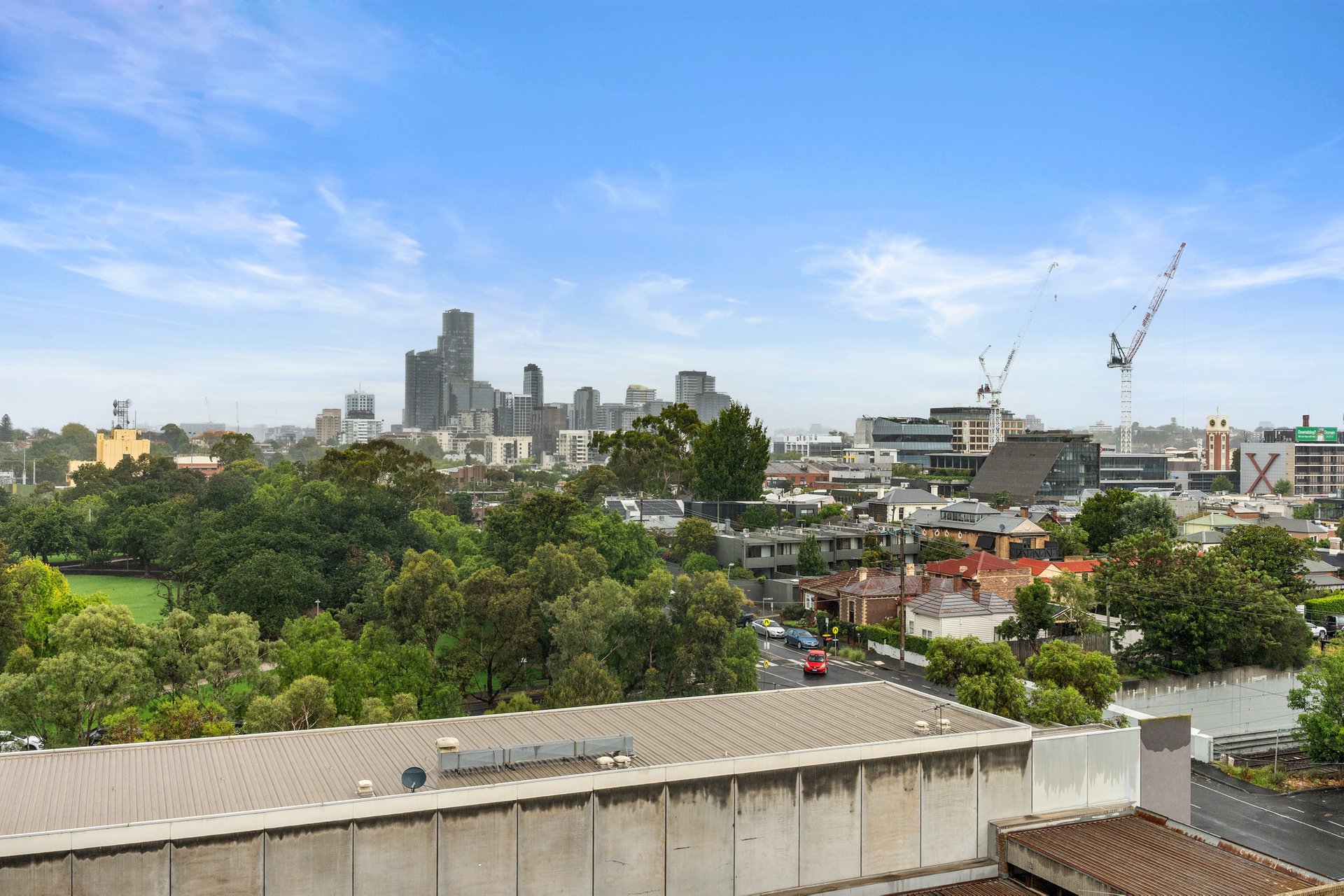 The open plan living and dining zone is filled with natural light and extends to a generous south-west facing balcony with a stunning view of the South Yarra skyline — an inviting space for entertaining or enjoying a quiet moment outdoors. The spacious bedroom is carpeted for comfort and has extensive mirrored built-in robes and direct balcony access, enhancing the sense of space and connection.