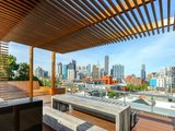 Additional features include secure entry, one car stacker space, heating and cooling, sleek black granite benchtops, and exclusive access to the residents’ rooftop deck on the 7th floor, complete with BBQ facilities and sweeping views.