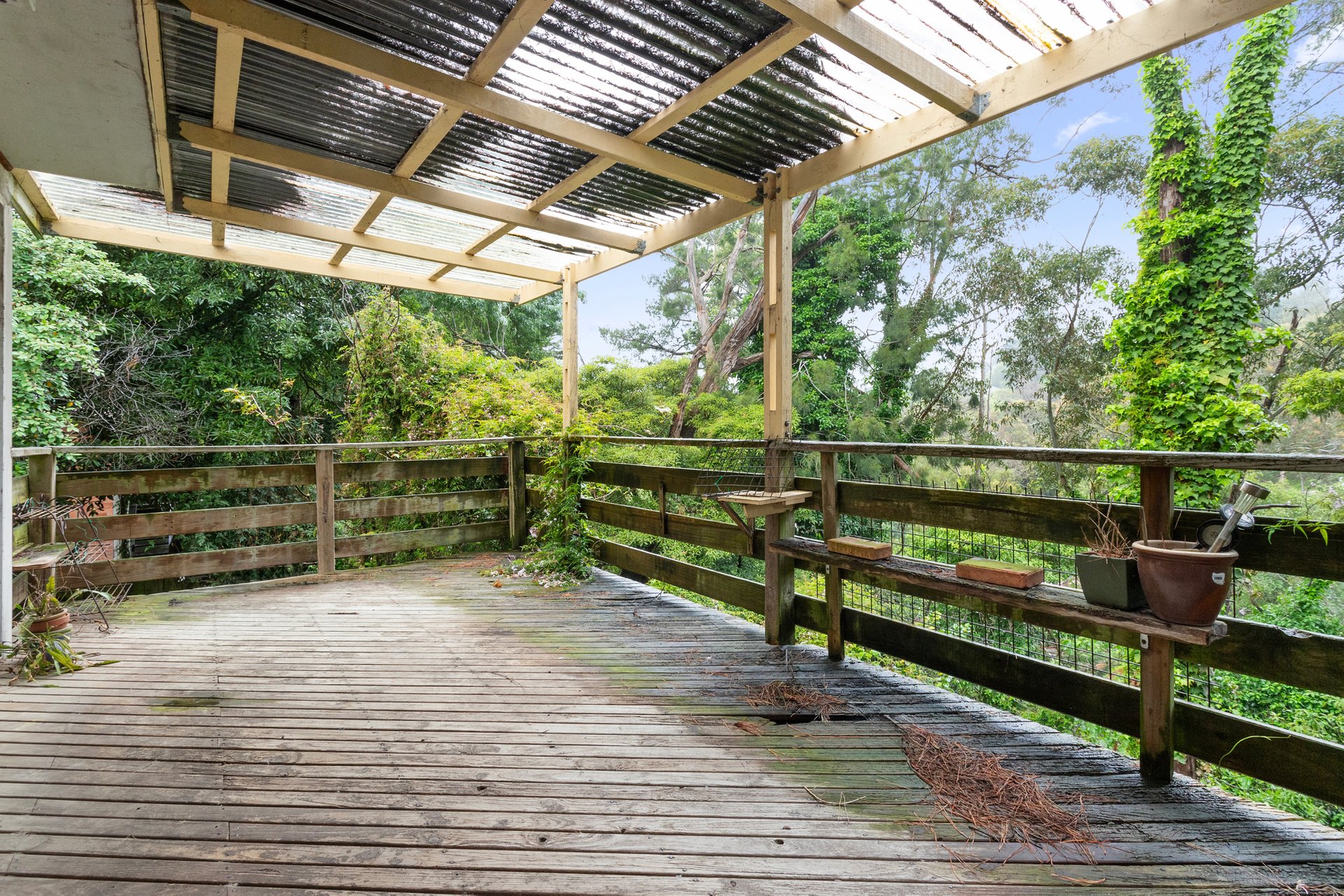 Hidden in a lush green embrace, an exciting opportunity awaits someone with vision who is willing to take on a project.