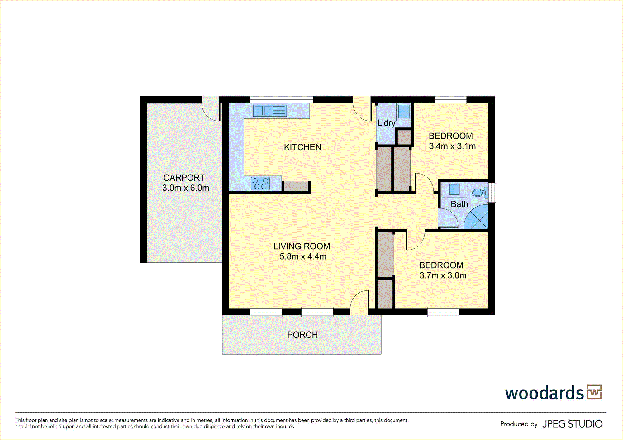 Both bedrooms feature built-in robes, while the bathroom offers a shower, corner vanity, and toilet. The laundry provides under-bench storage and a linen cupboard for added practicality. Outside, a fully fenced backyard is well-proportioned and complemented by a single carport plus guest parking.