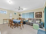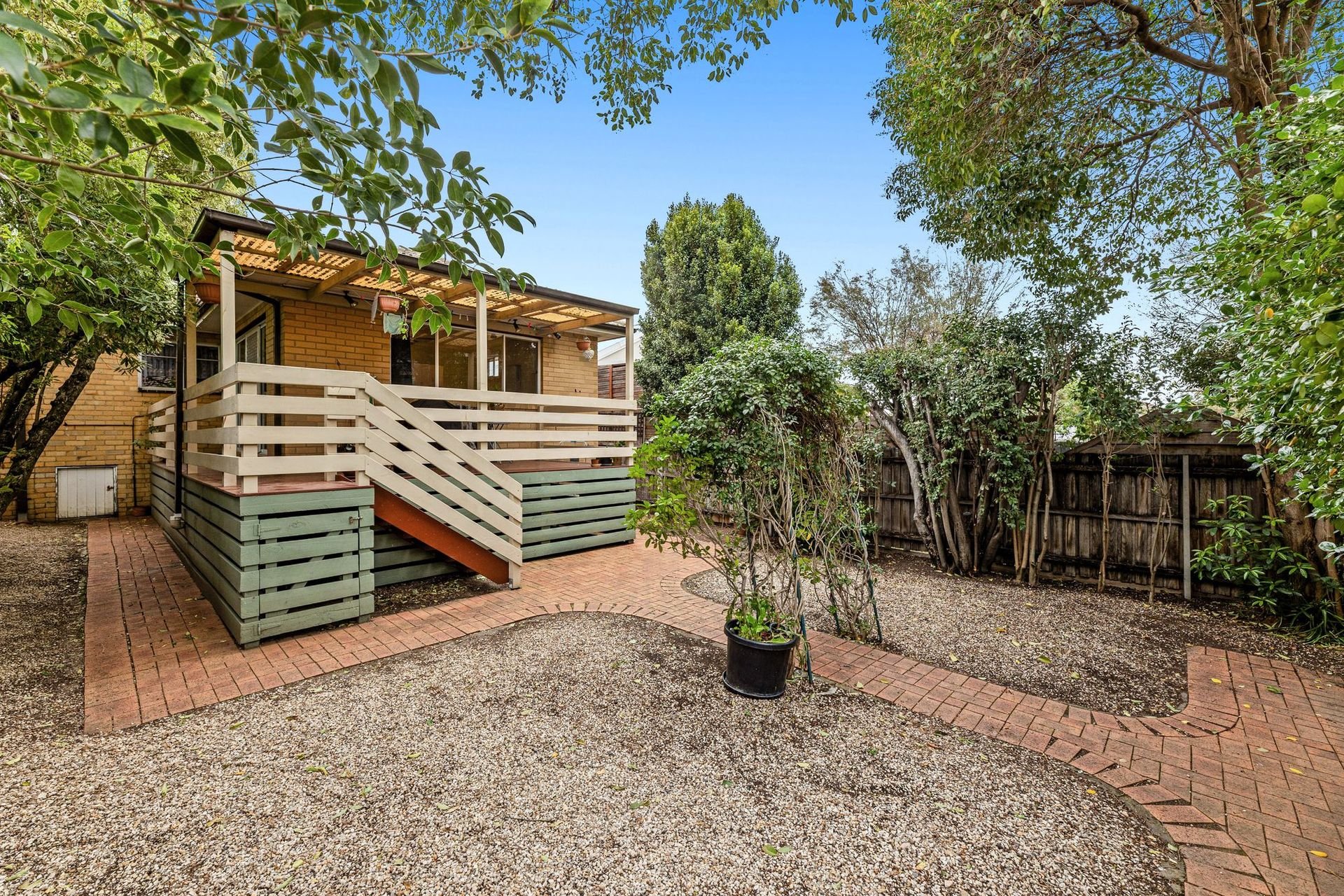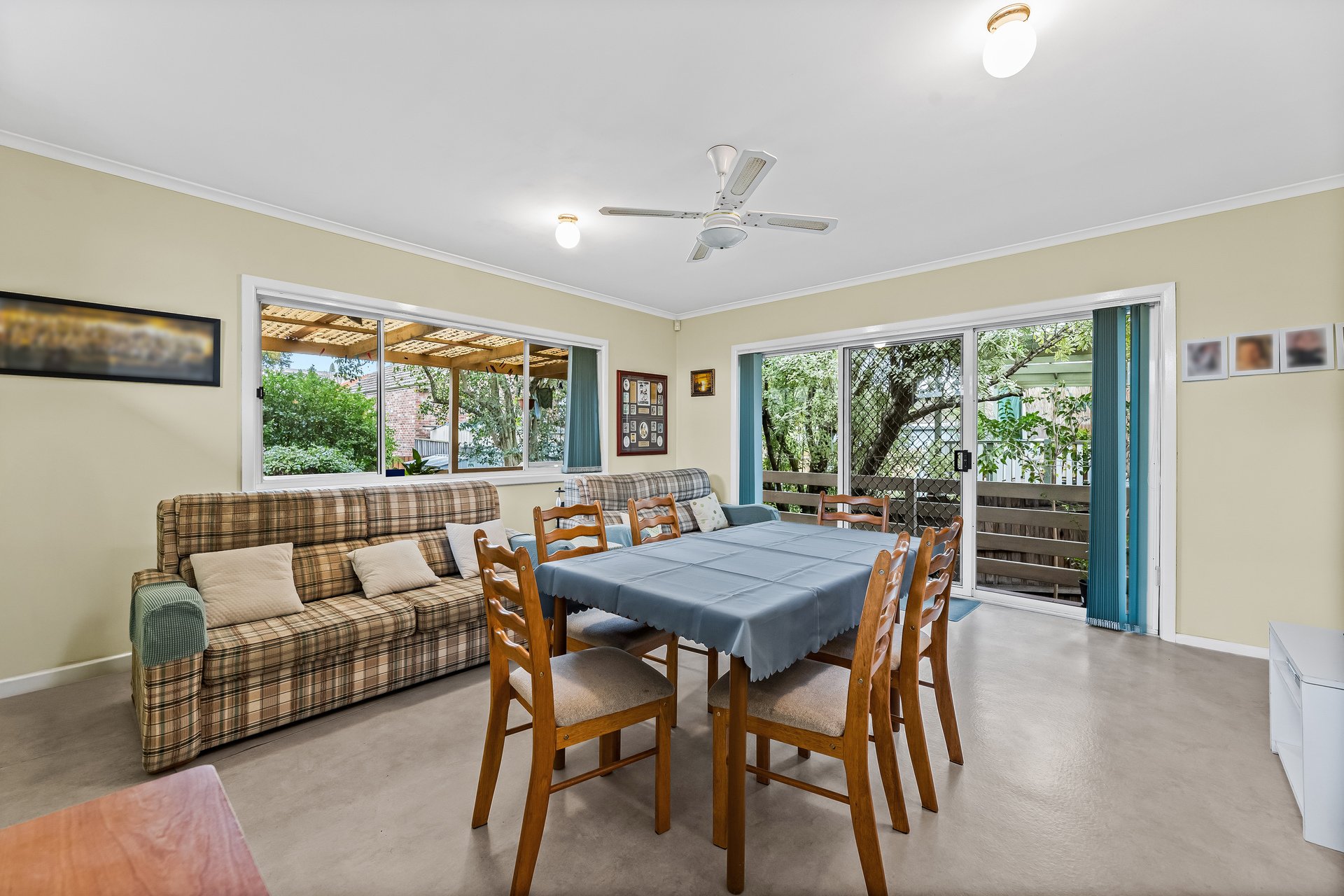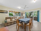 The light filled spacious family/dining room features extra storage cabinets located underneath the bench top servery window. Convenient sliding door access from the family/dining room, leads to an undercover entertainer's timber deck & pergola that sets the scene for relaxed gatherings in an outdoor setting. The stairway from the elevated deck, reveals a paved patio & walkways that sit amongst a pet-friendly backyard, beneath the leafy shade of established trees. A utility shed as well as under-house storage add practical appeal.to the private backyard area of the property.