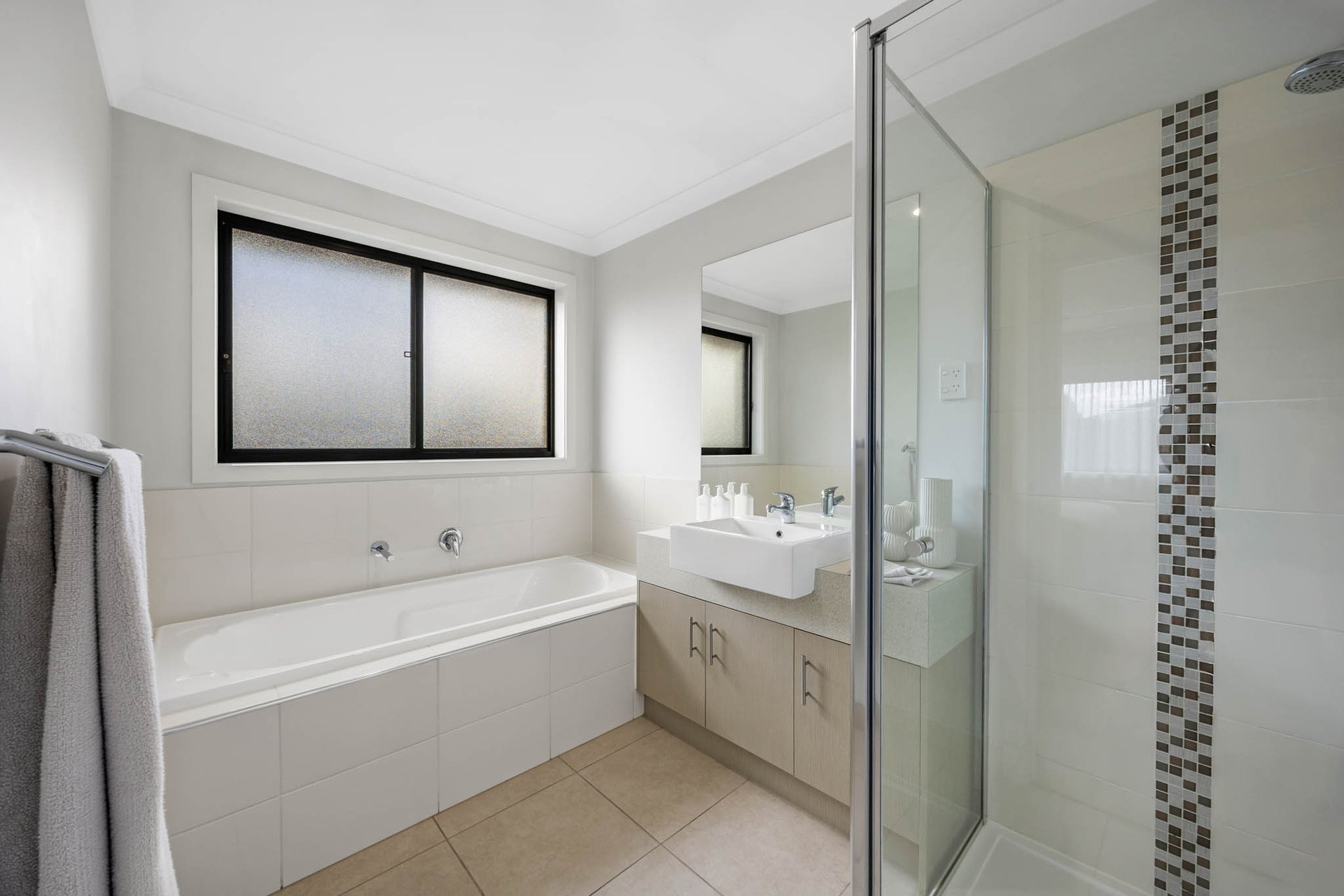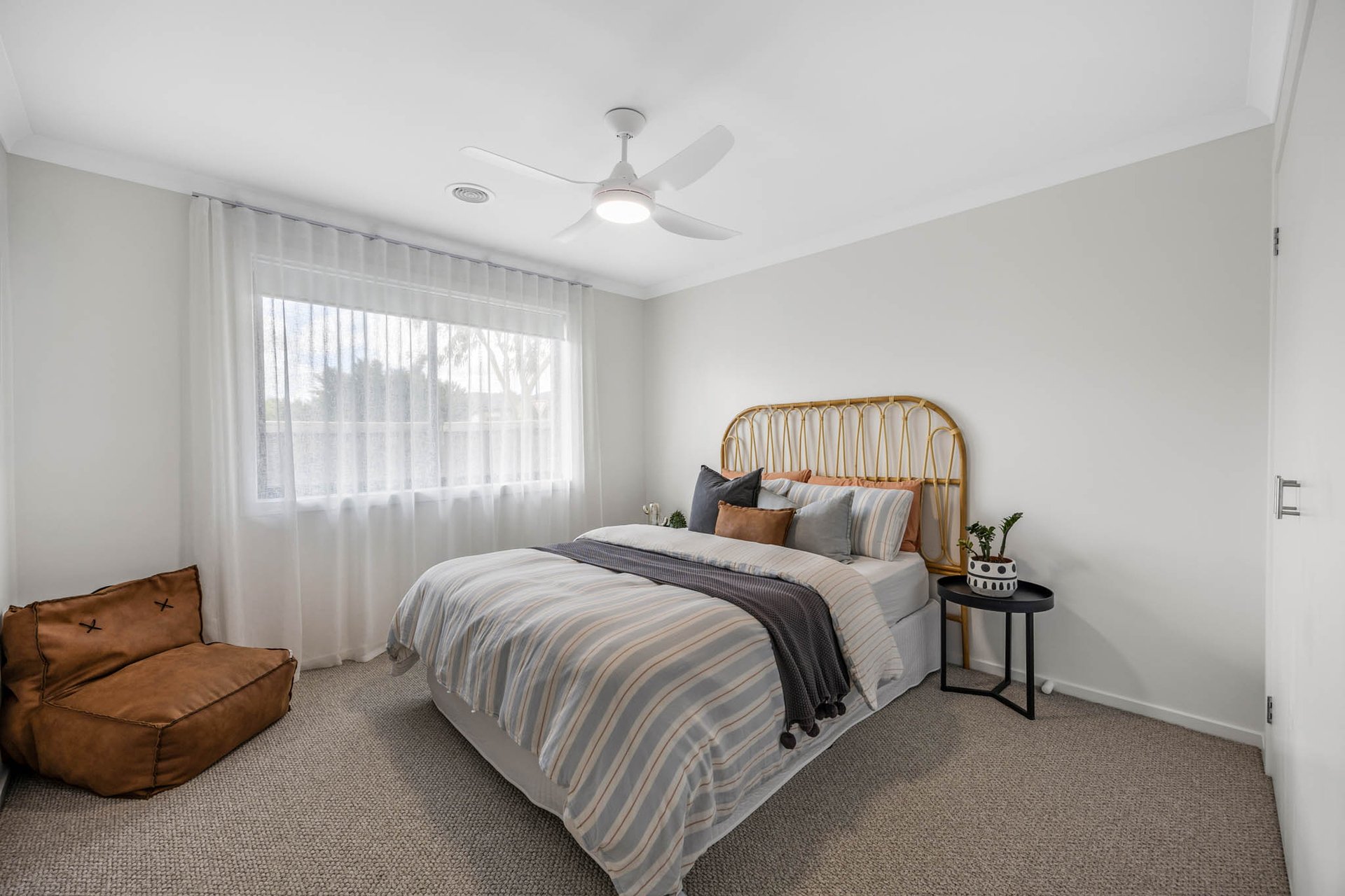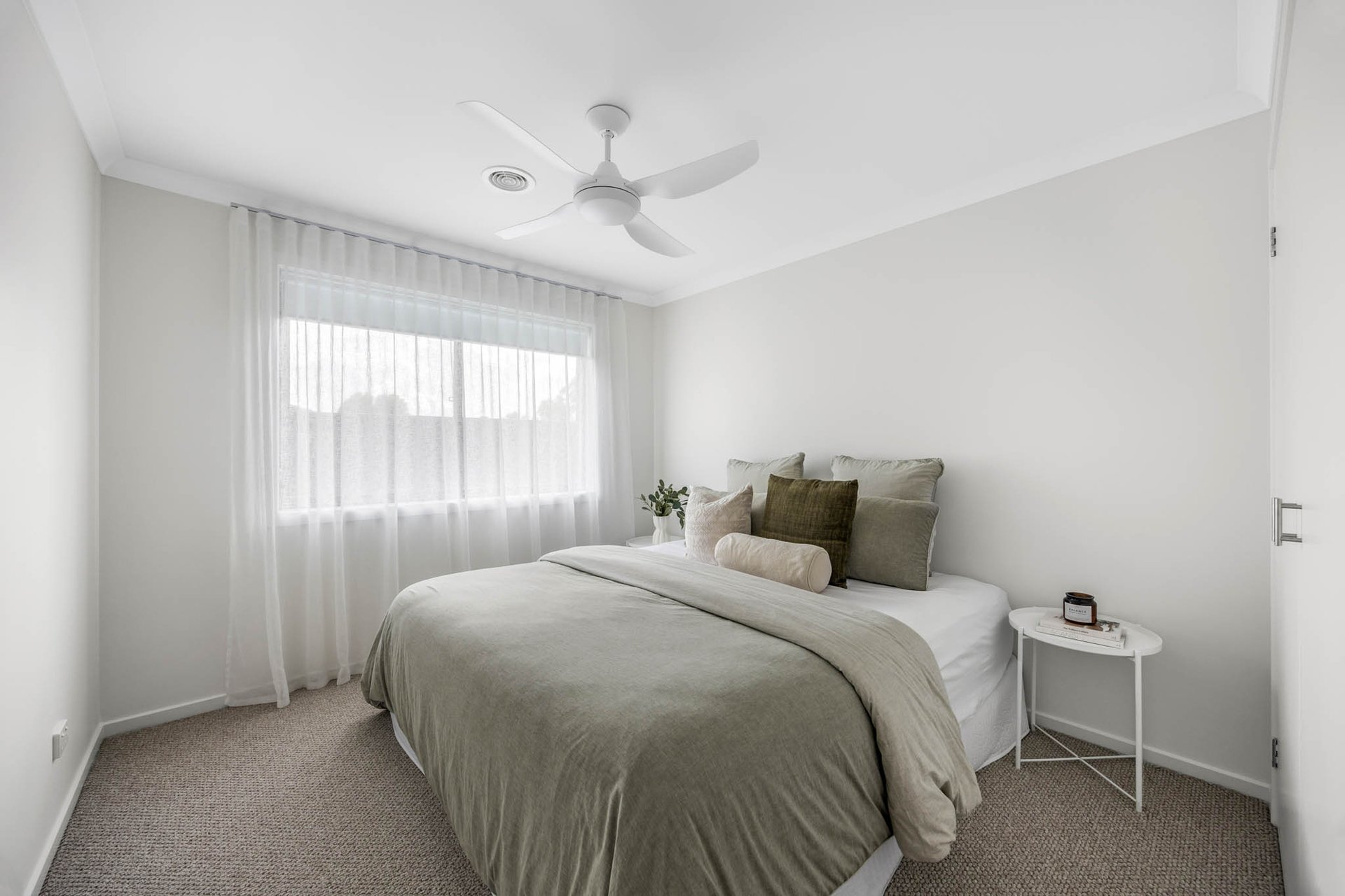 Accommodation is thoughtfully arranged: a frontage main suite offers a walk-in robe and a sparkling modern ensuite, while three oversized, robed bedrooms enjoy a central bathroom with a shower and bath; a powder room enhances day-to-day ease.