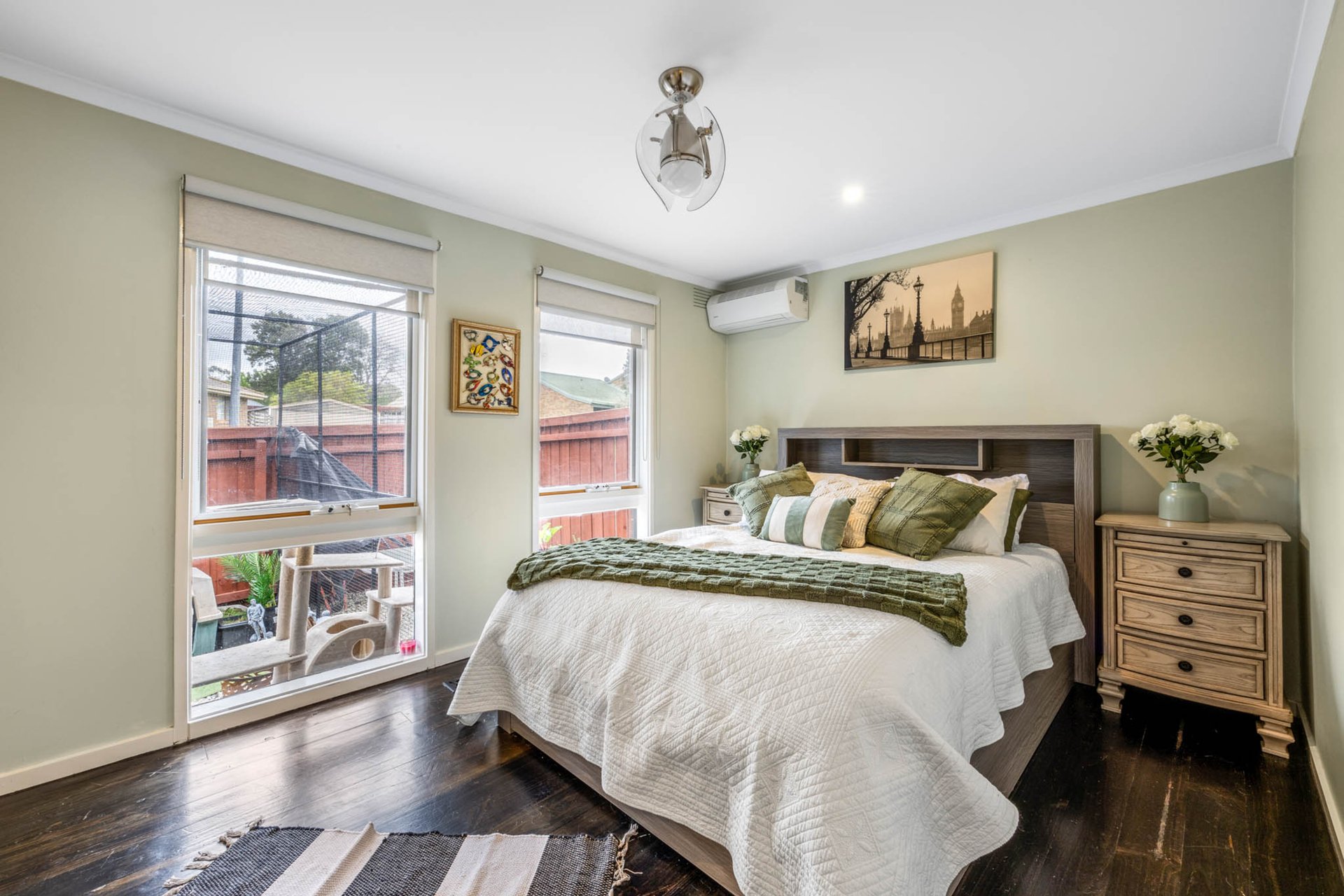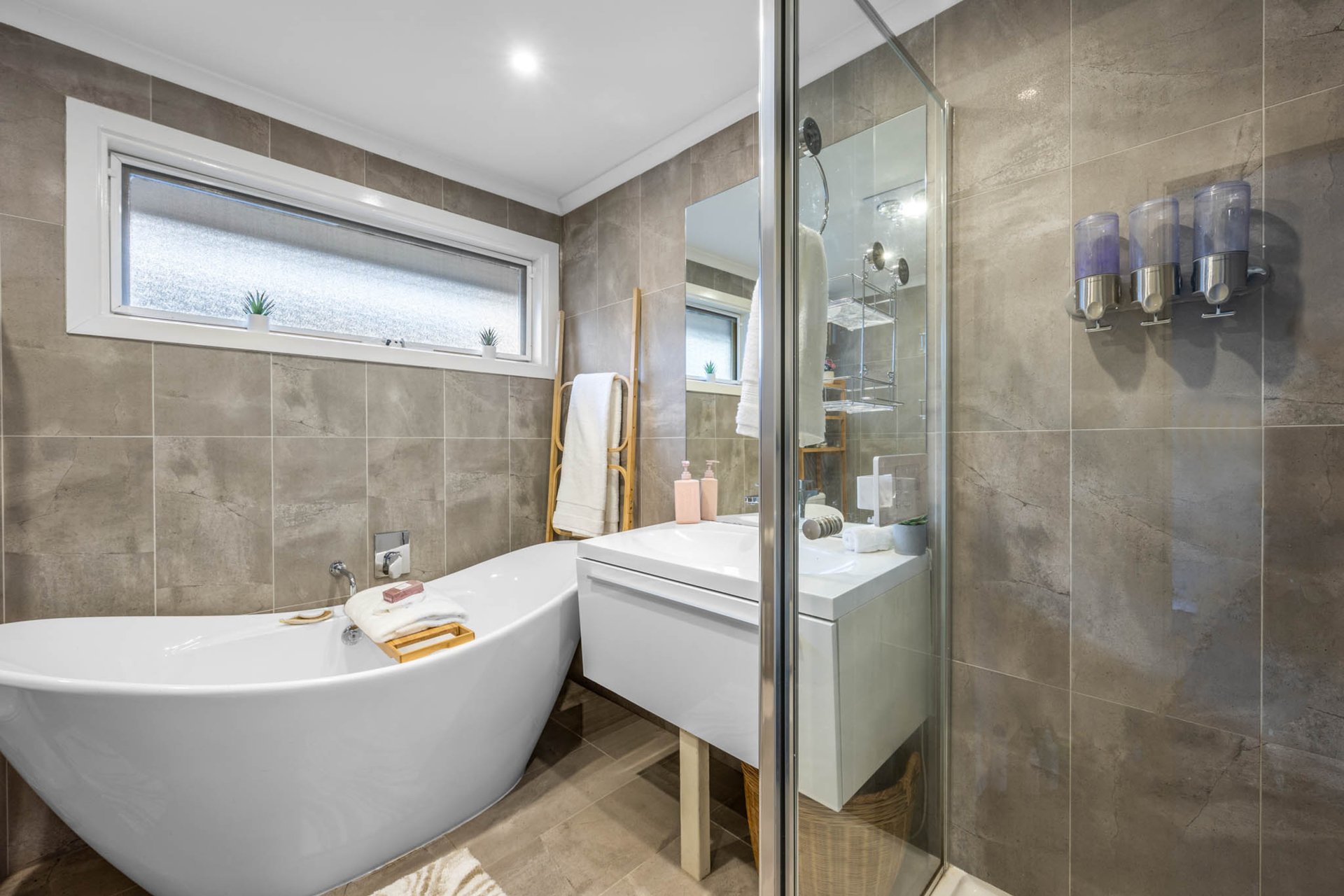 The thoughtful floorplan provides three well-proportioned bedrooms, each with built-in robes and their own split system, serviced by a luxurious fully-tiled bathroom with a shower and an indulgent bath designed for true relaxation.