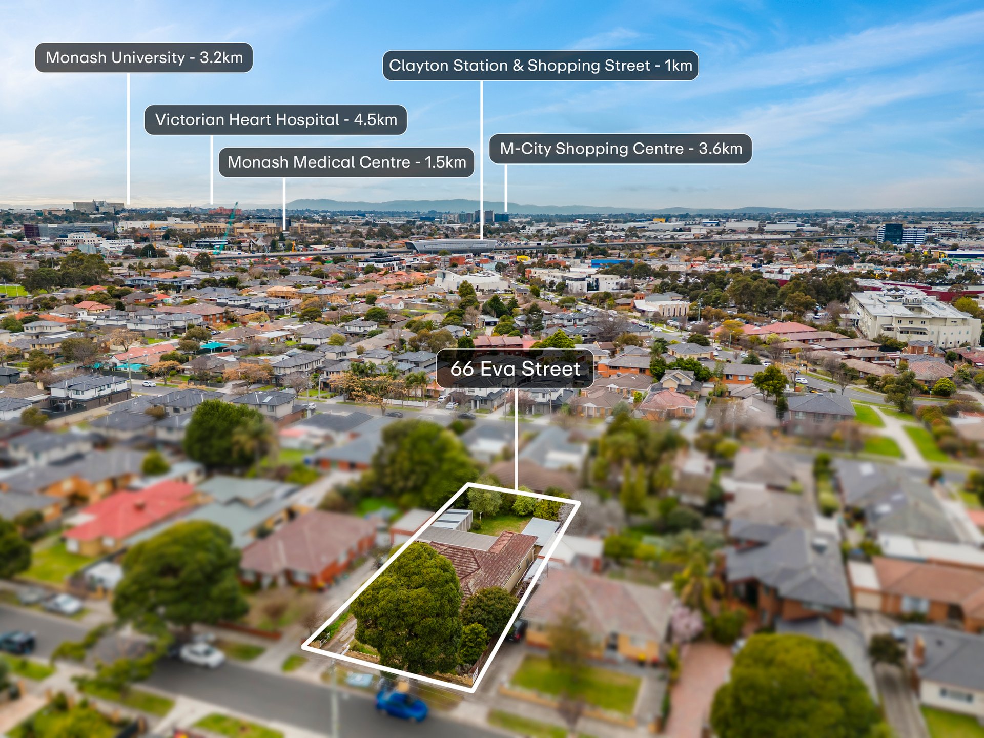 Near Clarinda Primary School, South Oakleigh Secondary College, Monash University, Meade Reserve, Clayton Aquatics and Health Club, Clayton Shopping Plaza, Monash Medical Centre, buses, and Clayton Station.