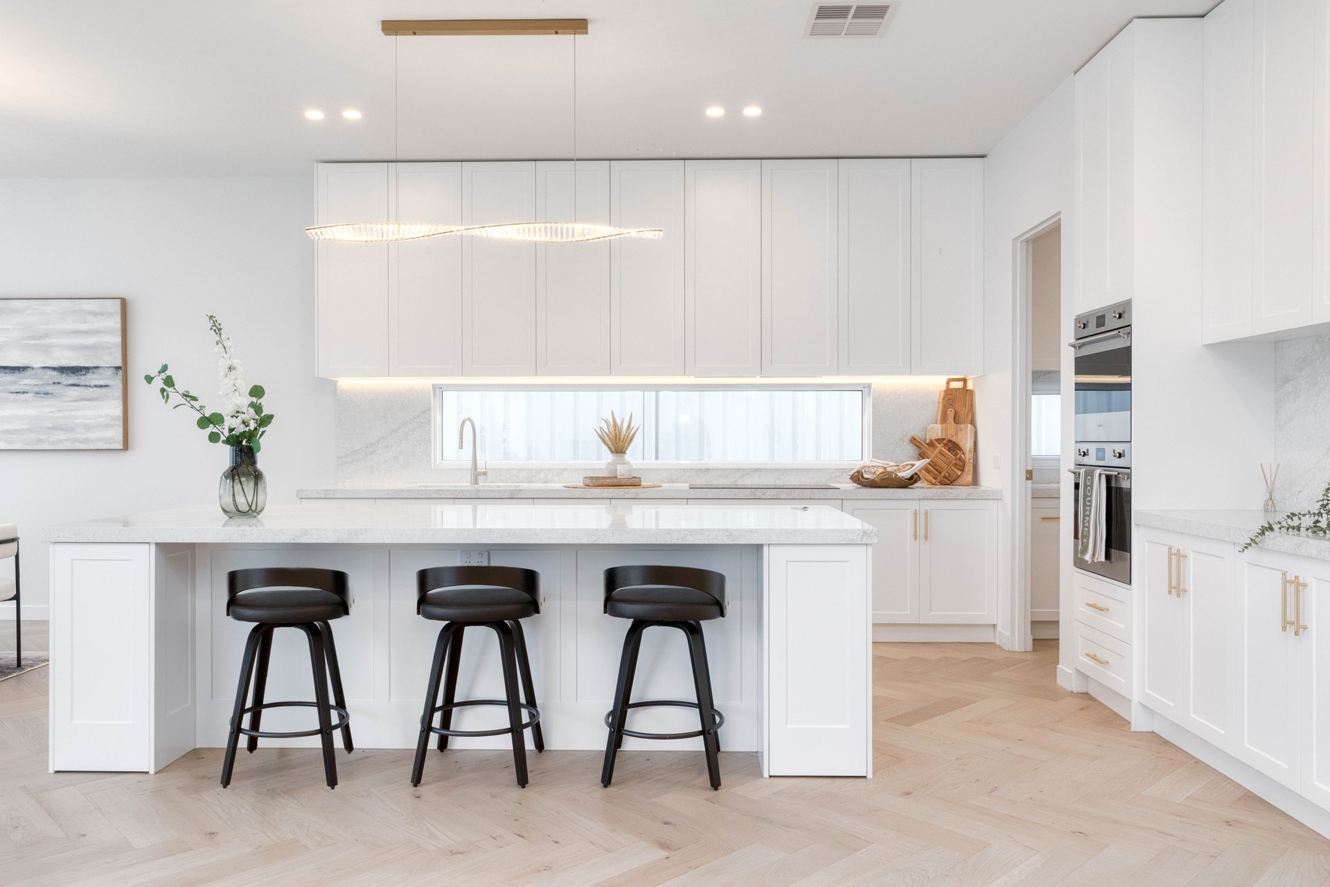 A large open-plan kitchen, dining and living area forms the heart of the home, seamlessly connecting spaces for entertaining and everyday family life. The chef’s kitchen is equipped with premium appliances and a large butler’s pantry, ideal for the modern cook. Multiple living zones, including a formal lounge and an upstairs retreat, provide flexibility and comfort for all family members.