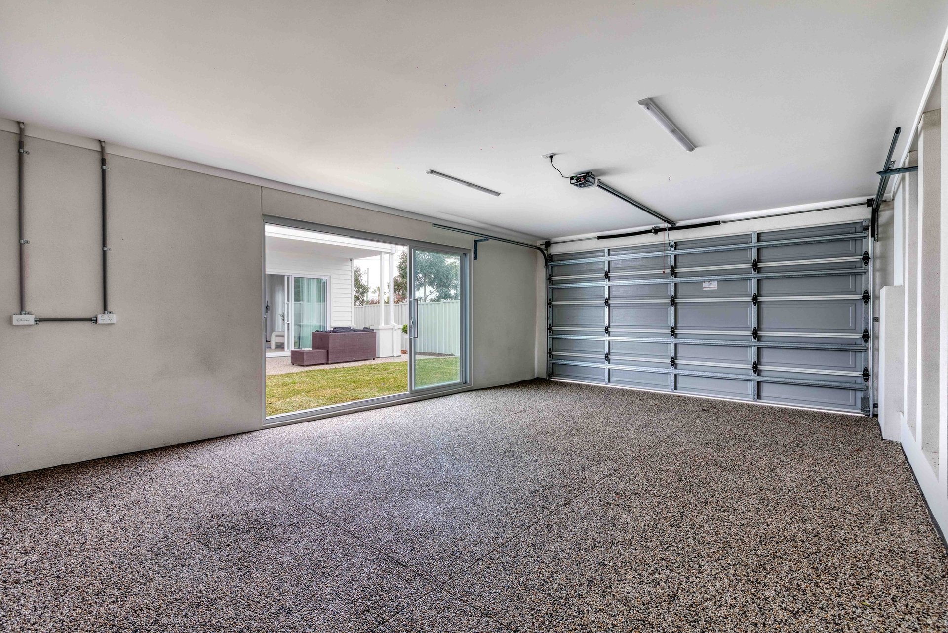 The outdoor area offers a covered alfresco zone perfect for year-round entertaining, while the striking timber staircase with glass balustrades adds a sleek contemporary edge to the interior. A spacious double garage—oversized to accommodate two large or four smaller vehicles—adds convenience, and climate control throughout ensures all-season comfort with refrigerated cooling and ducted heating.