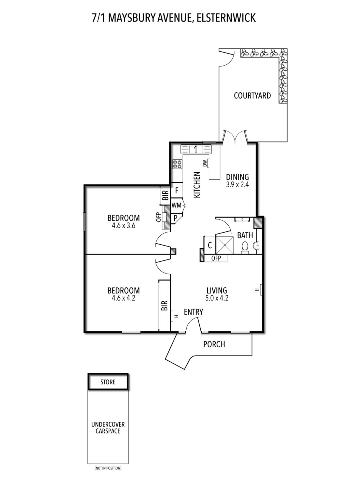 Accommodation comprises two exceptionally large bedrooms, both fitted with built-in robes and filled with natural light. The stylishly bathroom is superbly tiled and features a sleek, contemporary shower. A separate laundry adds further practicality, while undercover car accommodation and a handy storeroom enhance everyday convenience.