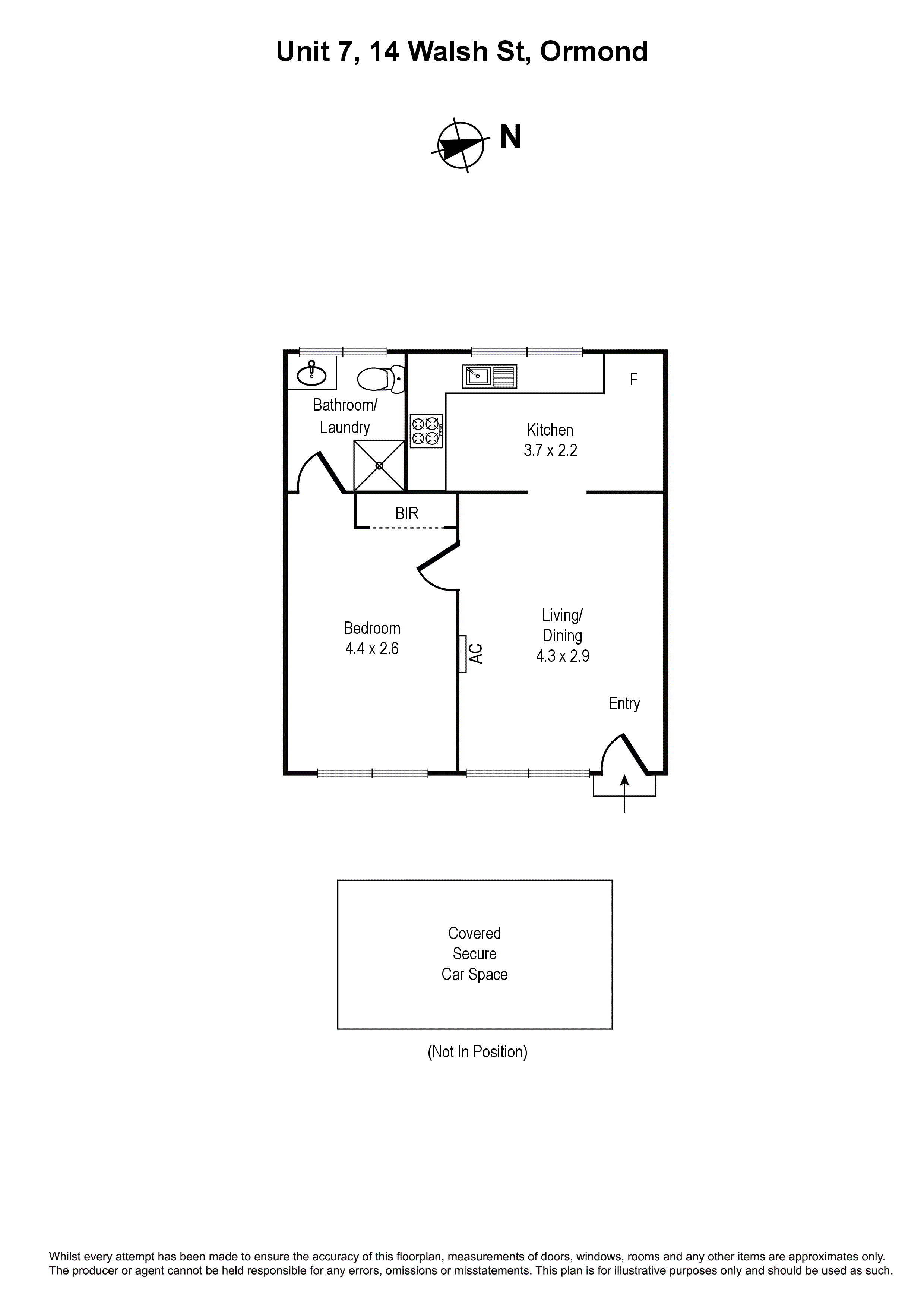 The bedroom is also of generous proportions, benefiting from a fitted wardrobe and direct access to the sparkling bathroom with room for laundry appliances, while split system heating/cooling and an undercover off-street parking space wrap up the easy-care setting.
