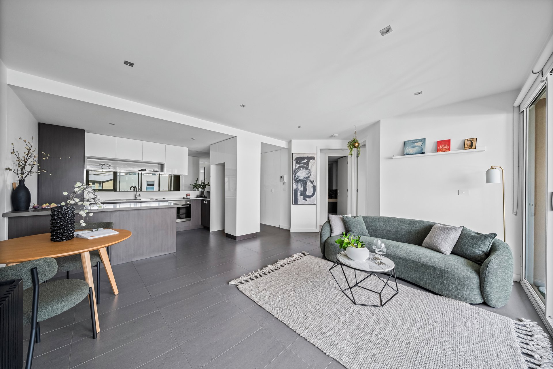 This modern single-level apartment offers low-maintenance living with a functional layout and natural light throughout. The kitchen flows seamlessly to the open-plan living and dining area, which features large windows, tiled flooring, and neutral wall tones, creating a bright and welcoming atmosphere. Access to the balcony extends the space outdoors, perfect for relaxing.