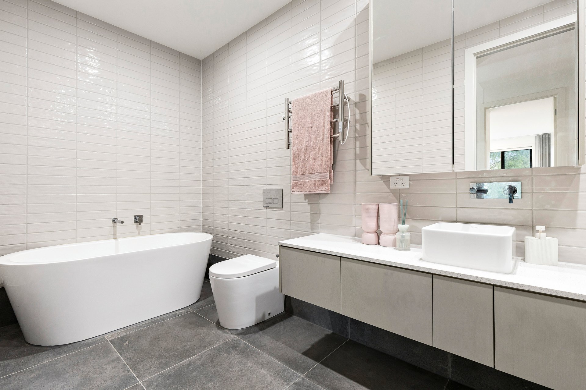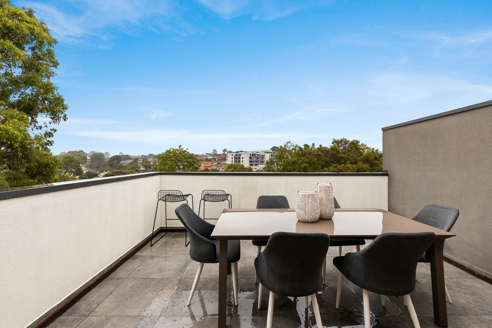 On the entry level, a stylish guest suite features a walk-in robe, sleek ensuite, roller blinds, private balcony, and internal access to the double garage. The lower ground floor offers two additional bedrooms with built-in robes, Rinnai split systems, and large windows, a central bathroom with oval bathtub, a spacious laundry with excellent storage and a lovely private garden. Enhanced by wide hybrid floors, ducted vacuum, LED lighting, NBN, solar panels, water tank, and understairs storage, it's just a stroll to Pascoe Vale Station, Gaffney Village, cafes, and quality schools.